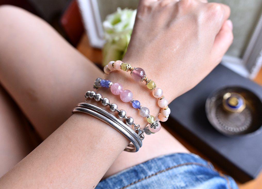 *daisy賣場的天然石手鍊均使用日本彈性蠶絲線,配戴方便。