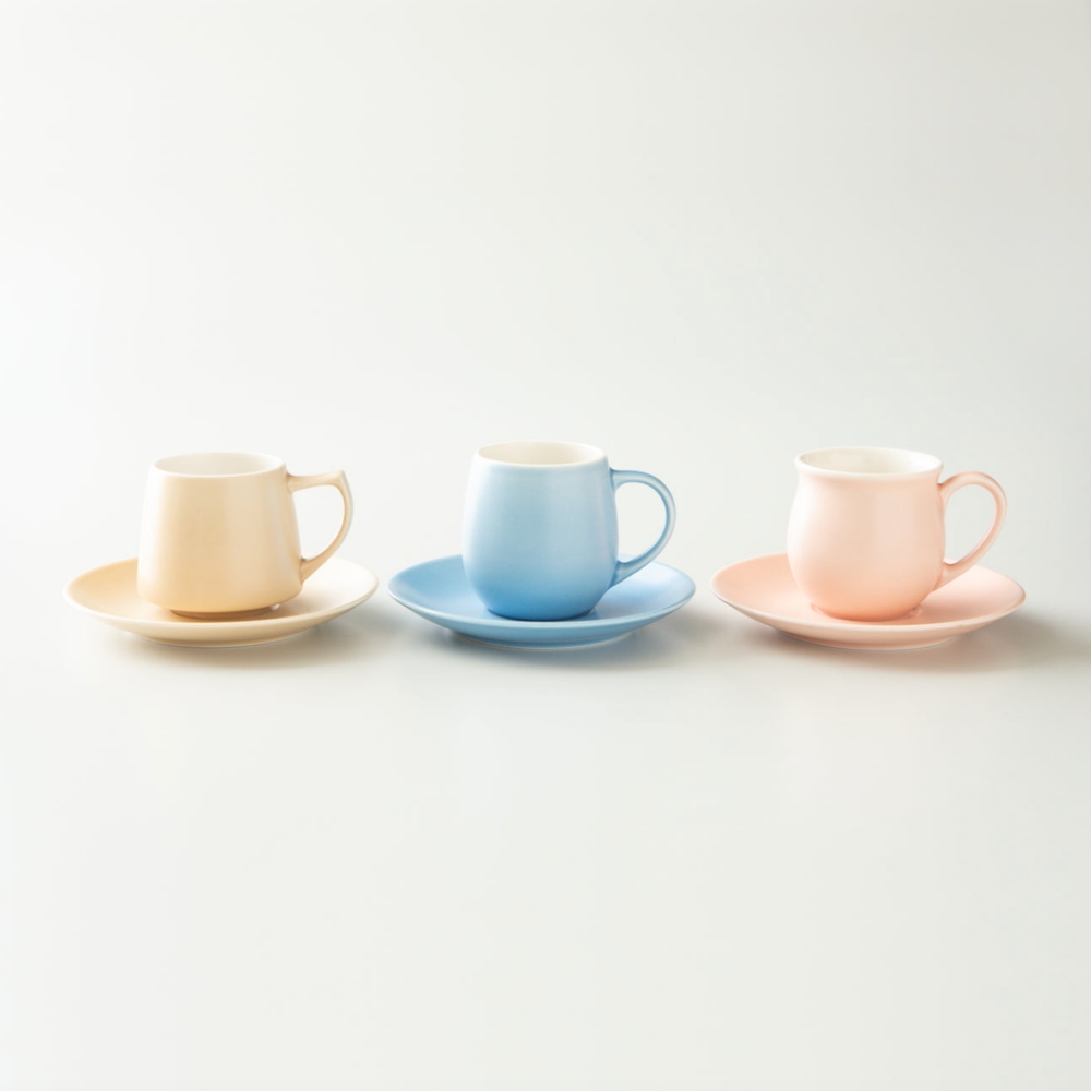 這是可與三款 Aroma系列咖啡杯搭配的霧色杯盤。日本製美濃燒,輕薄的質感非常優雅,杯子請另外選購