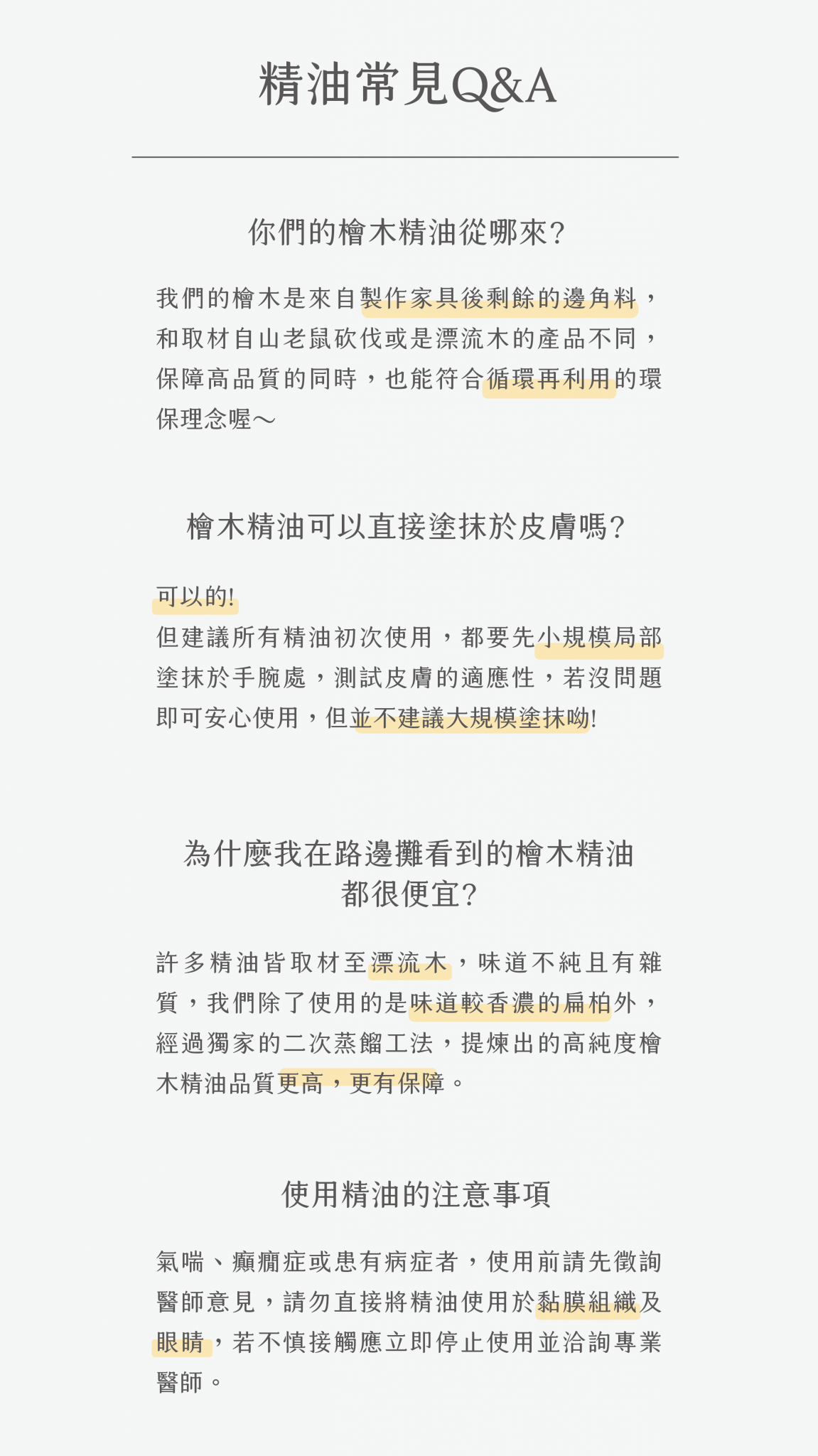 使用方法 | 可滴入一至三滴檜木精油放置在車中丶衣櫥、抽屜、
