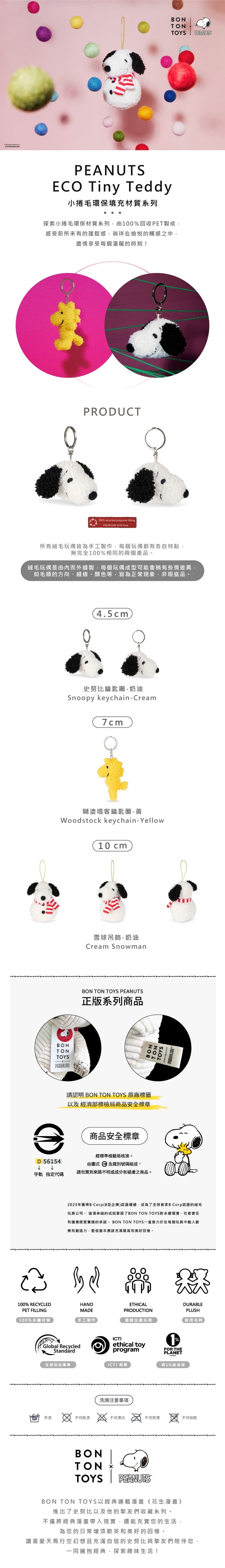 品名:Snoopy史努比環保填充鑰匙圈-奶油 4.5cm