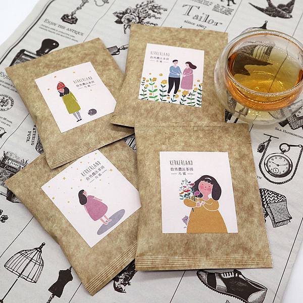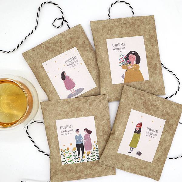 四包一組,以棉繩綑綁,單包茶包內含2.5g烏龍茶茶包,可回沖3~4次。