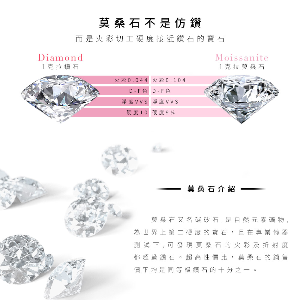 – 材質: 925純銀,精鍍18K金,50分莫桑石