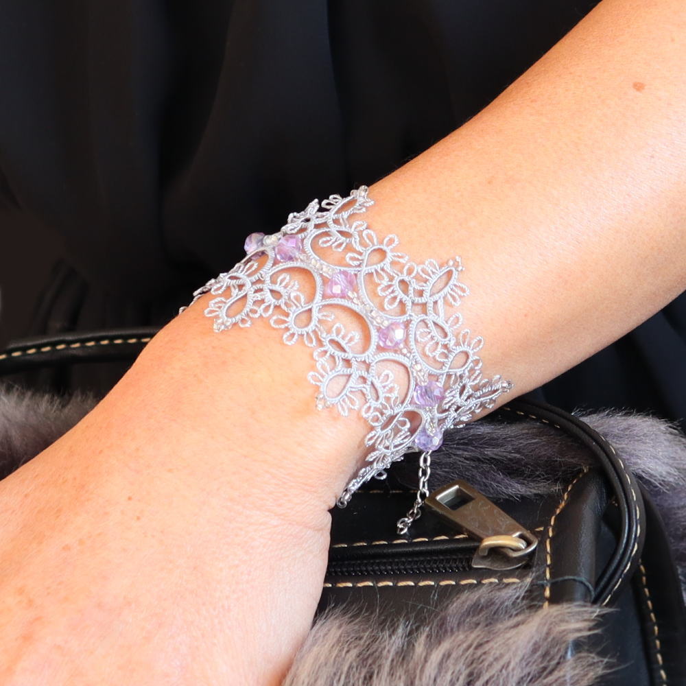 その特徴を生かして、気品あるデザインのブレスレットを作りました。4cmの幅広ブレスレットは、手首をキレイに見せてくれます。