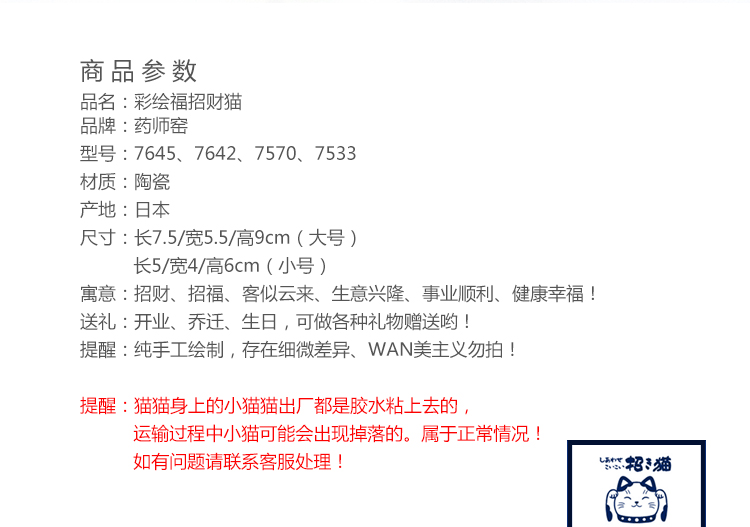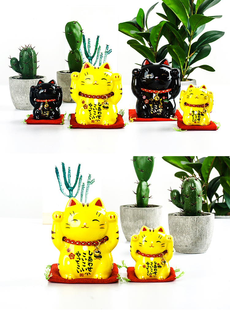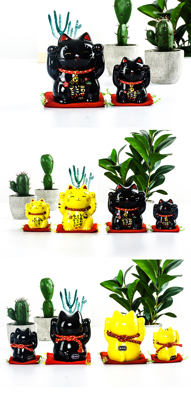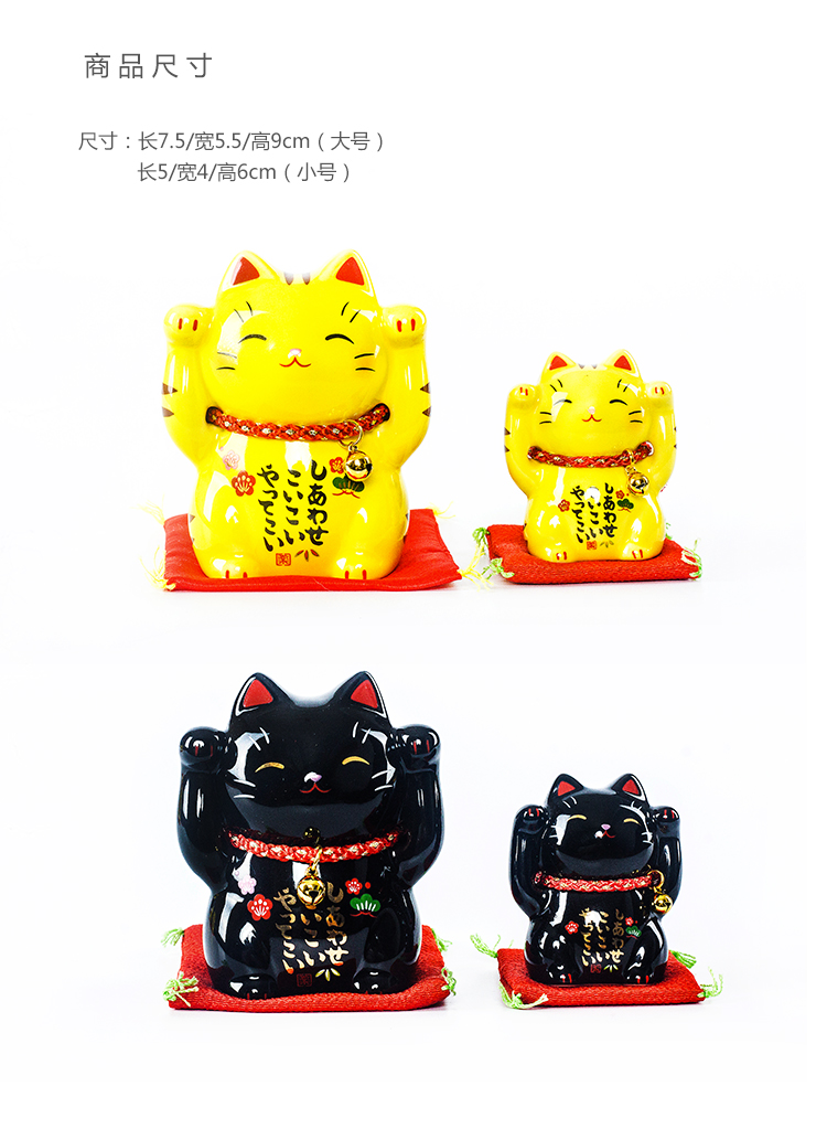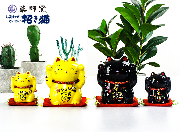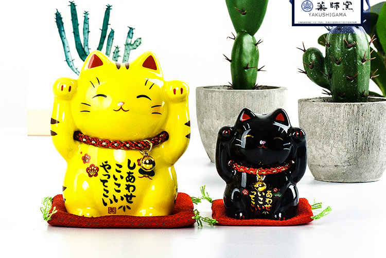 日本藥師窯進口彩繪金運虎斑黑色平安招財貓擺件生日結婚開業禮品