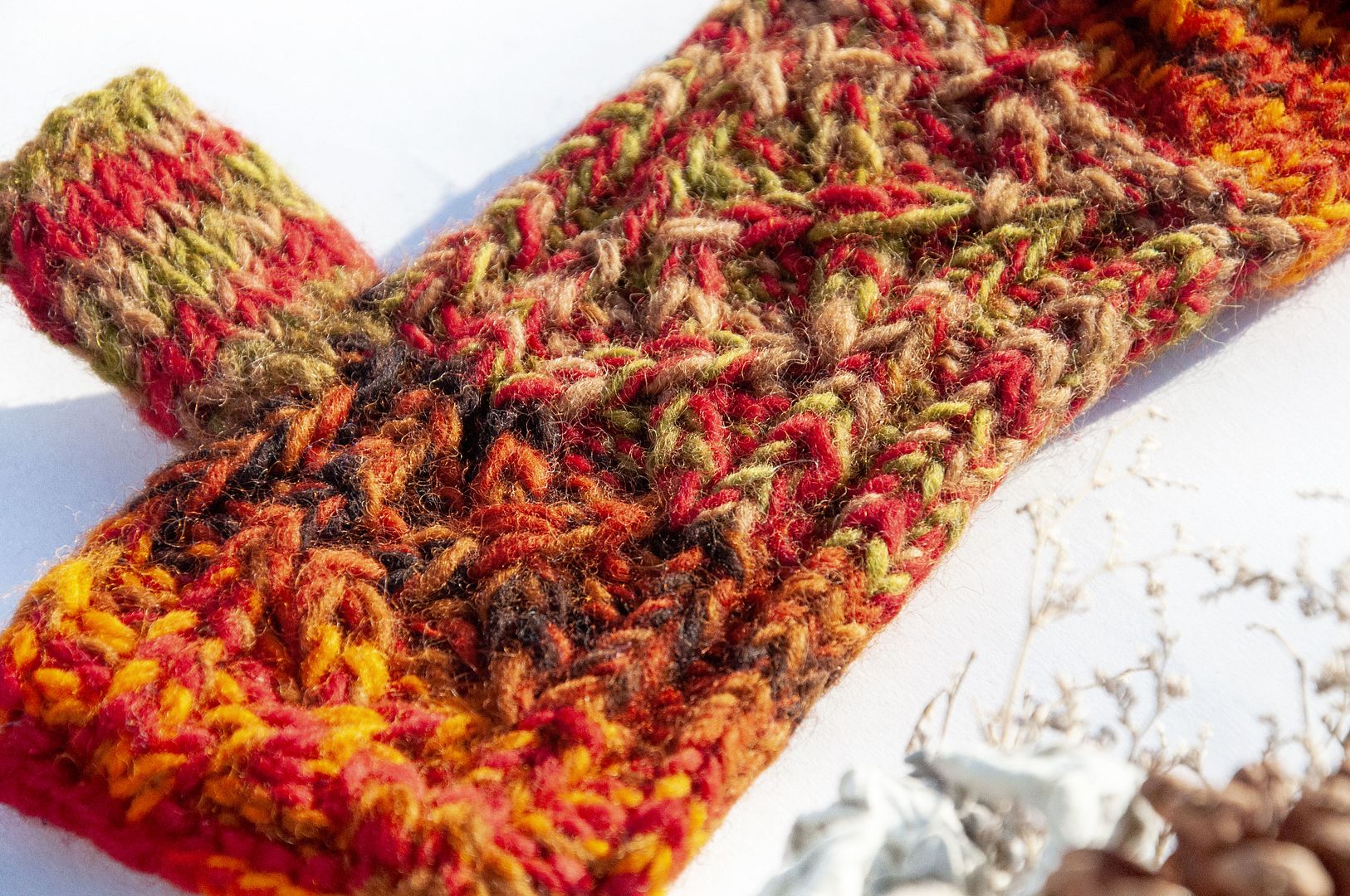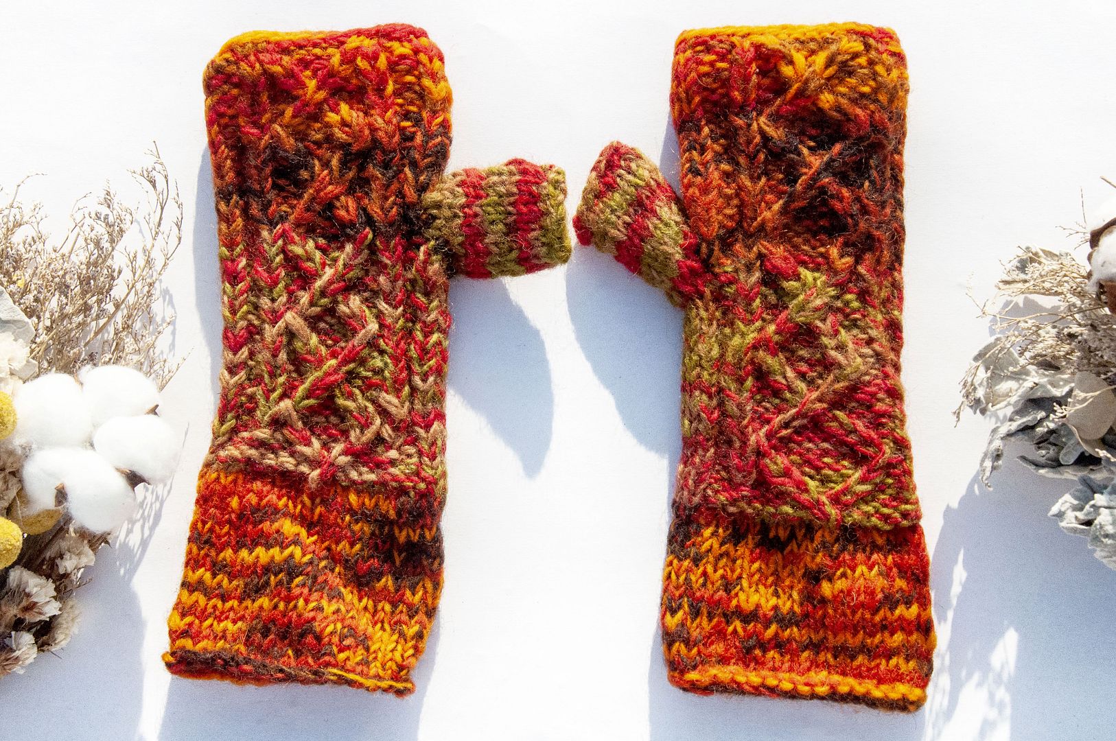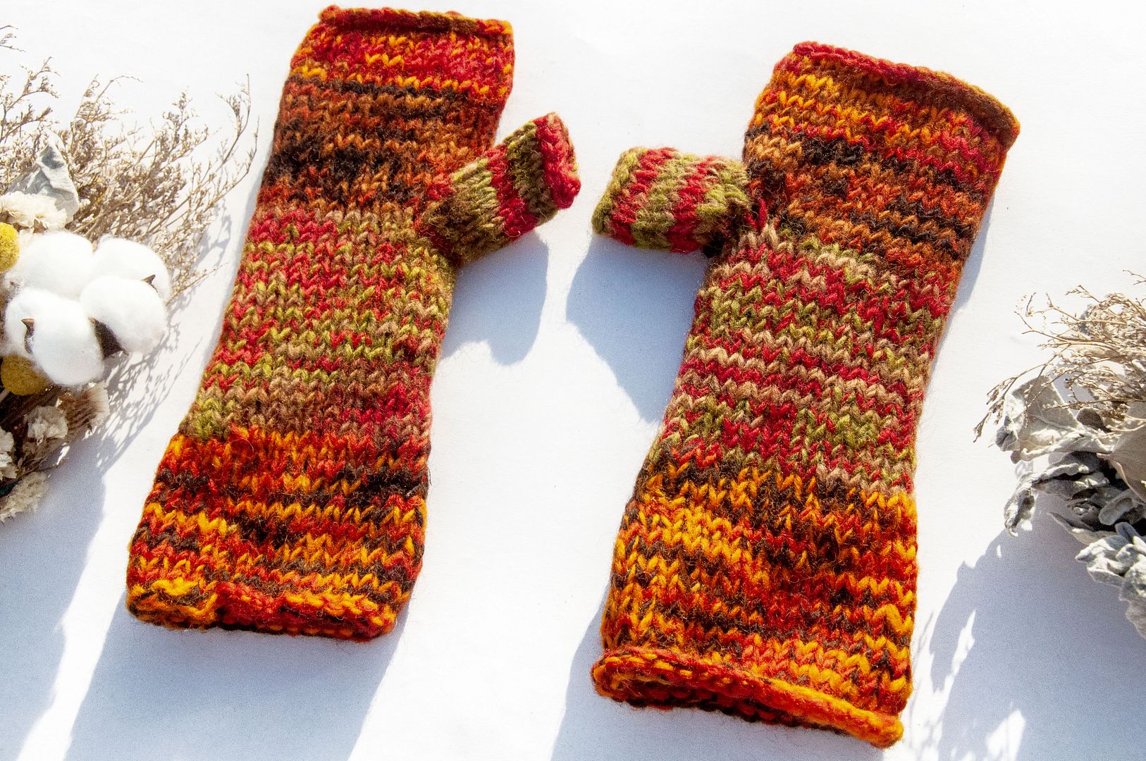 手織純羊毛針織手套/露趾手套/內刷毛手套/保暖手套-北歐夕陽陽光