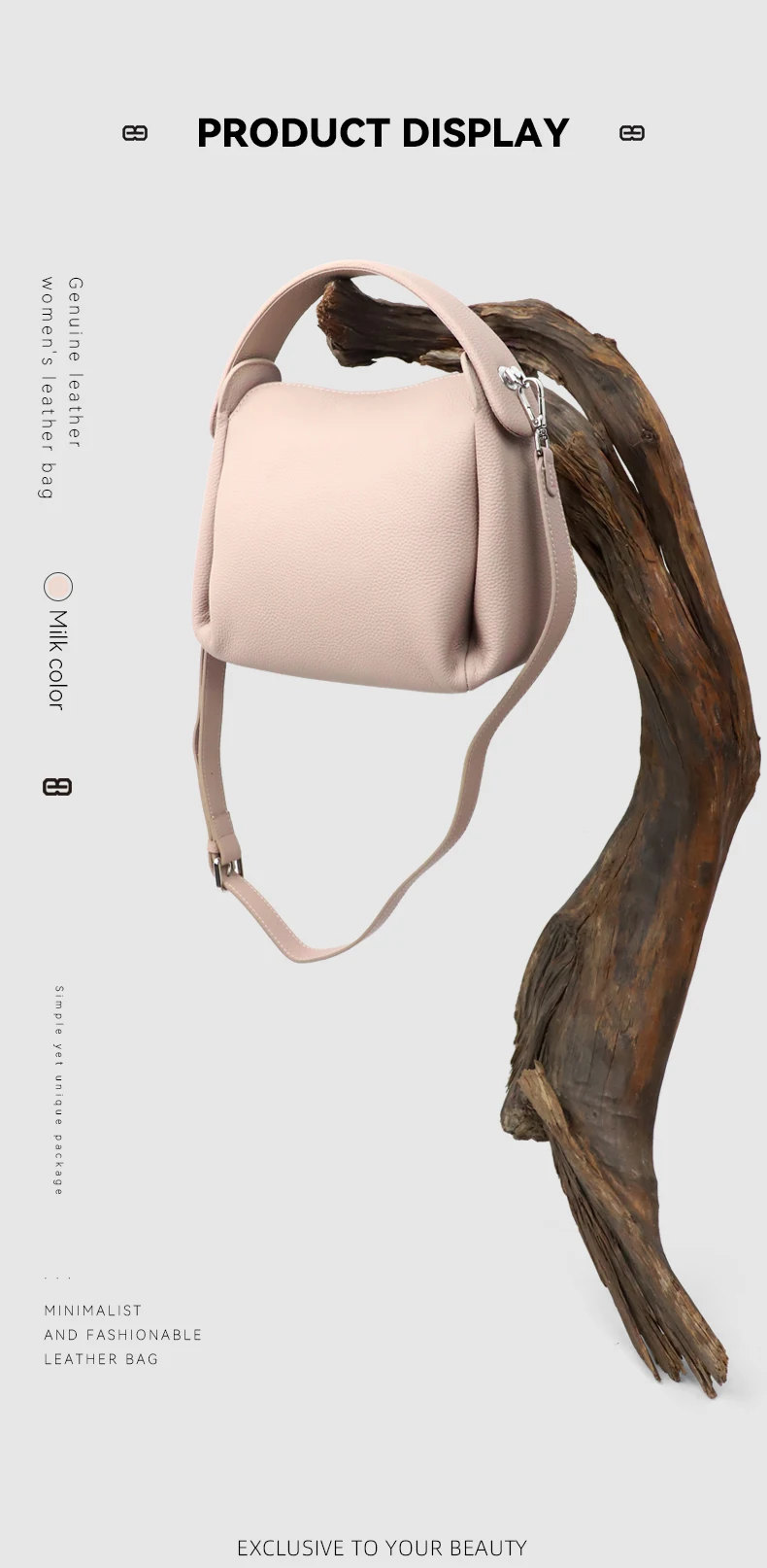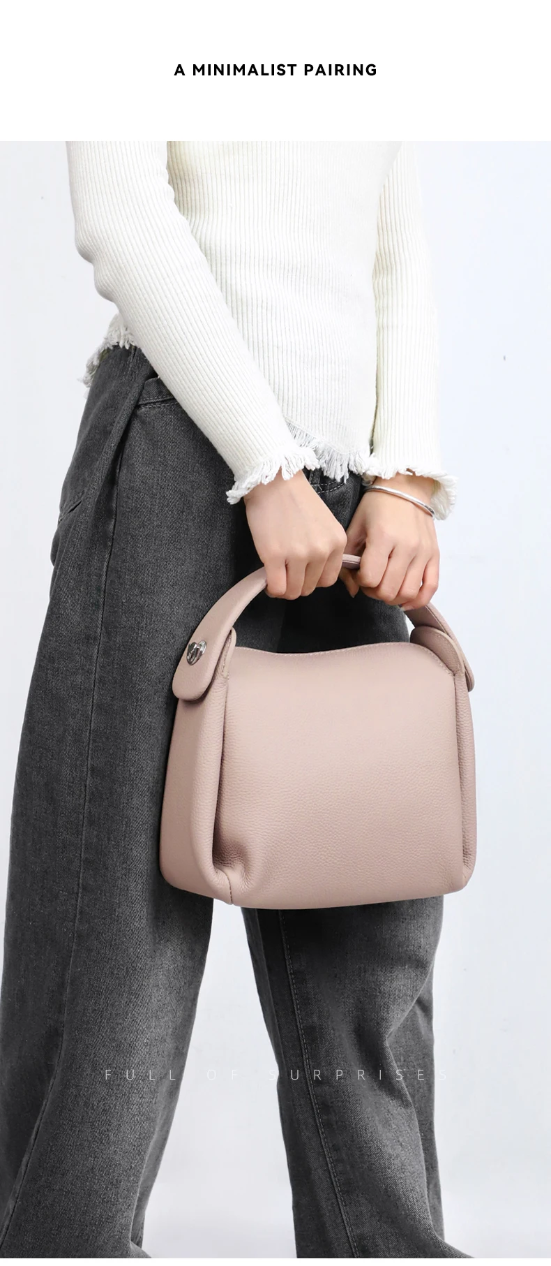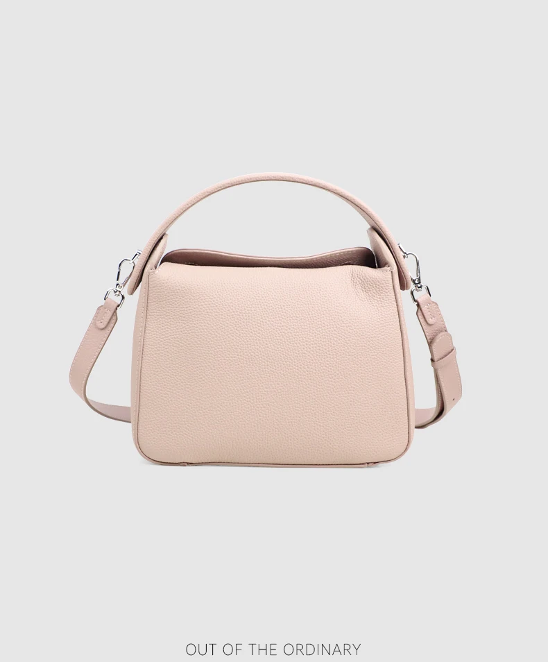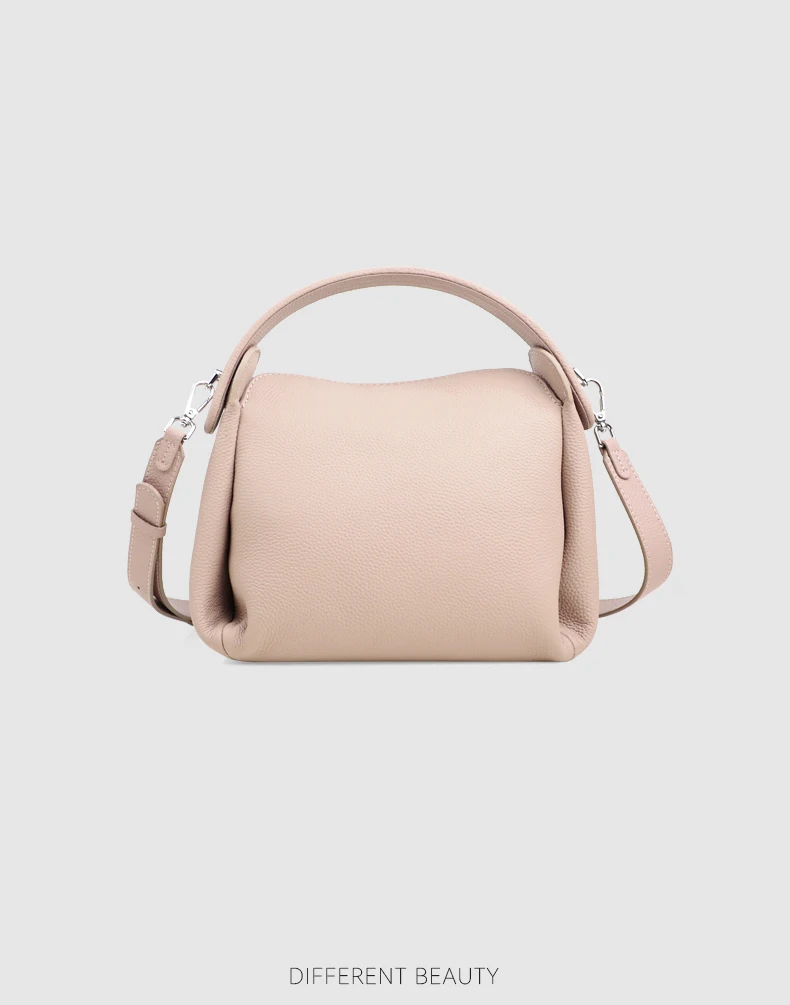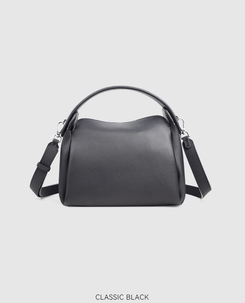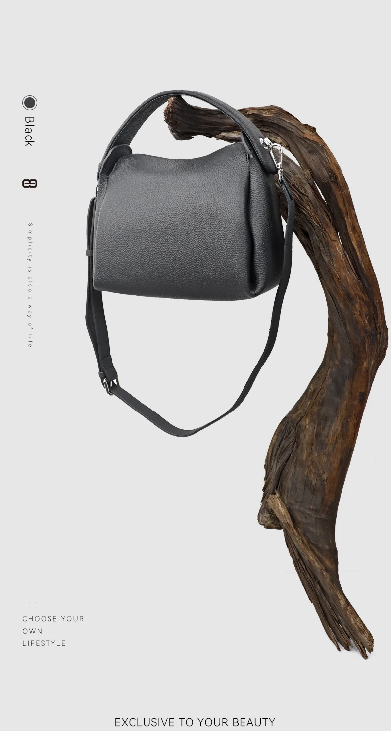 真皮小方包手提側背包手袋 黑色/奶茶色