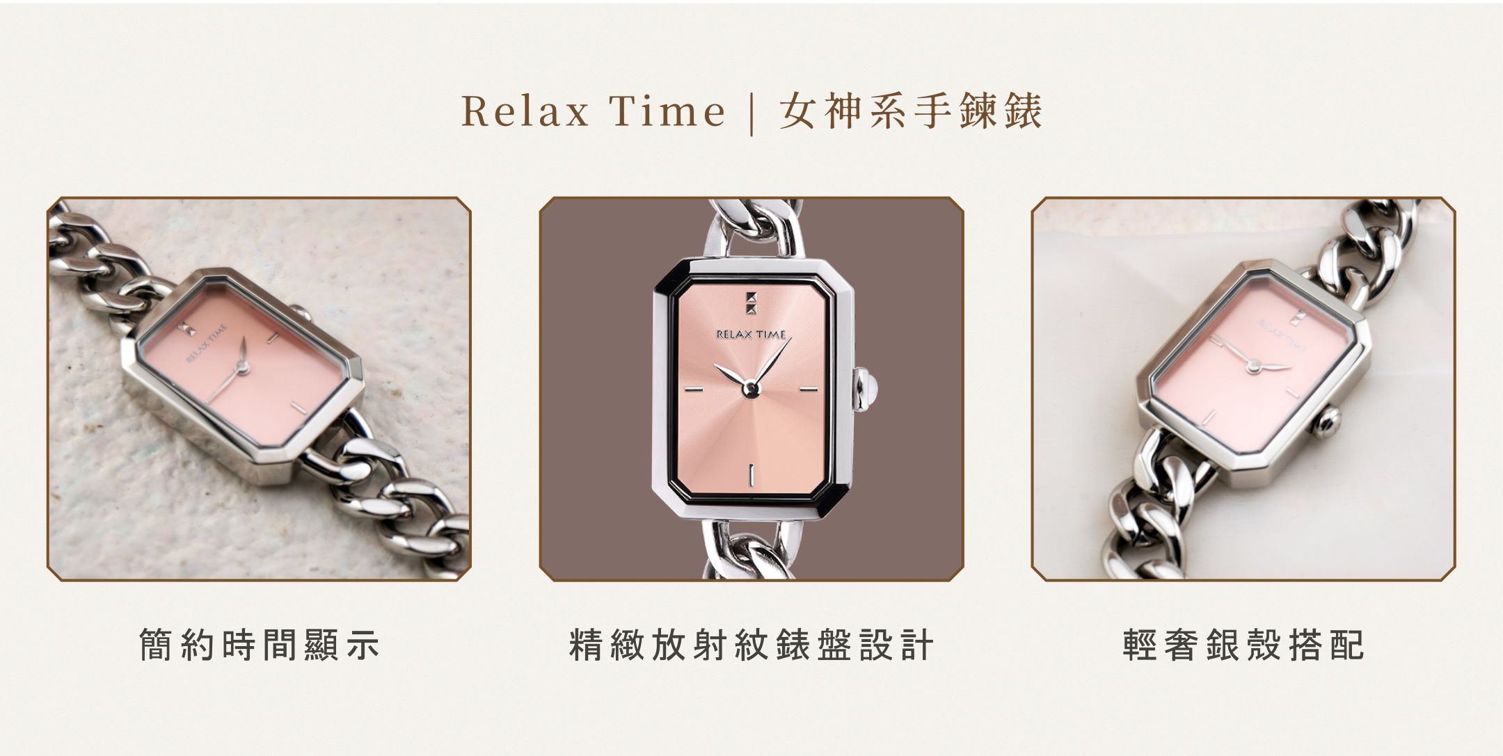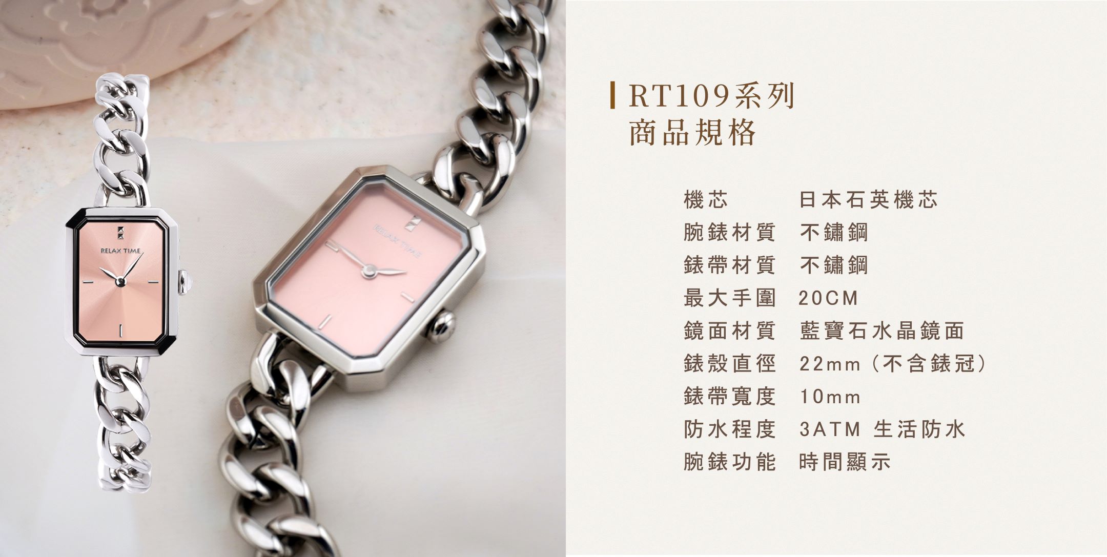 RELAX TIME 長方手鍊風格女錶 粉 (RT-109-2-05)