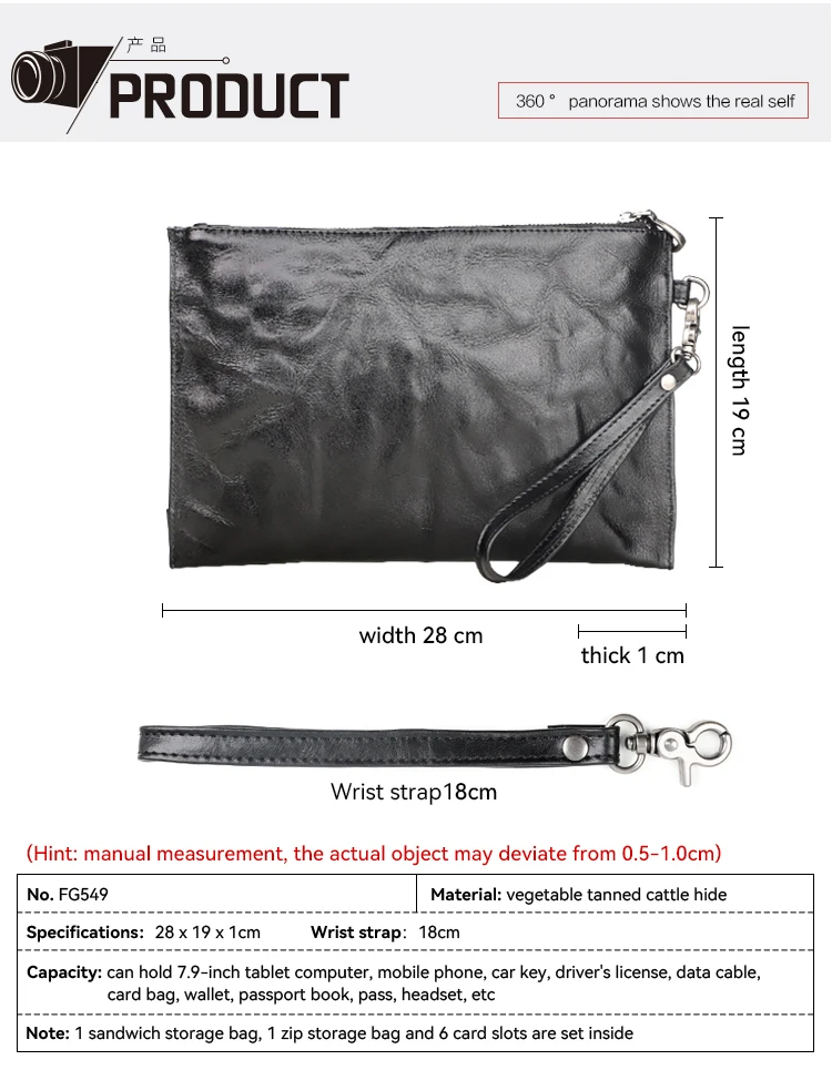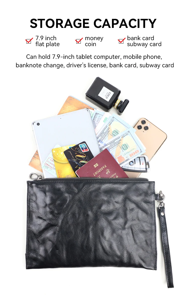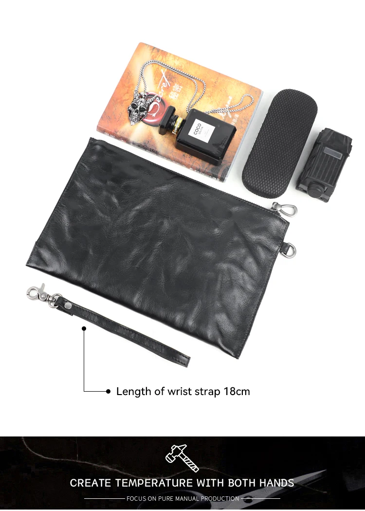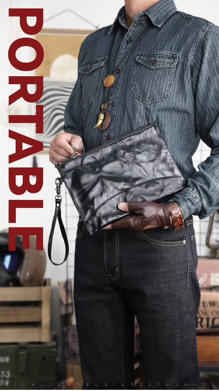 男士手拿包頭層植鞣皮手抓包休閒真皮信封包軟皮手機包大容量夾包