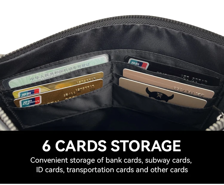 格層:內設1個夾層收納袋、1個拉鏈收納袋、6個卡位。