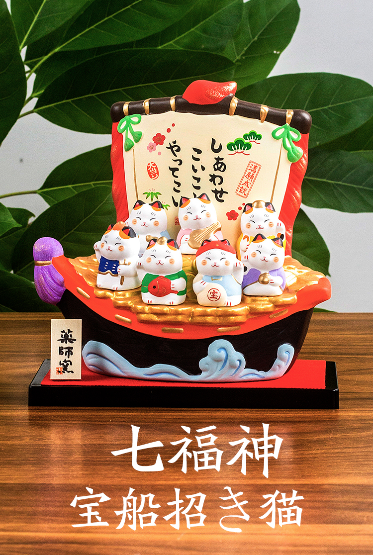 日本藥師窯寶船七福神招財貓滿願成就大當招財貓擺件開業喬遷禮物