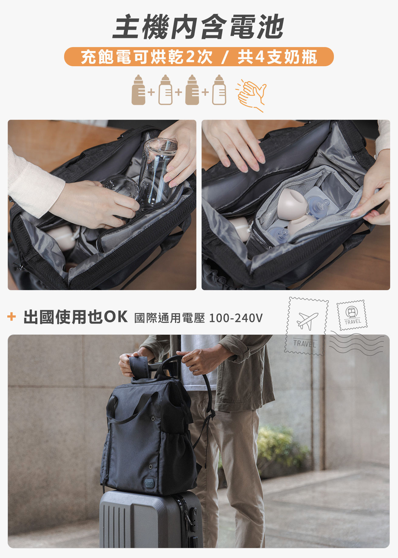 ➌ 充電隨行|充飽電可烘乾 2 次,共 4 支奶瓶