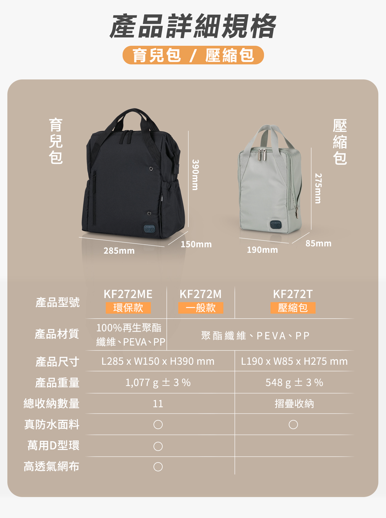 *產品尺寸(育兒包):長 285 x 寬 150 x 高 390 mm
