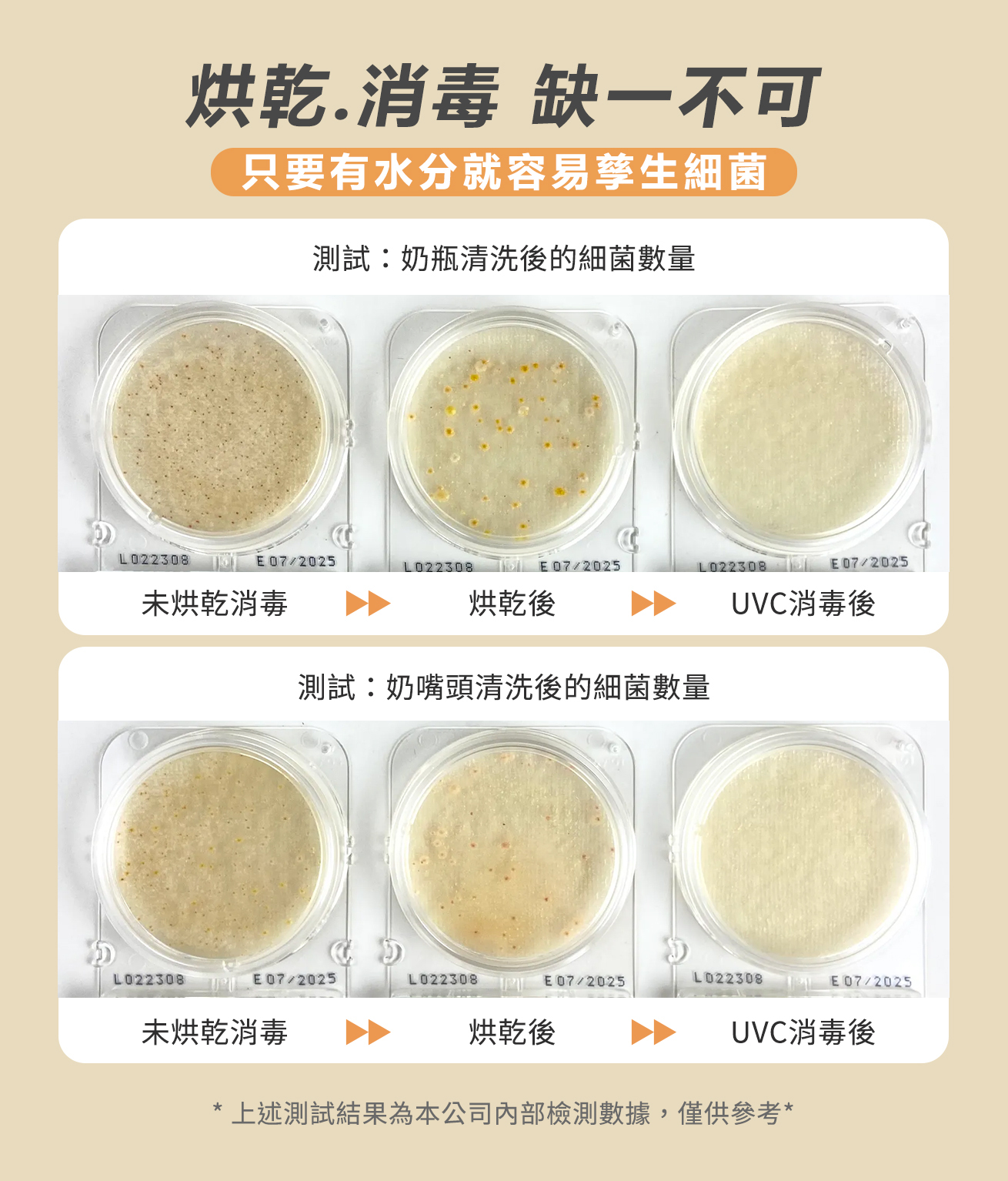 ⚠️ 烘乾消毒主機絕對禁止水洗,切勿使用酒精、揮發油、去光水等擦拭。