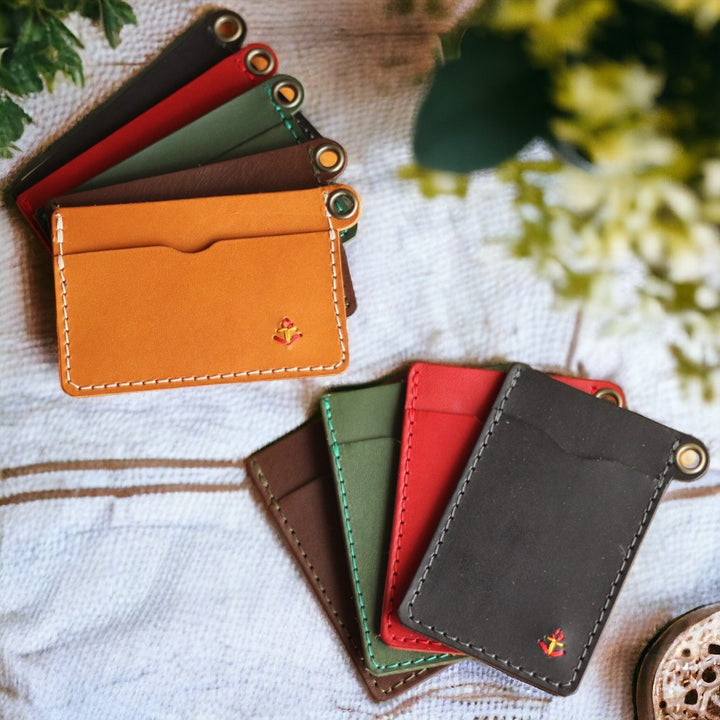 上部には便利なハトメ穴があり、背面の丸い穴でカードをスムーズに取り出せます。