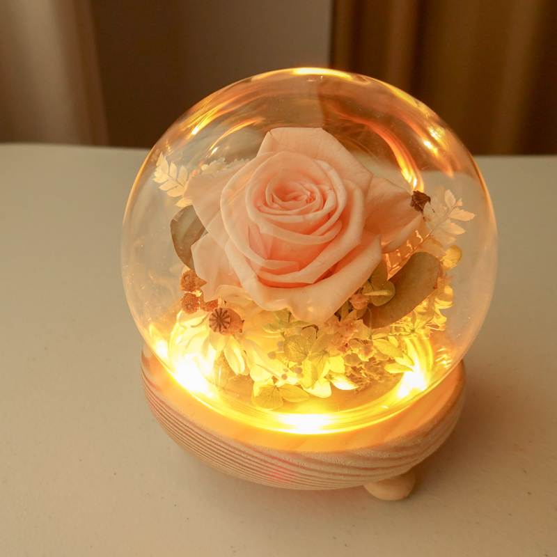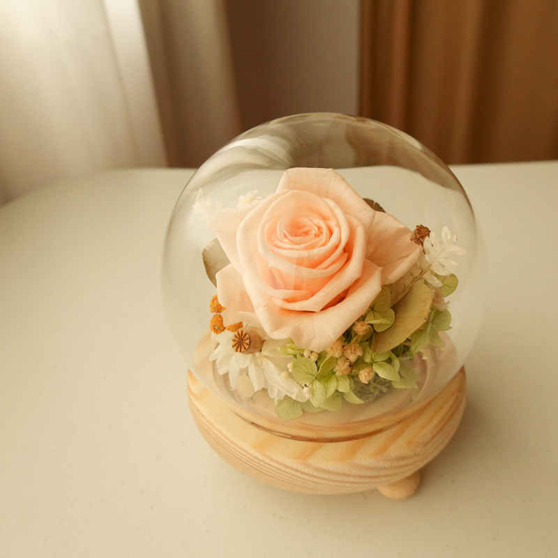 將永生玫瑰保存於精緻的玻璃盅內,