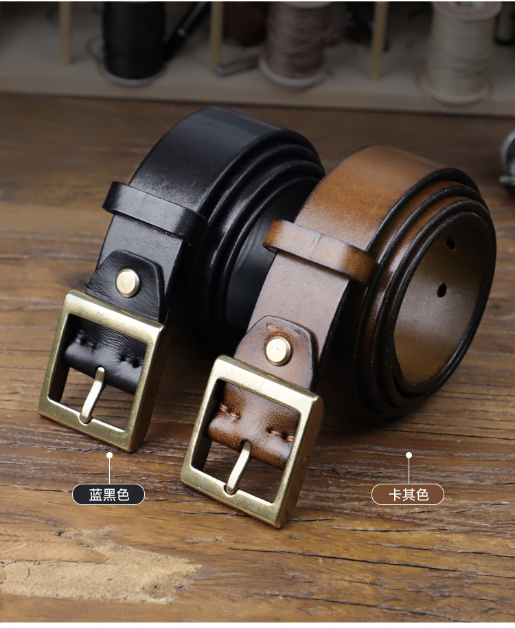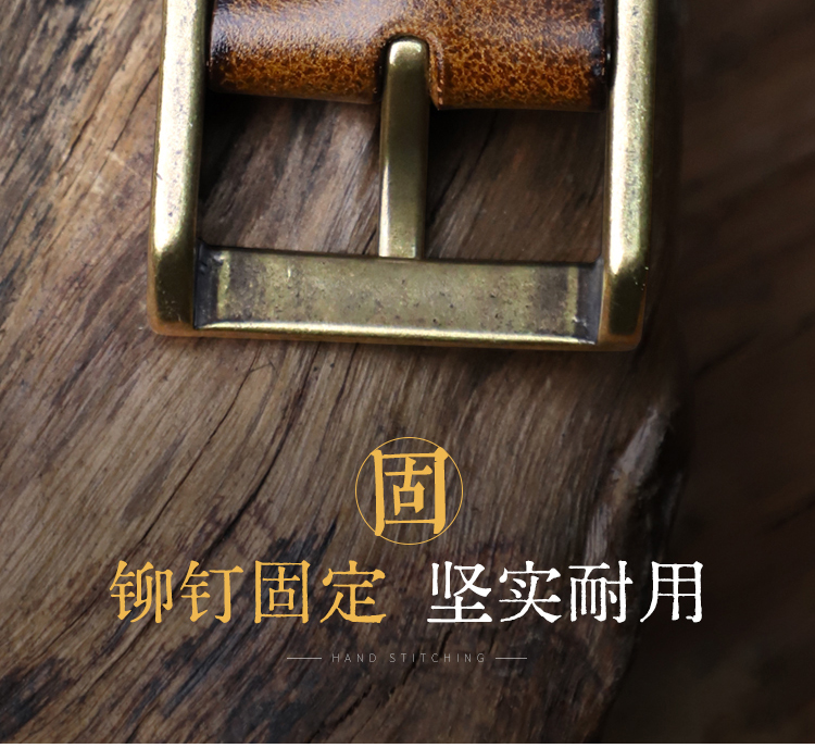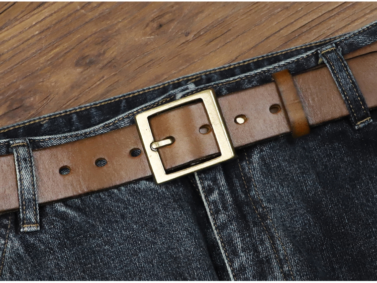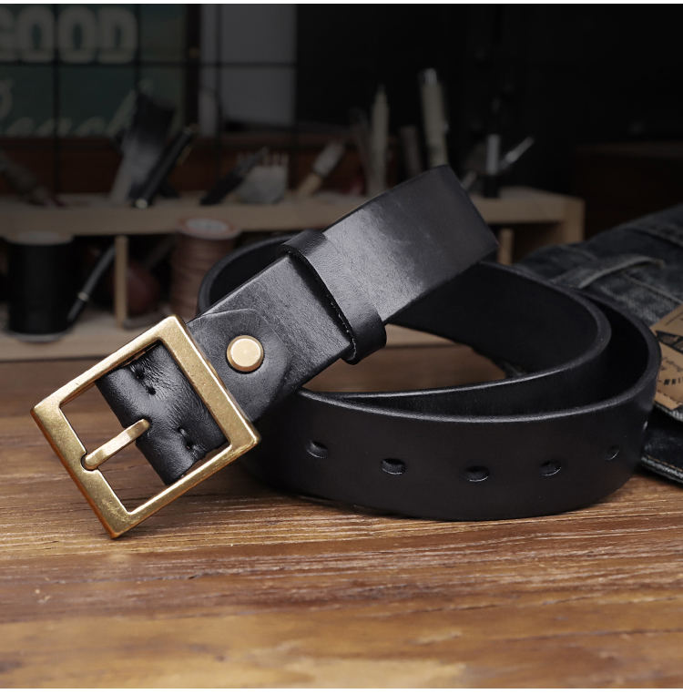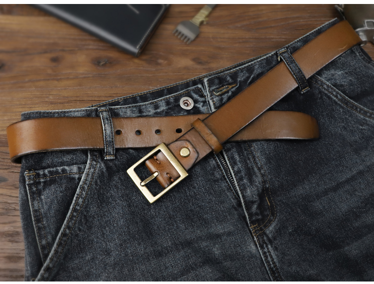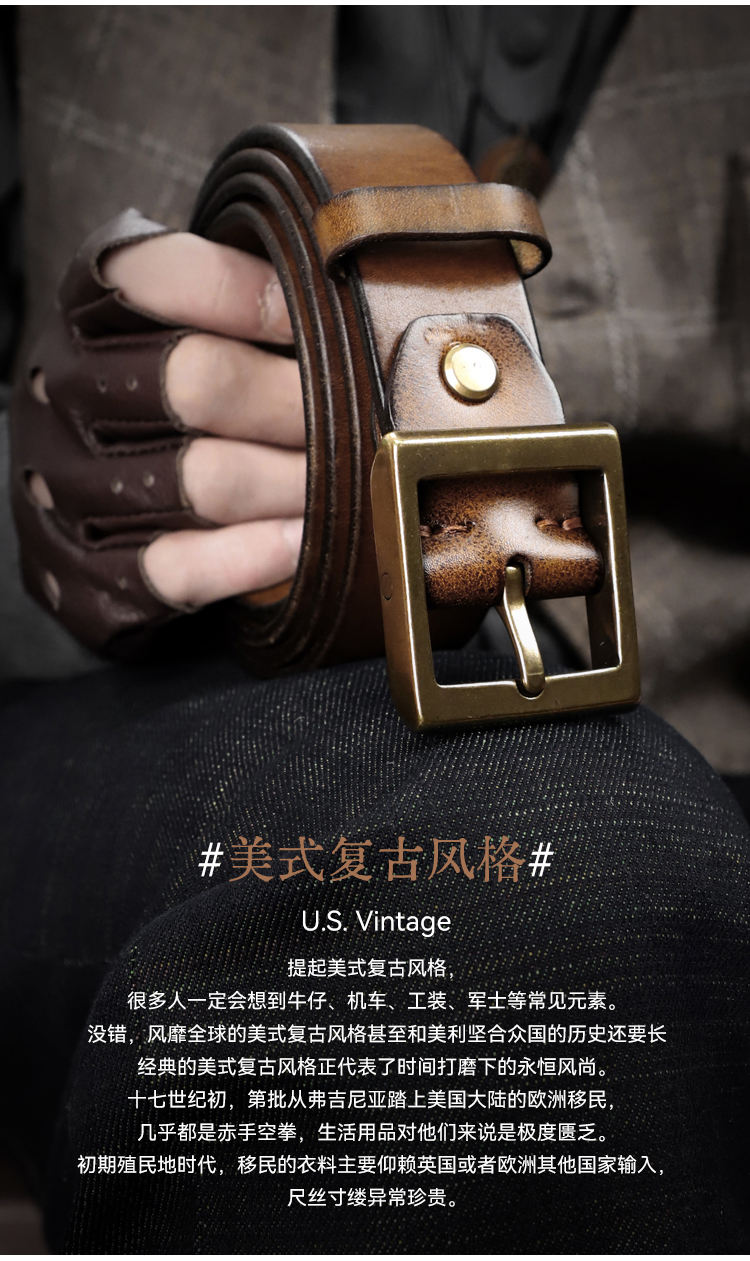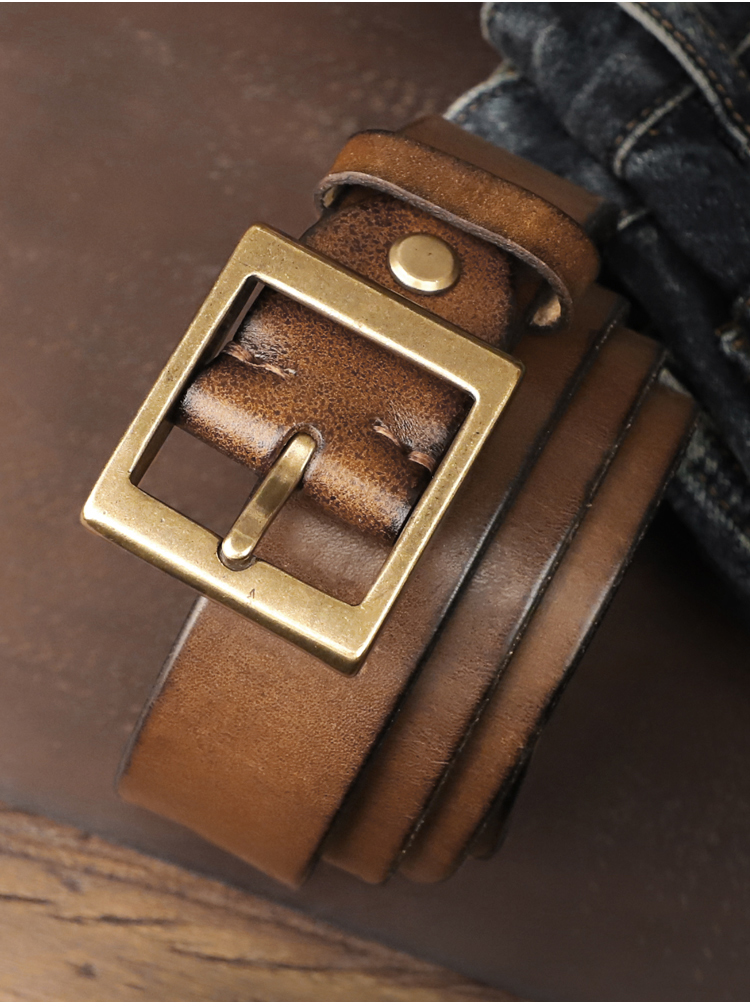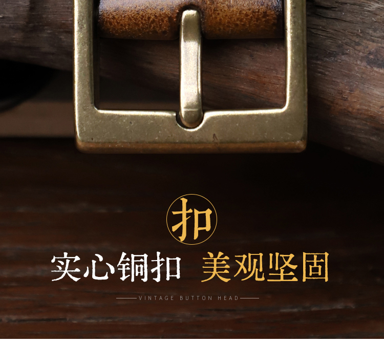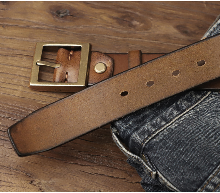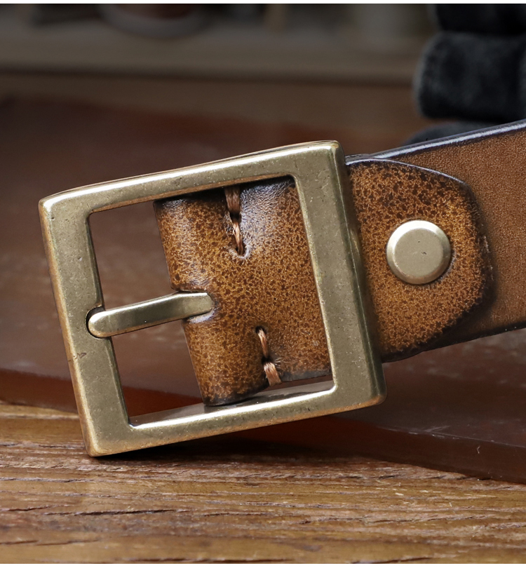 美式復古真皮腰帶 加厚頭層牛皮黃銅針扣皮帶