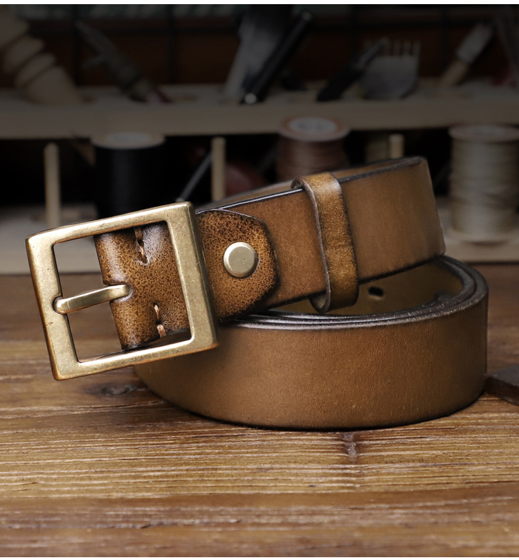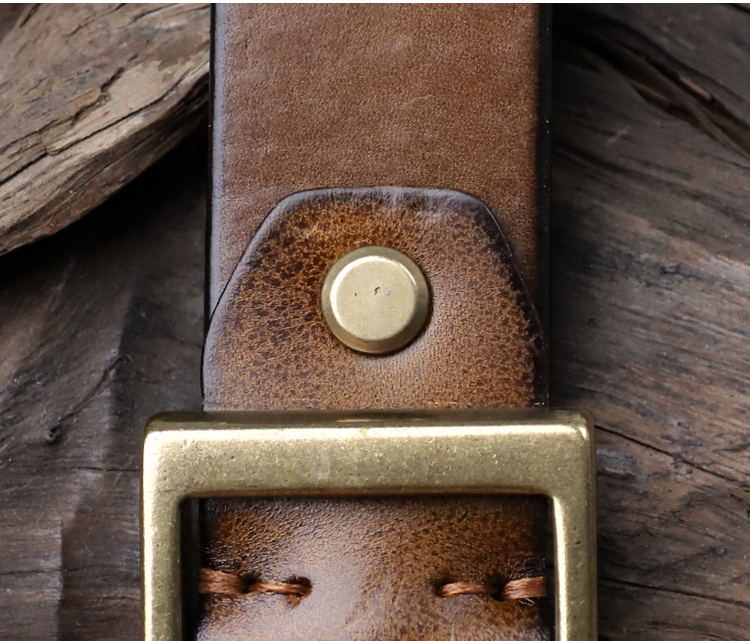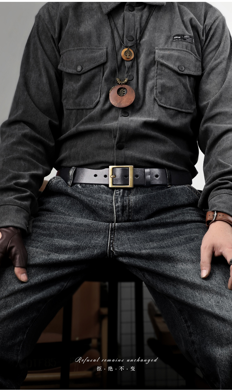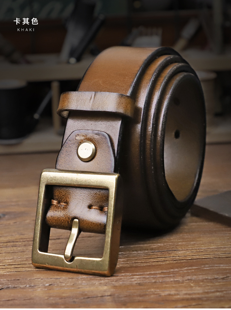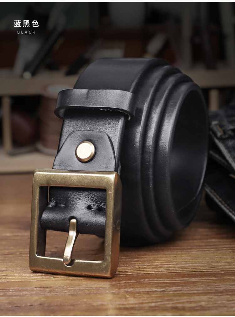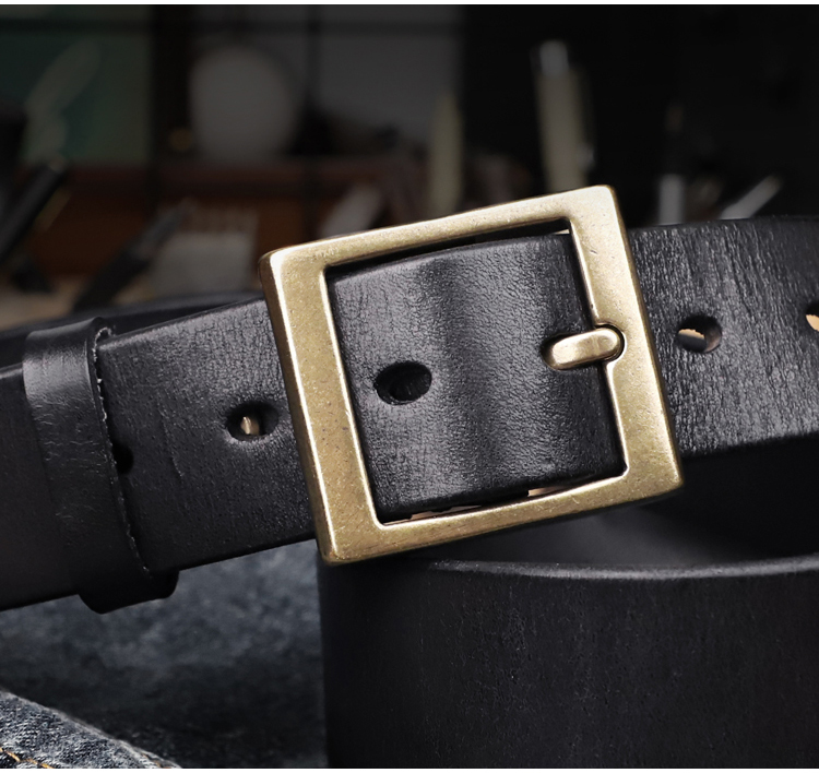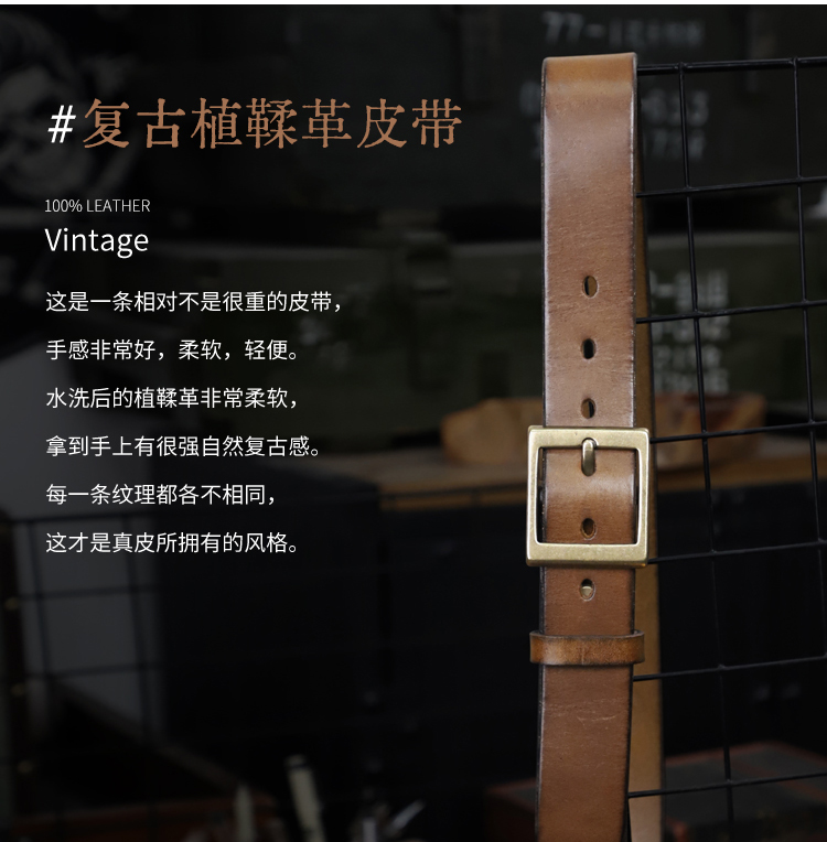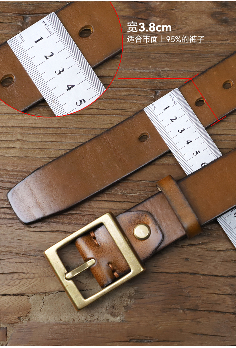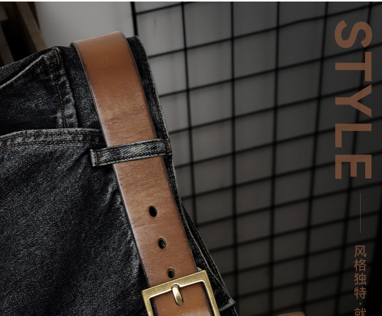 美式復古真皮腰帶 加厚頭層牛皮黃銅針扣皮帶