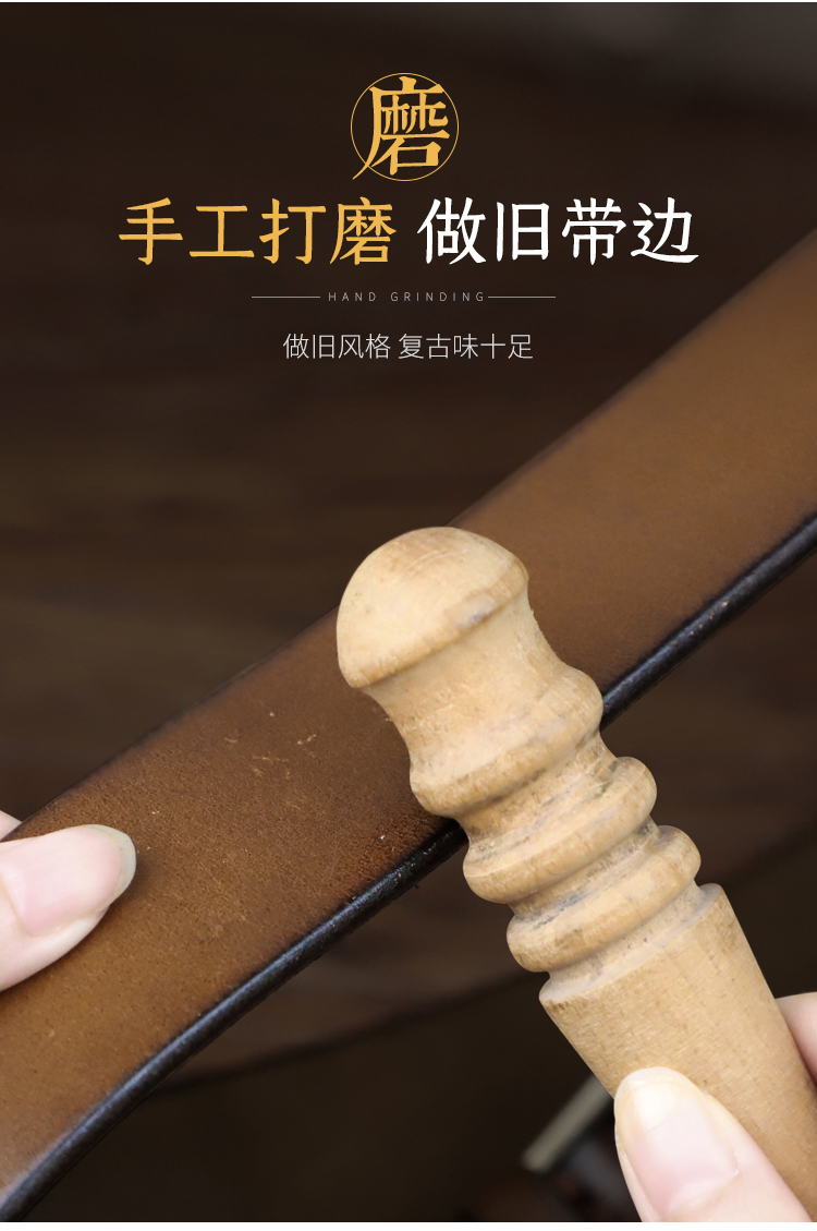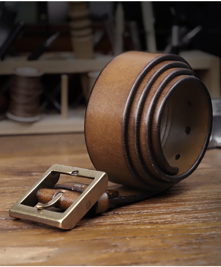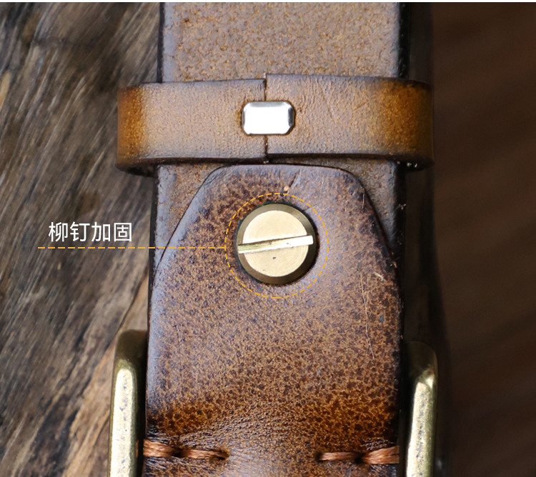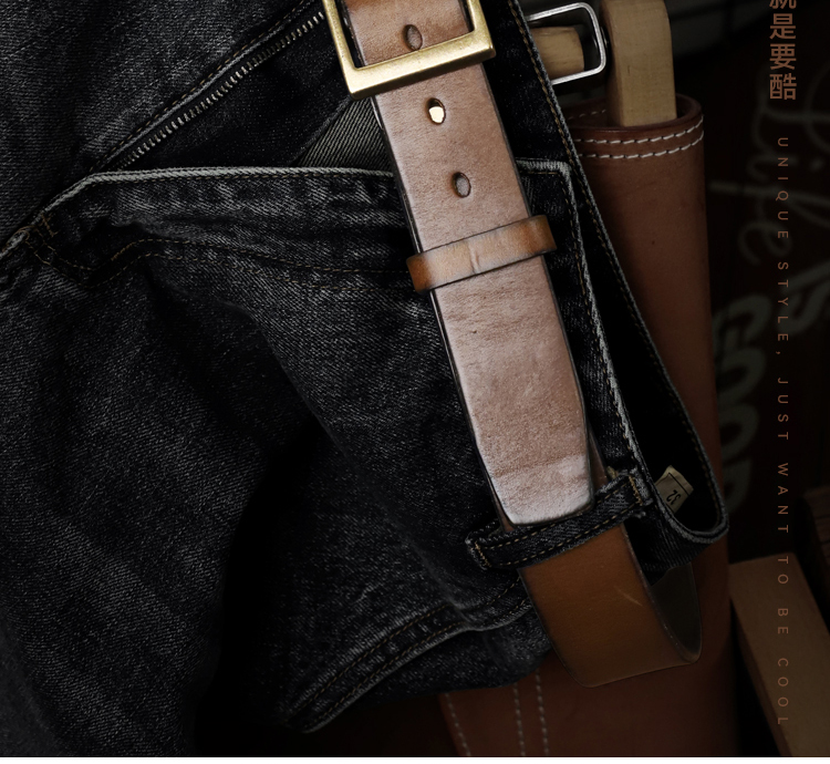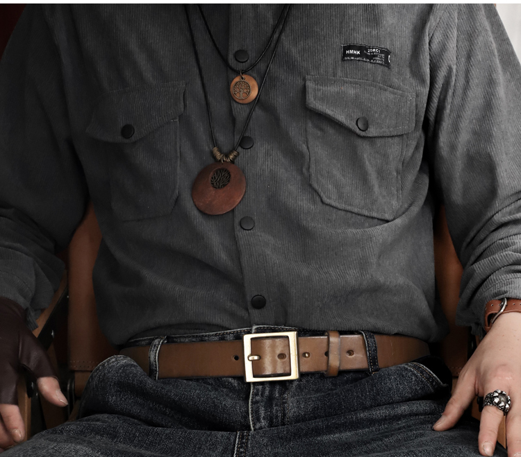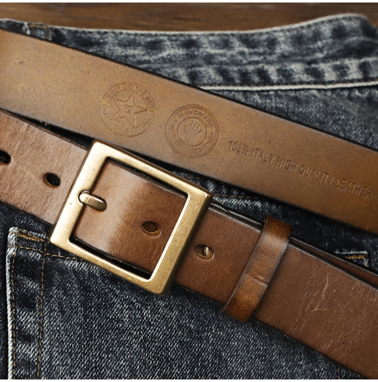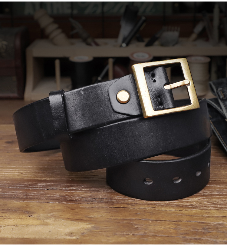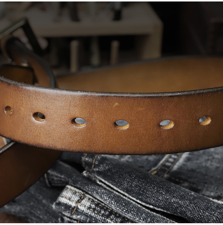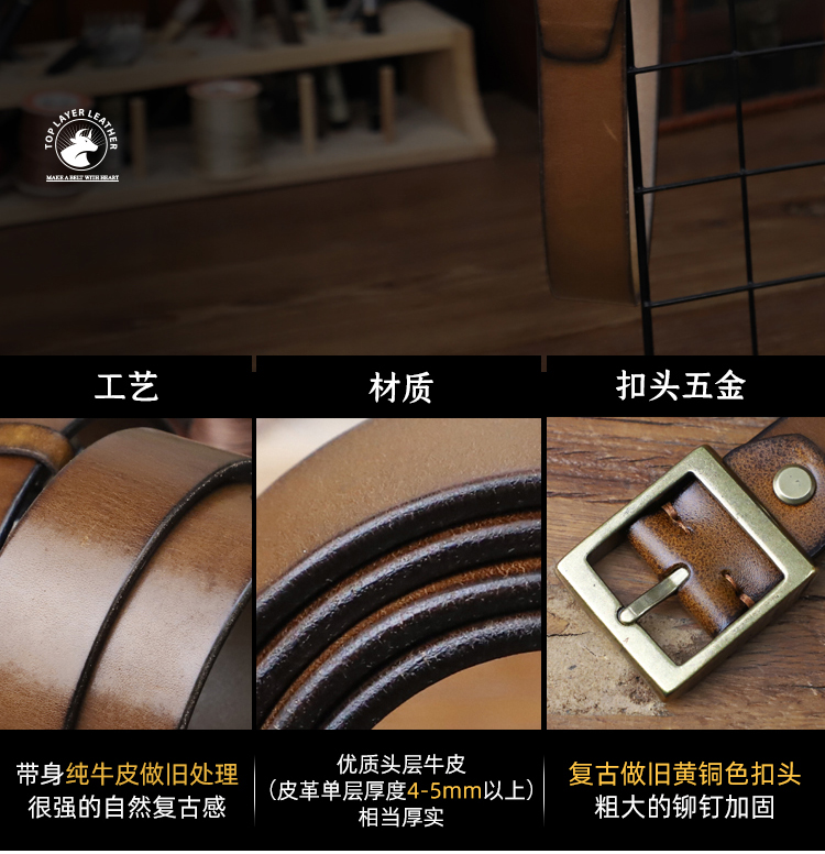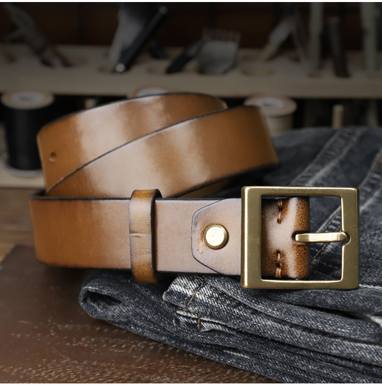 美式復古真皮腰帶 加厚頭層牛皮黃銅針扣皮帶