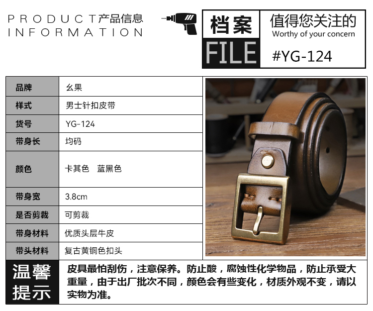 我們選用優質復古頭層牛皮製作,牛皮本身會存在一些天然屬性,如生長紋、血筋、摩擦出的顏色變化、皮斑、紋路不均勻、蚊蟲叮咬,均不屬於質量問題。手工製作的過程中,也會常常留下指甲印、刮痕、壓印、打磨痕跡等等問題,也不屬於質量問題。