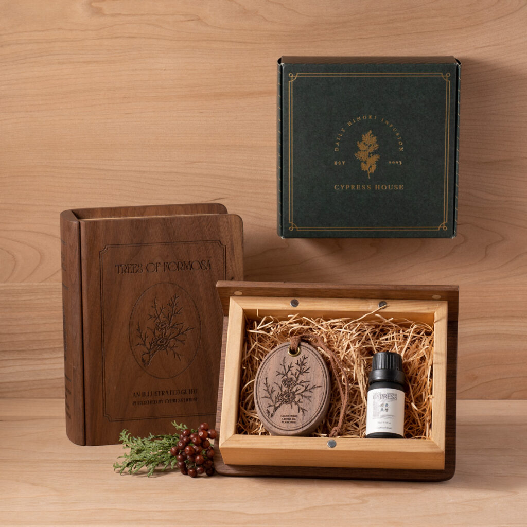 檜木居**墨綠燙金紙盒**沈穩大氣,