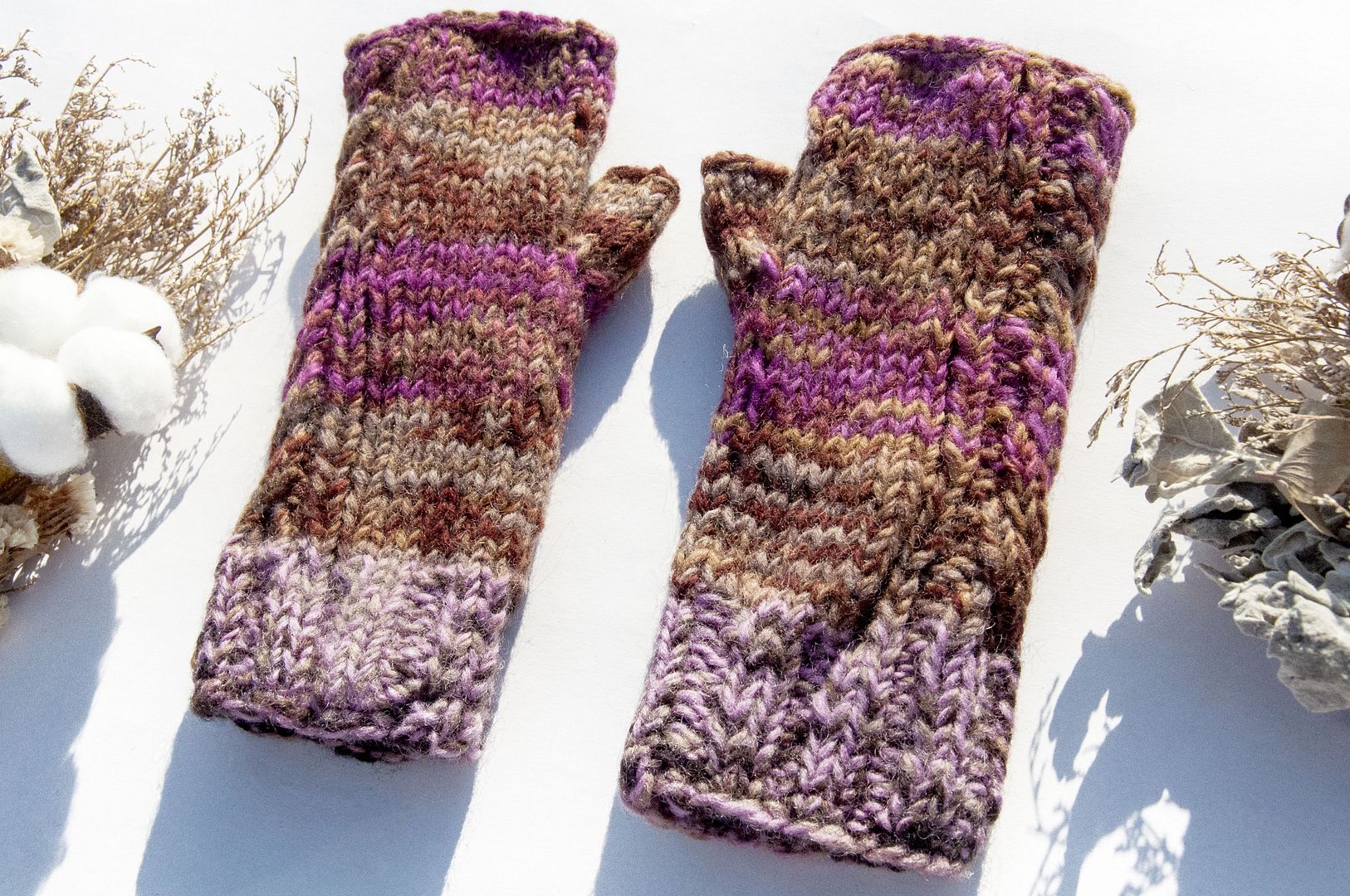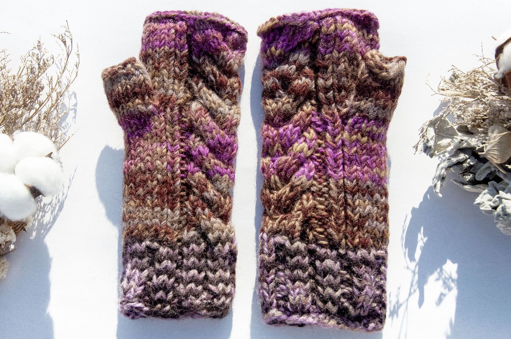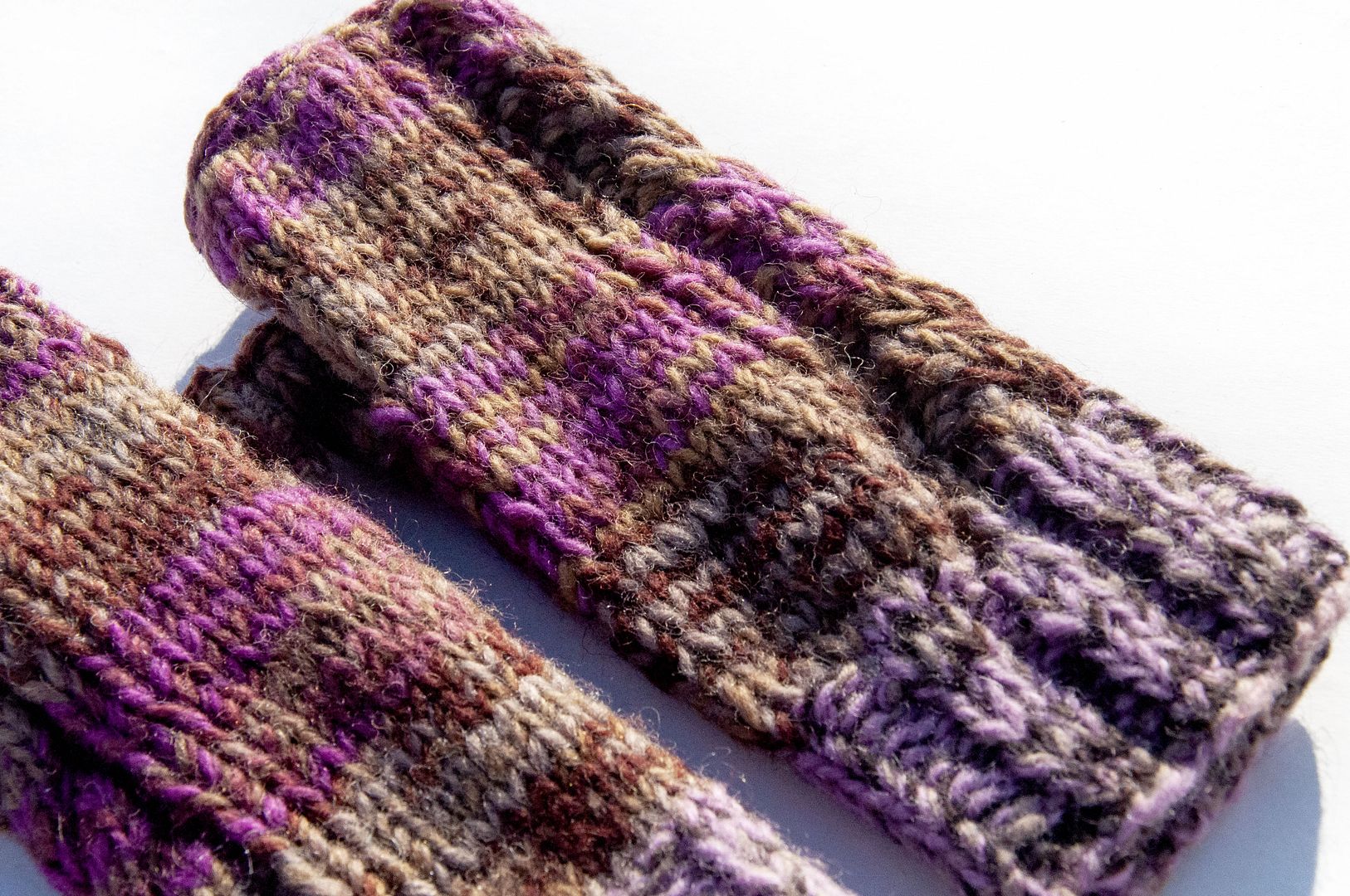 手織純羊毛針織手套/露趾手套/內刷毛手套/保暖手套-北歐漸層水彩