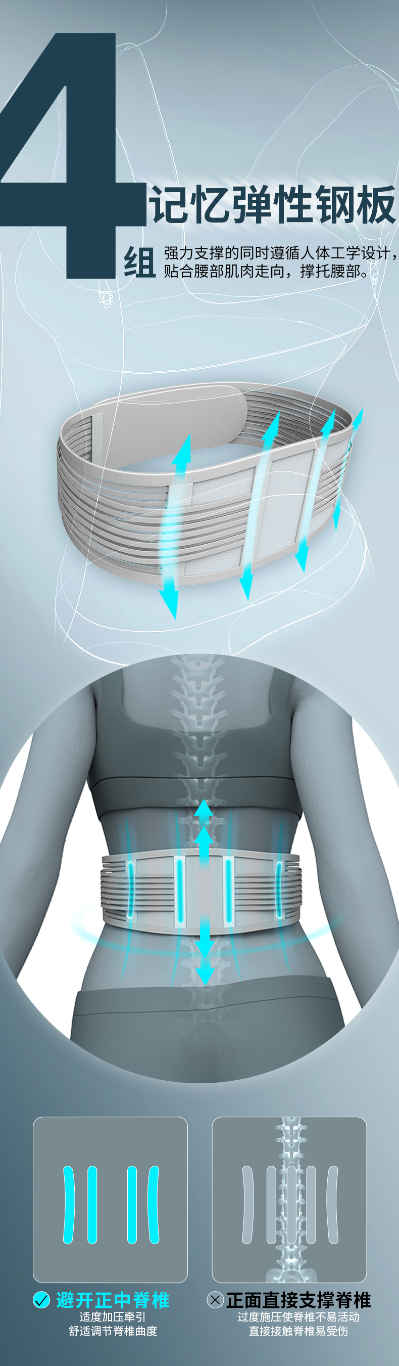 4組記憶彈性鋼板|3重加壓彈力帶|加長腰帶