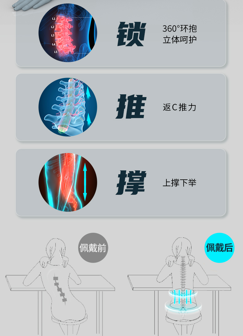 仿生支撐系統|科學分區支撐|360°環抱鎖定腰椎