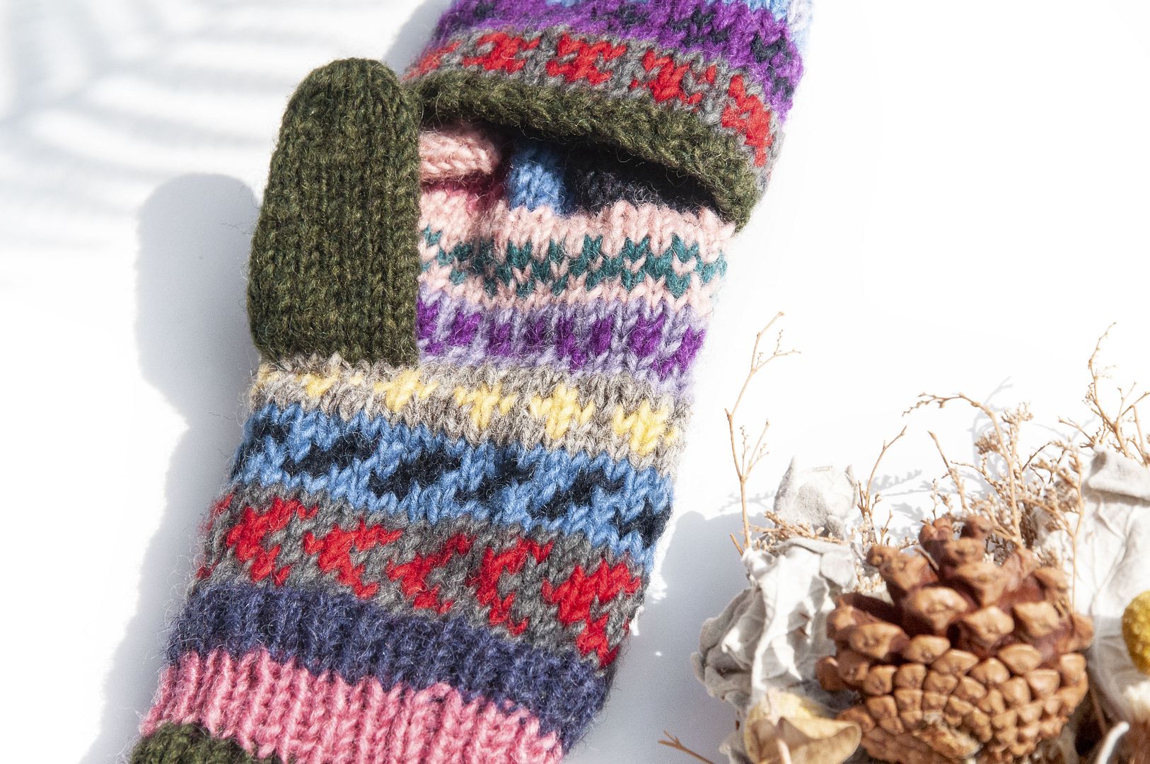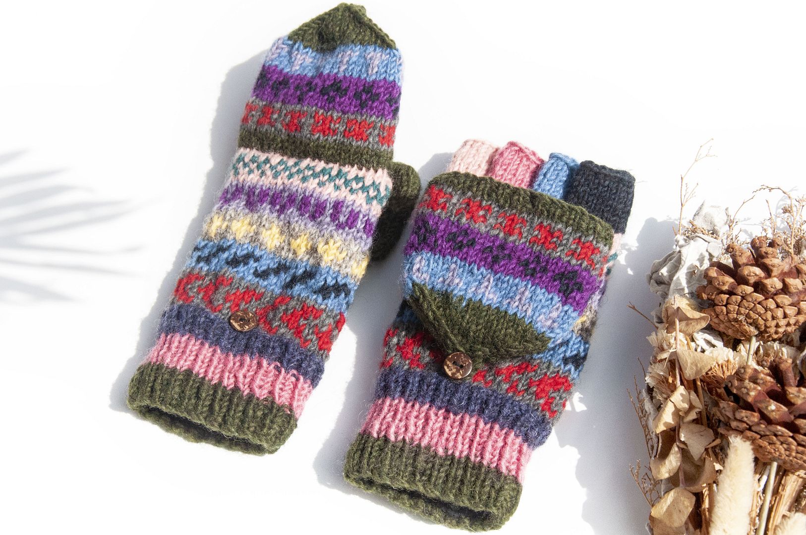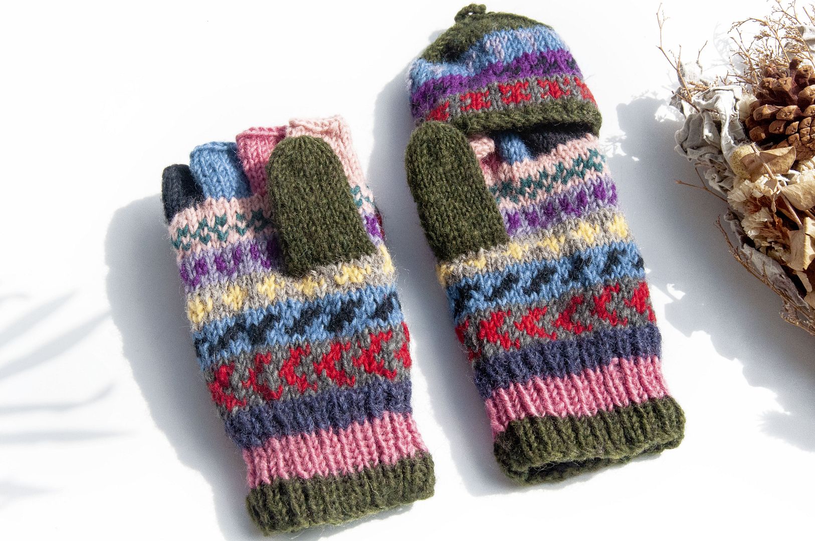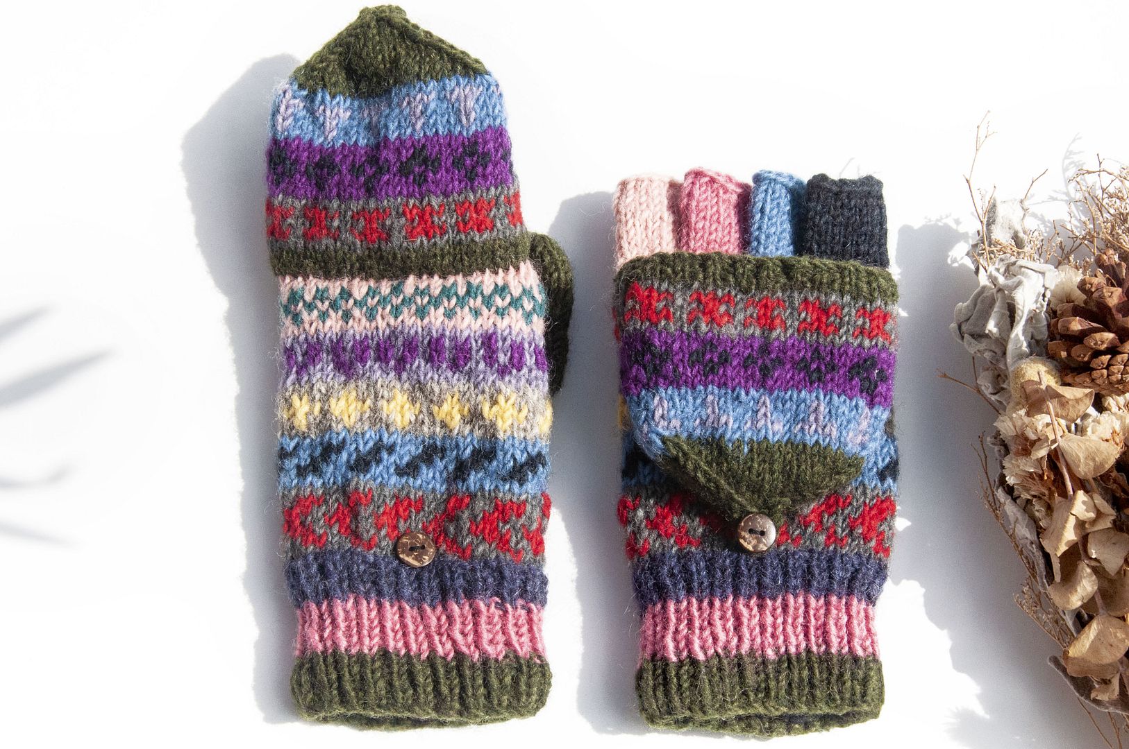手織純羊毛針織手套/可拆卸保暖手套/內刷毛手套/觸控手套-北歐