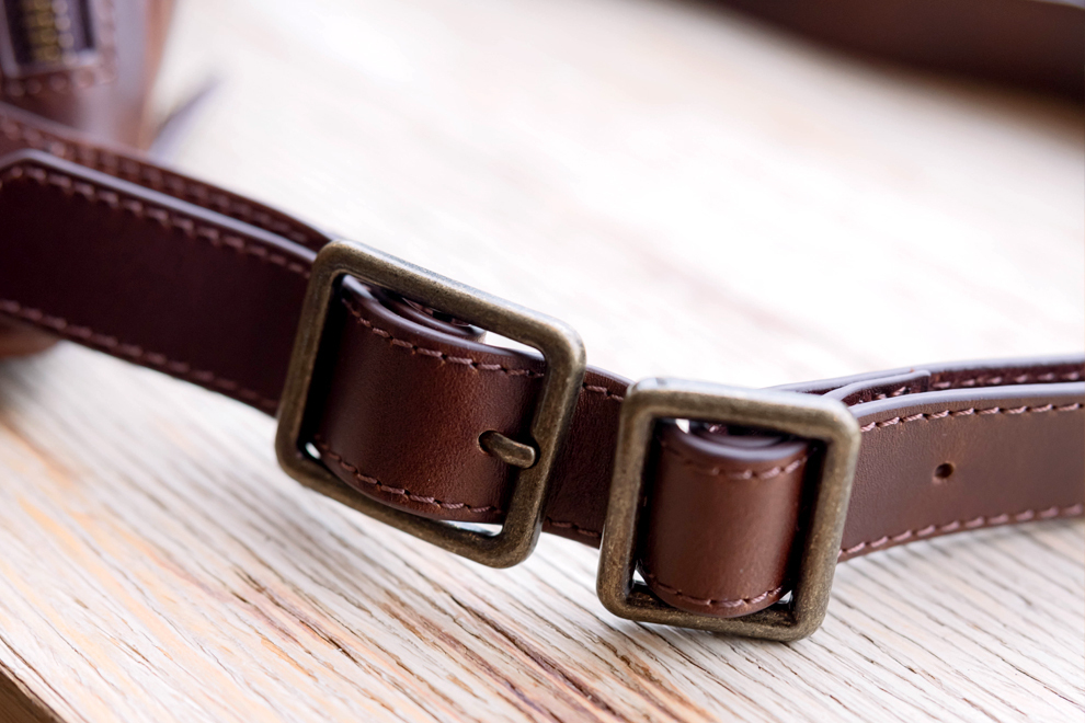 此外,黃銅五金件的穩固性提升了背帶的承重,無論是經年累月的使用還是日常輕鬆出行,不必擔心對皮革造成磨損或影響背帶壽命。