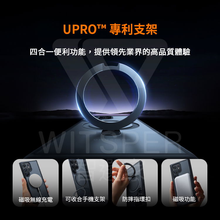 🔹四合一多工支架|磁吸掛環集無線充電+磁吸+手機支架+防摔指環扣於一身