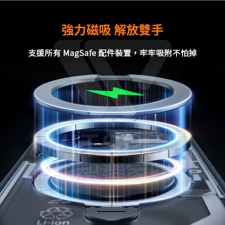 🔹強力磁吸 解放雙手|磁吸環相容各式 MagSafe設備,並支援三星無線充電,也可吸附於冰箱等鐵製品上,使用場景不設限
