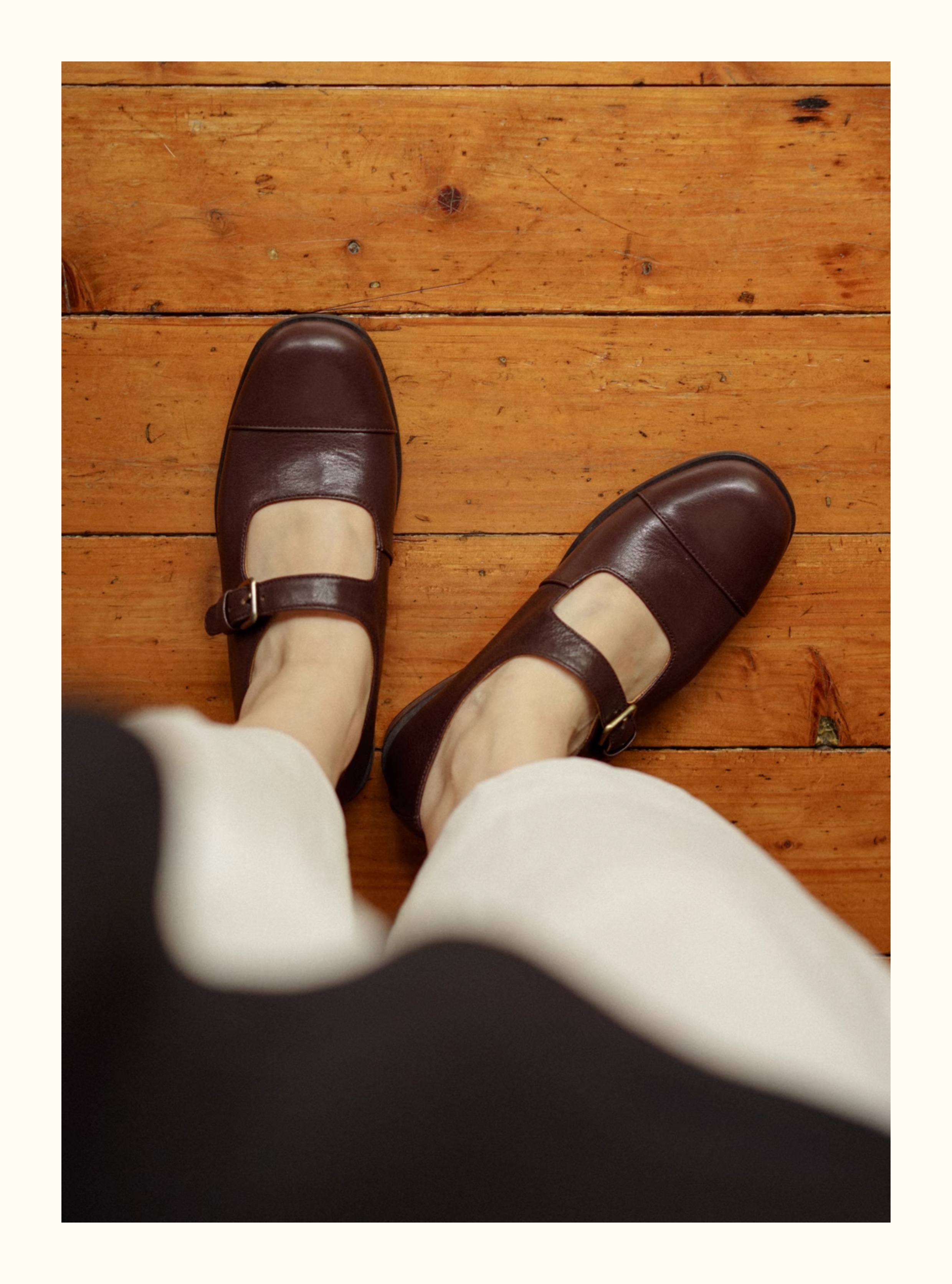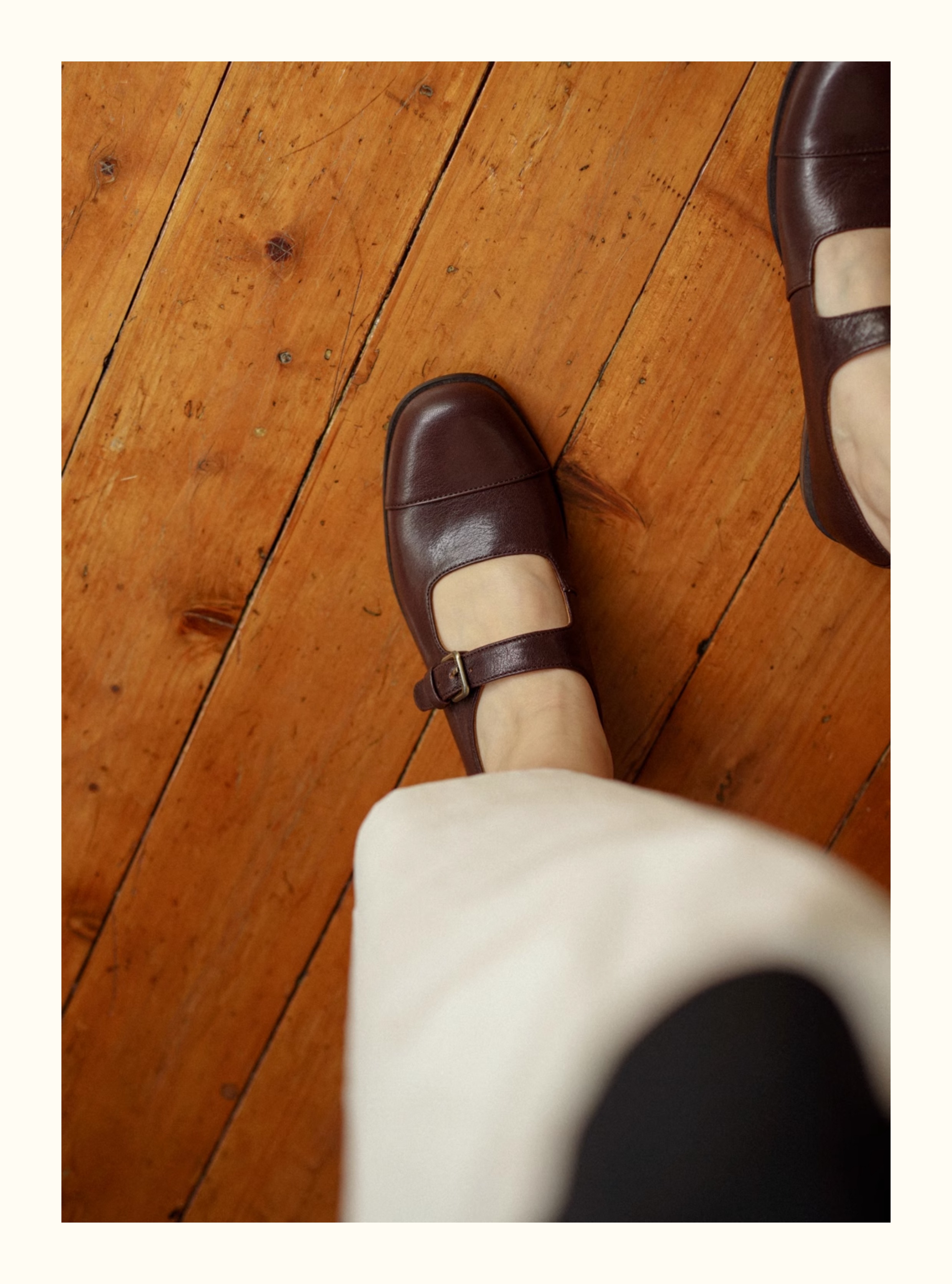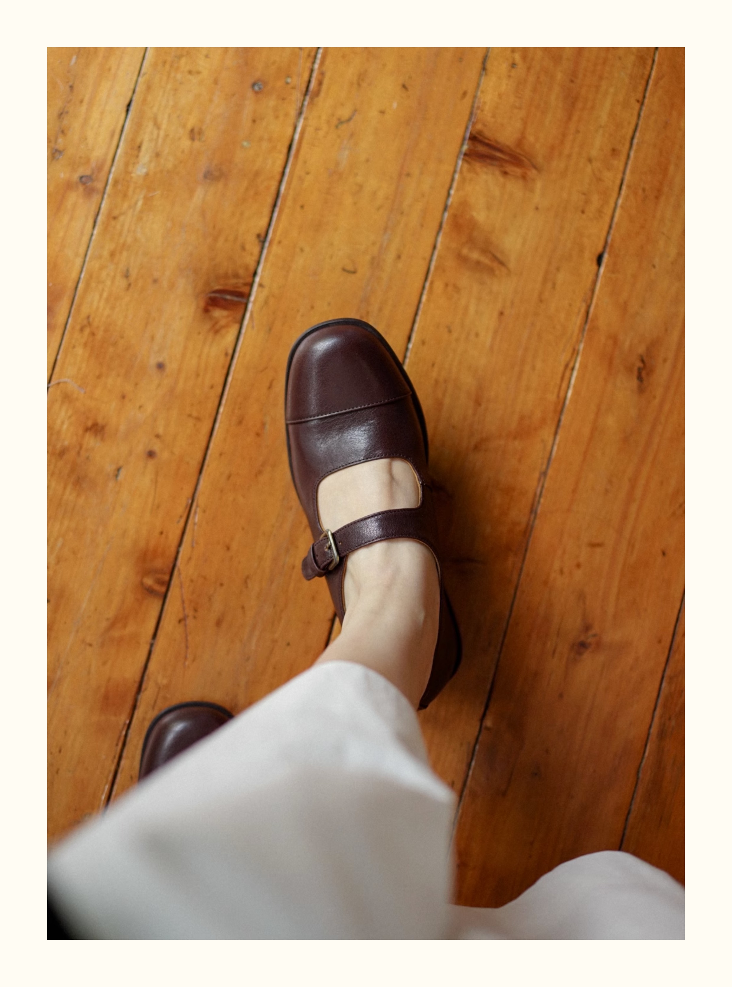 柔軟輕盈 復古羊皮瑪莉珍 手工製 巧克力色 手工製