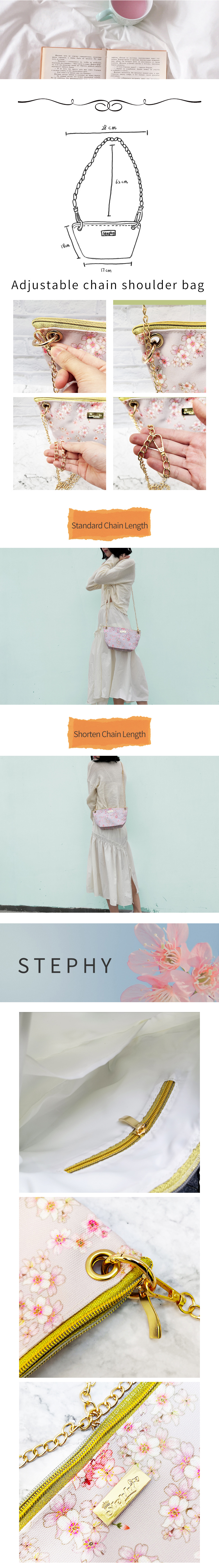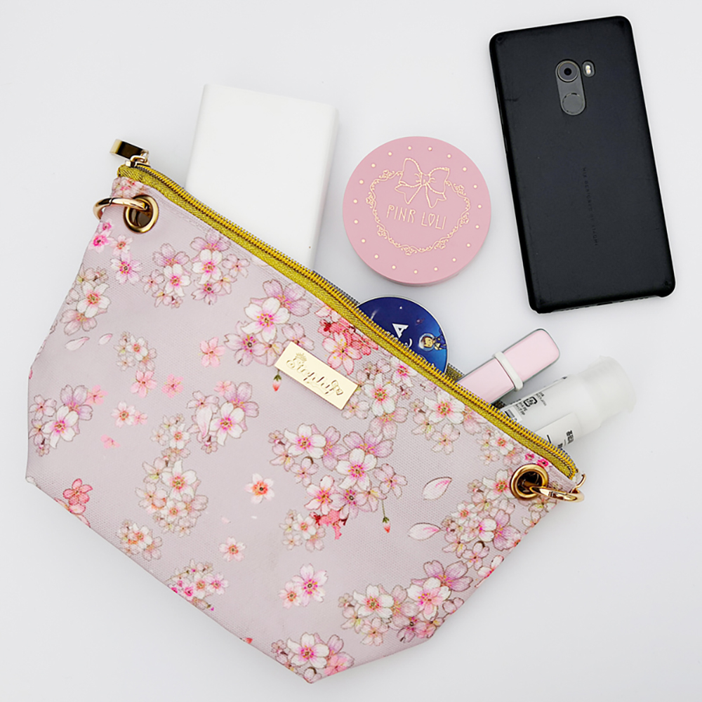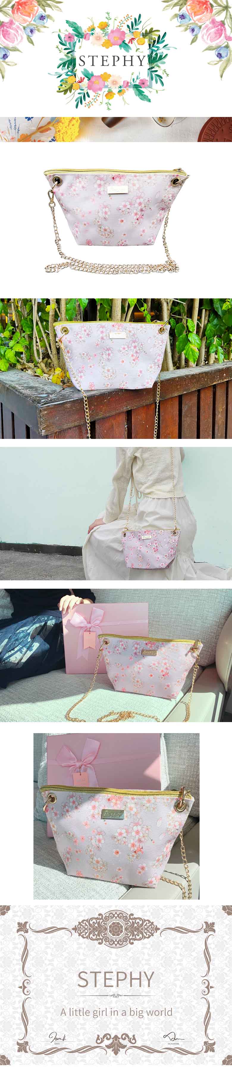 【春日櫻花】可調節長短鏈條帆布斜背包/餃子包/ 單肩包/側背包/隨身包/化妝包/小物包