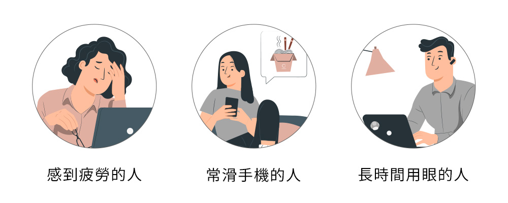長期感受到眼周疲勞、酸痛乾澀、時常使用手機、工作長時間盯著電腦....都適合搭配熱敷按摩眼罩緩解眼周疲勞!不分性別年齡,都可以使用。