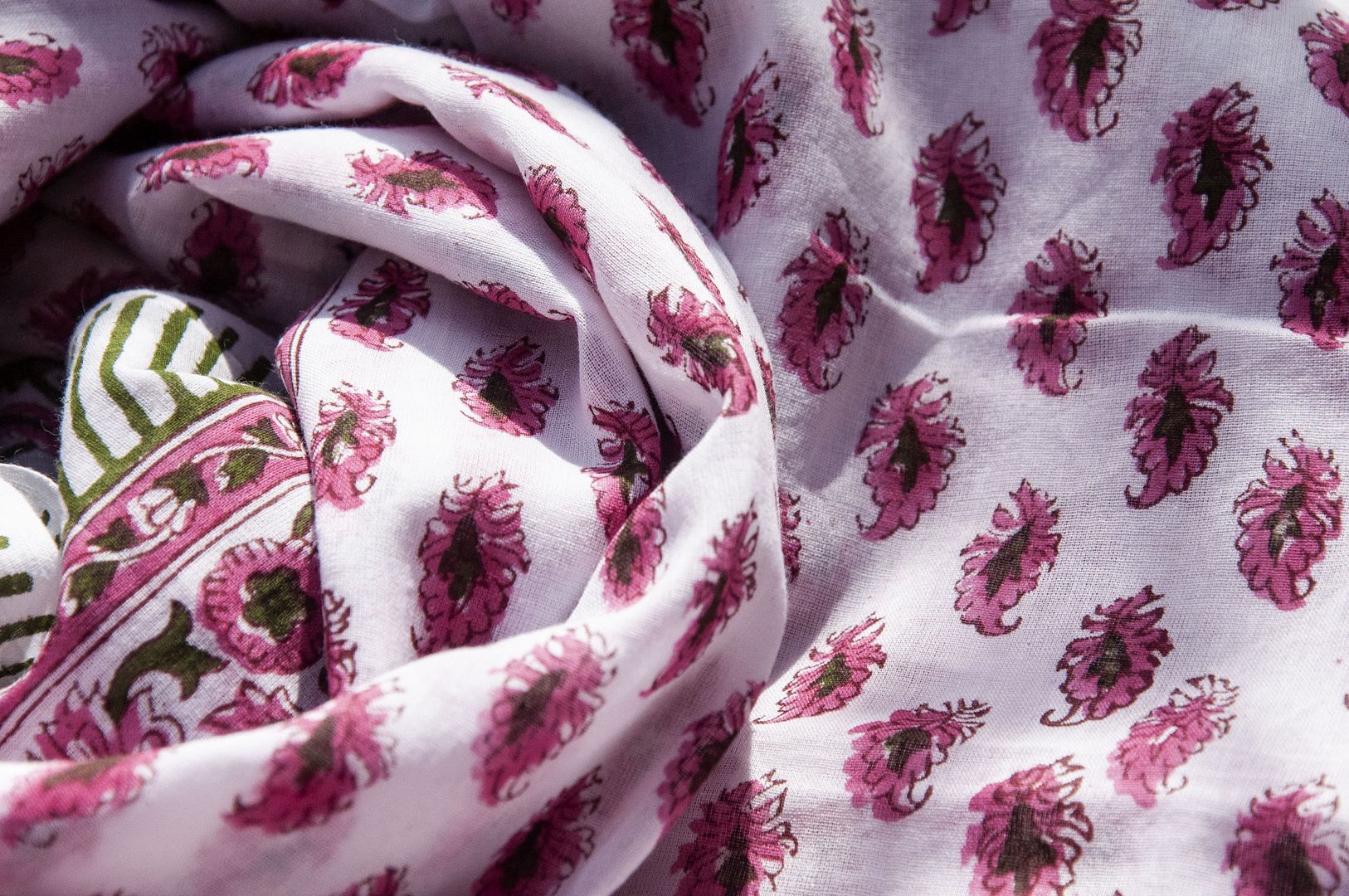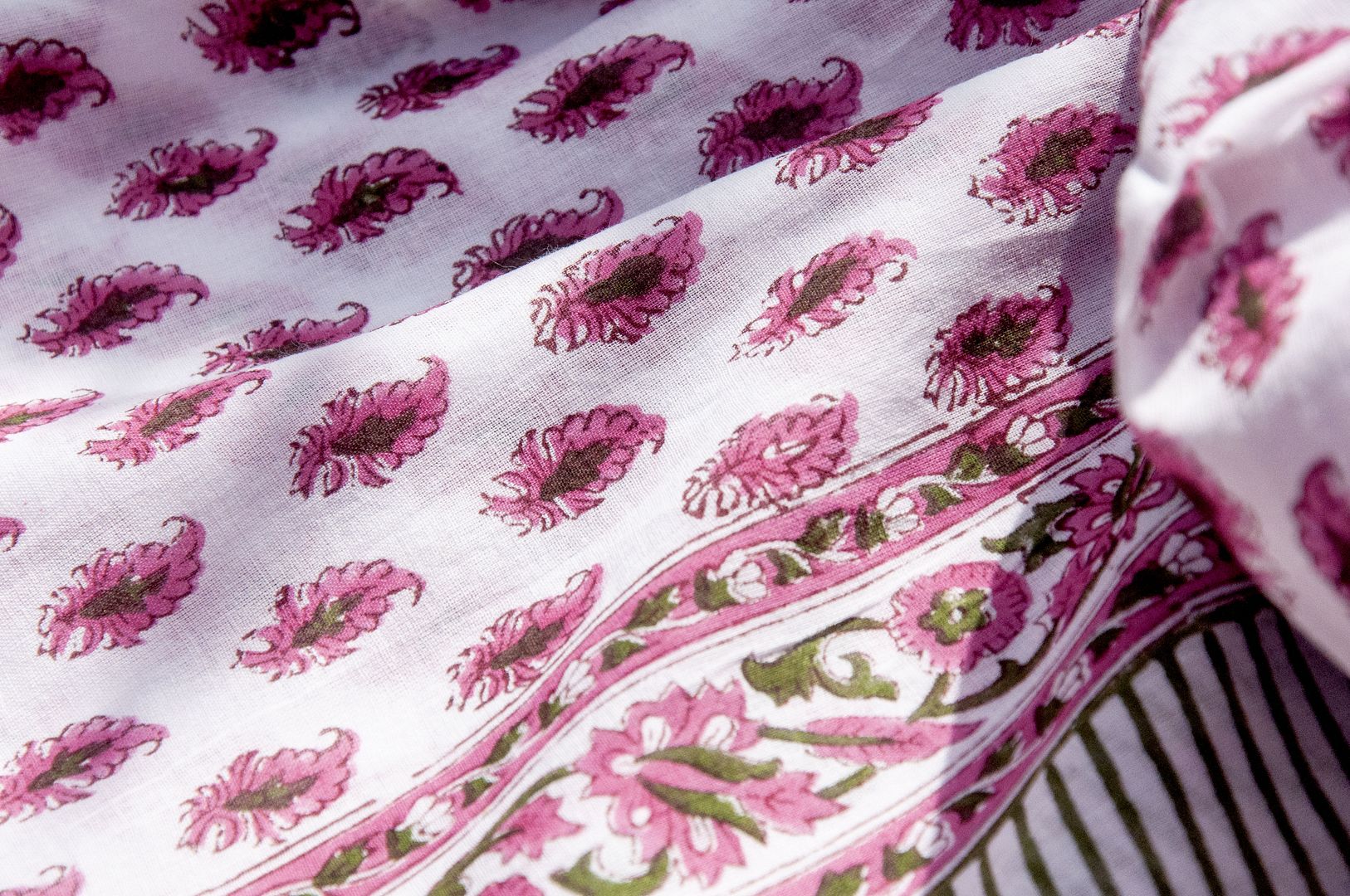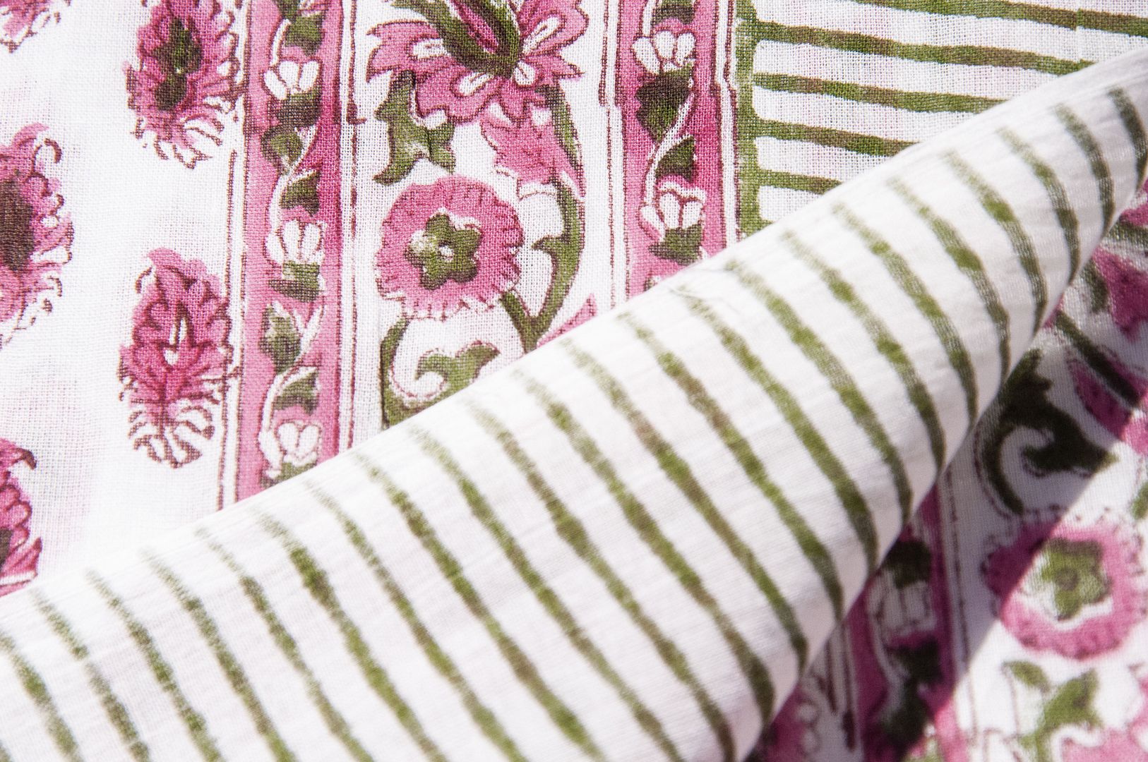 ▲嚴選印度的純棉材質,加上印度沙漠地區的木刻印工法,樸實的手工感,彷彿隨著花朵去旅行,置身於歐洲花園的氛圍