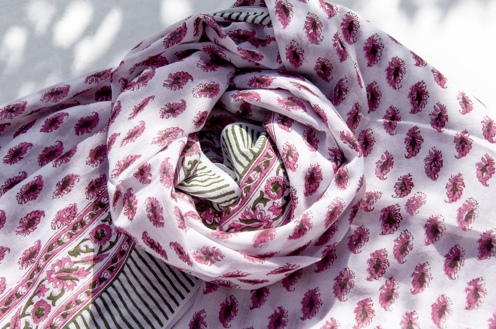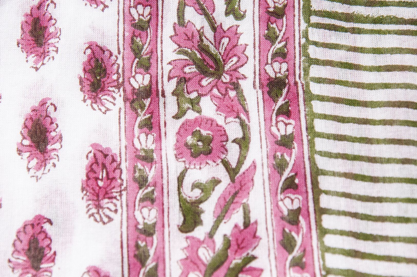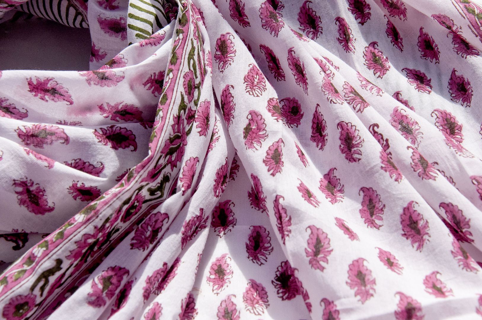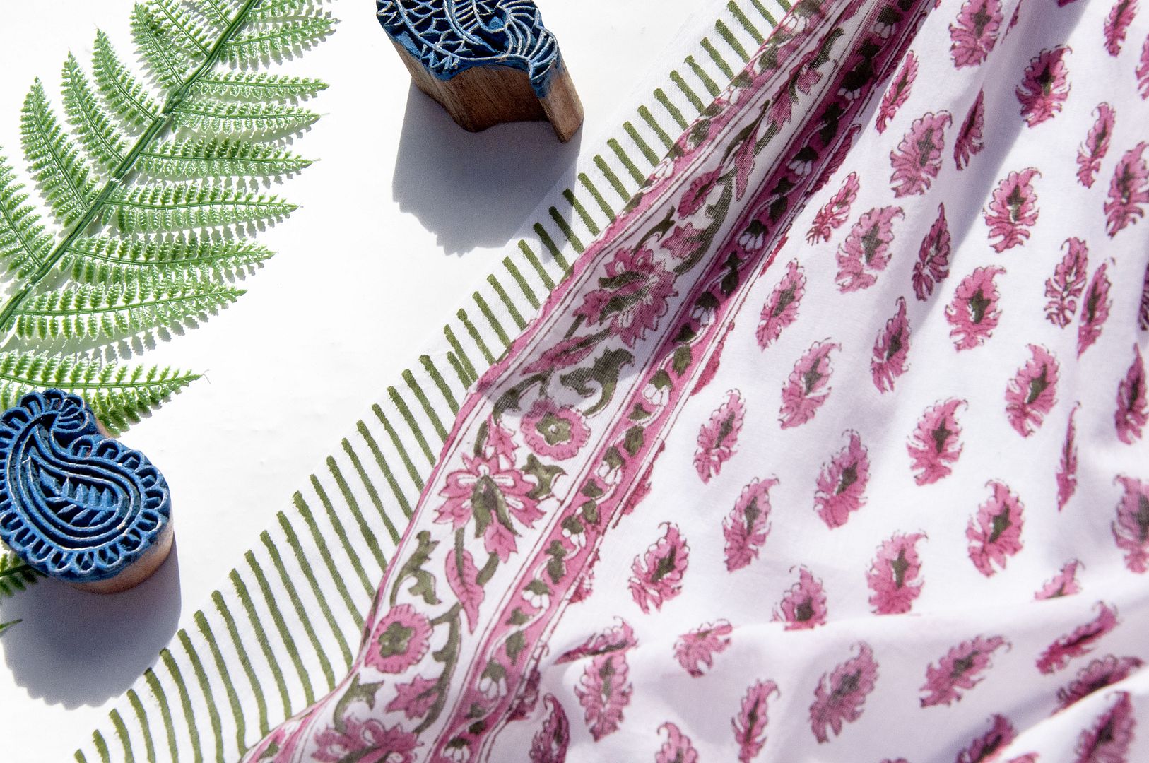 ▲嚴選印度的純棉材質,加上印度沙漠地區的木刻印工法,樸實的手工感,彷彿隨著花朵去旅行,置身於歐洲花園的氛圍