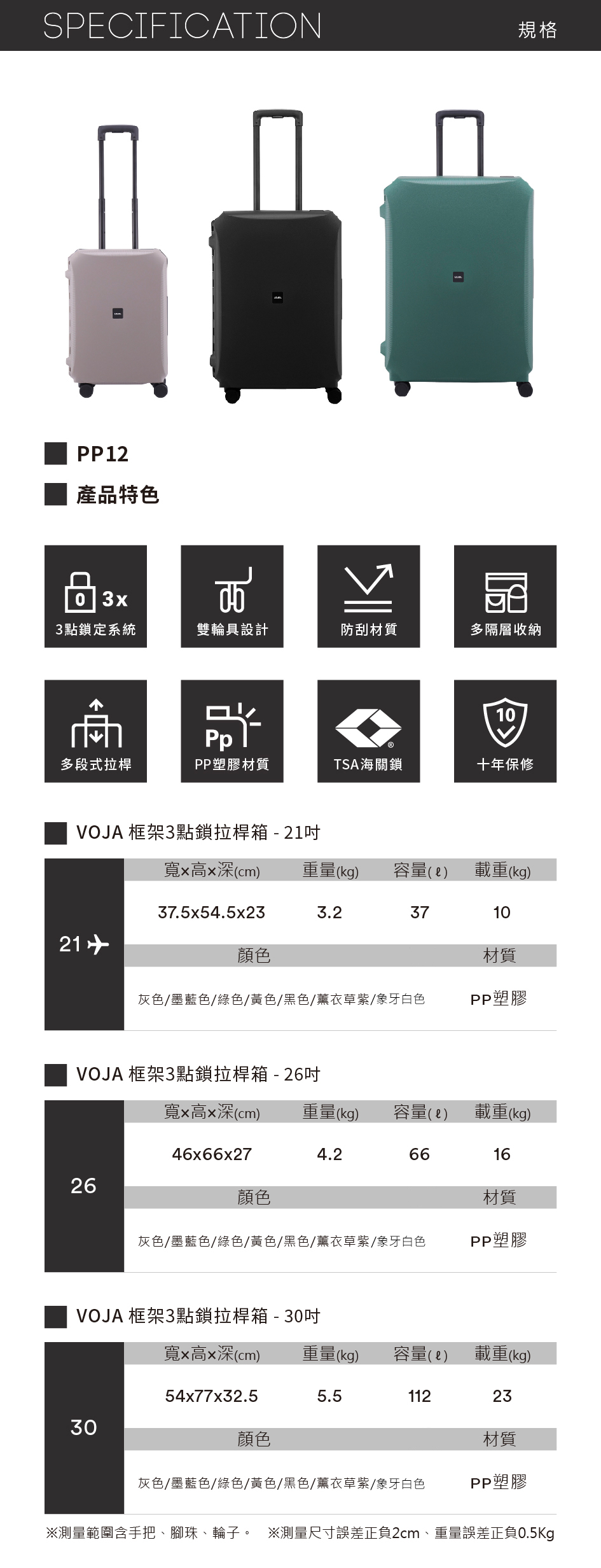 【LOJEL】VOJA 26吋 PP框架拉桿箱 行李箱 灰色