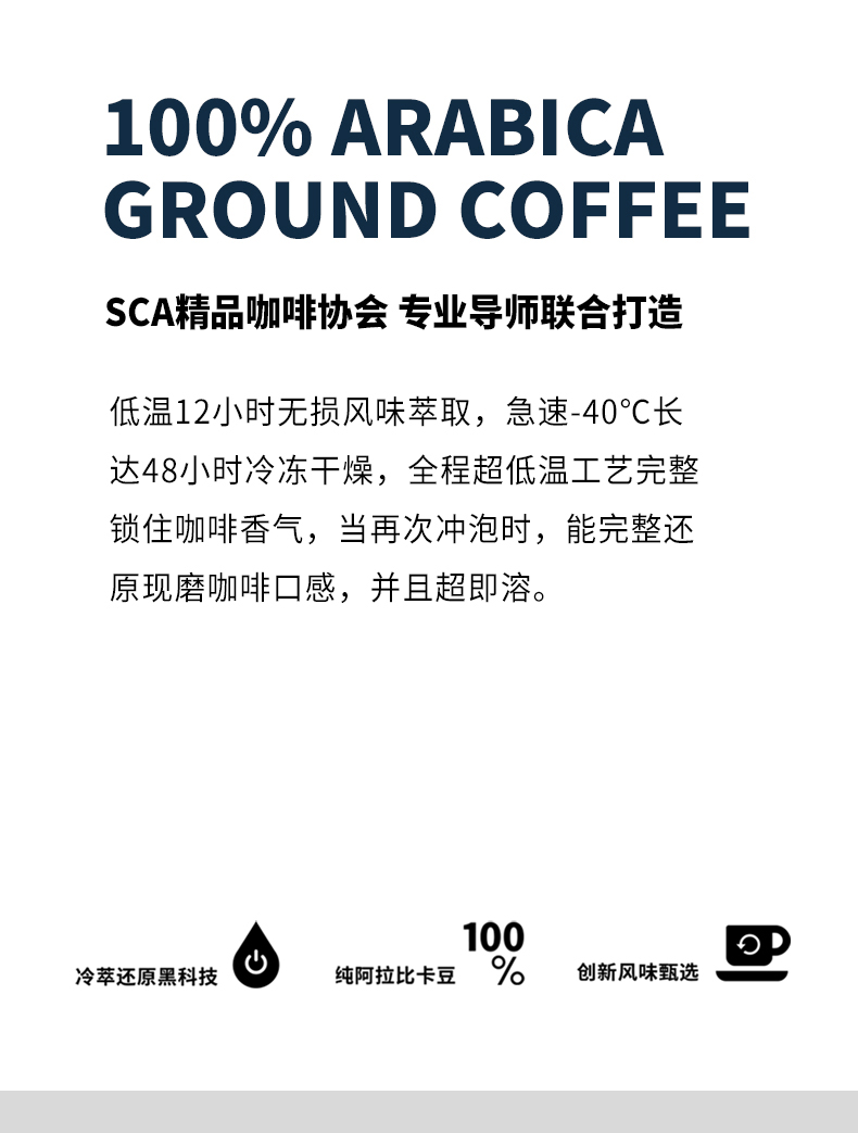 SCA精品咖啡協會專業導師聯合打造低溫12小時無損風味萃取,急速-40°℃長達48小時冷凍乾燥,全程超低溫工藝完整鎖住咖啡香氣,當再次沖泡時,能完整還