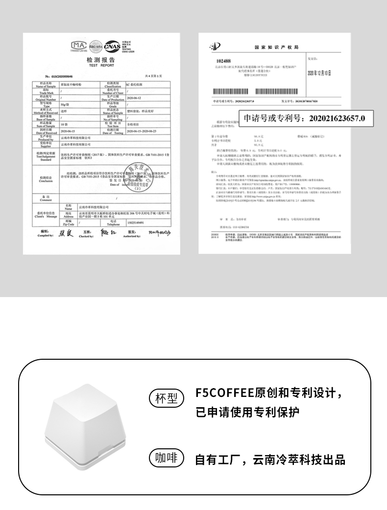 杯型 F5COFFEE原創和專利設計,已申請使用專利保護
