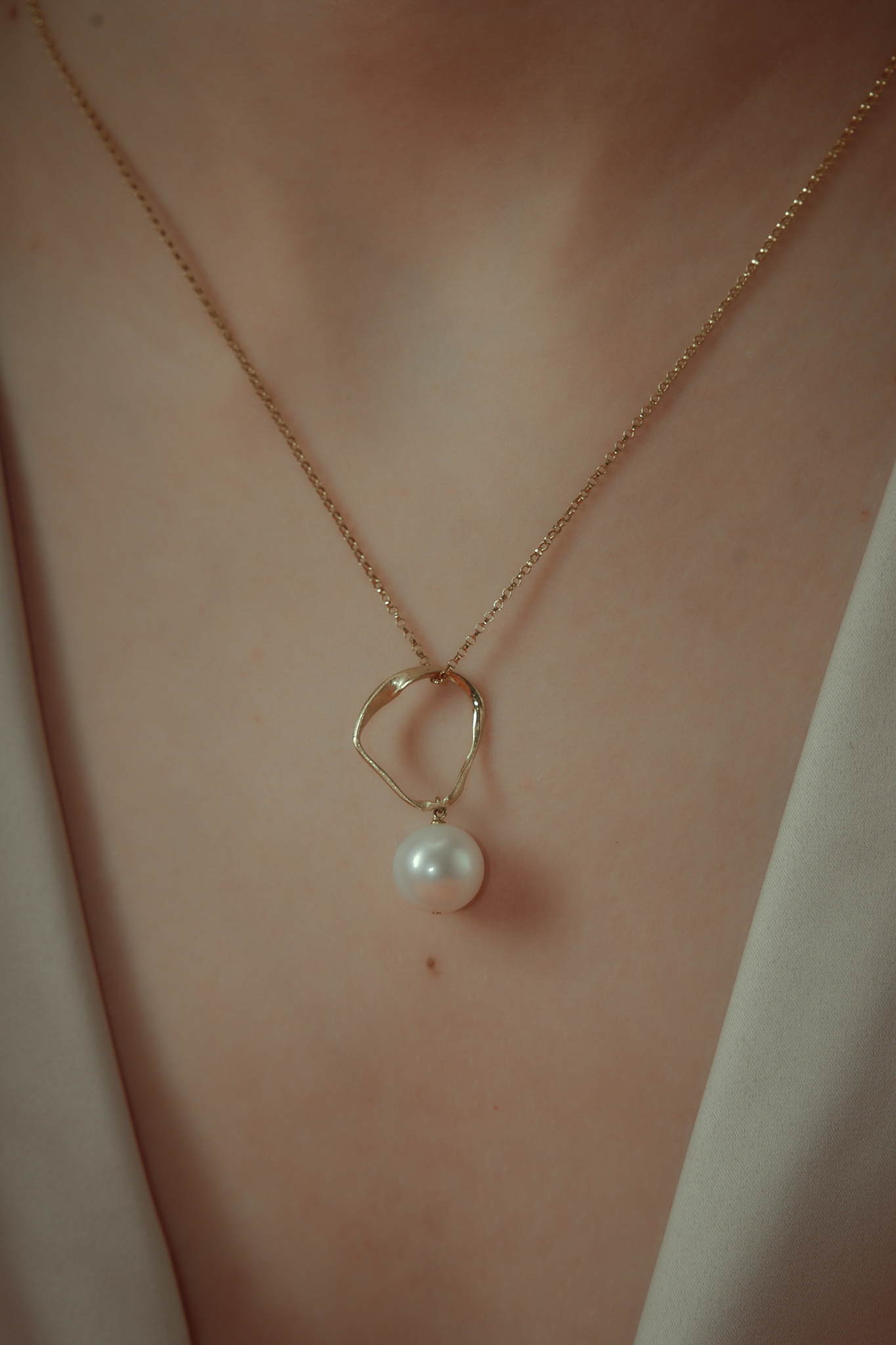 材質|925 純銀鍍金、14K 合金鍊、淡水珍珠 *珍珠為自然物質,表面有明顯天然生長紋路、小洞為正常現象