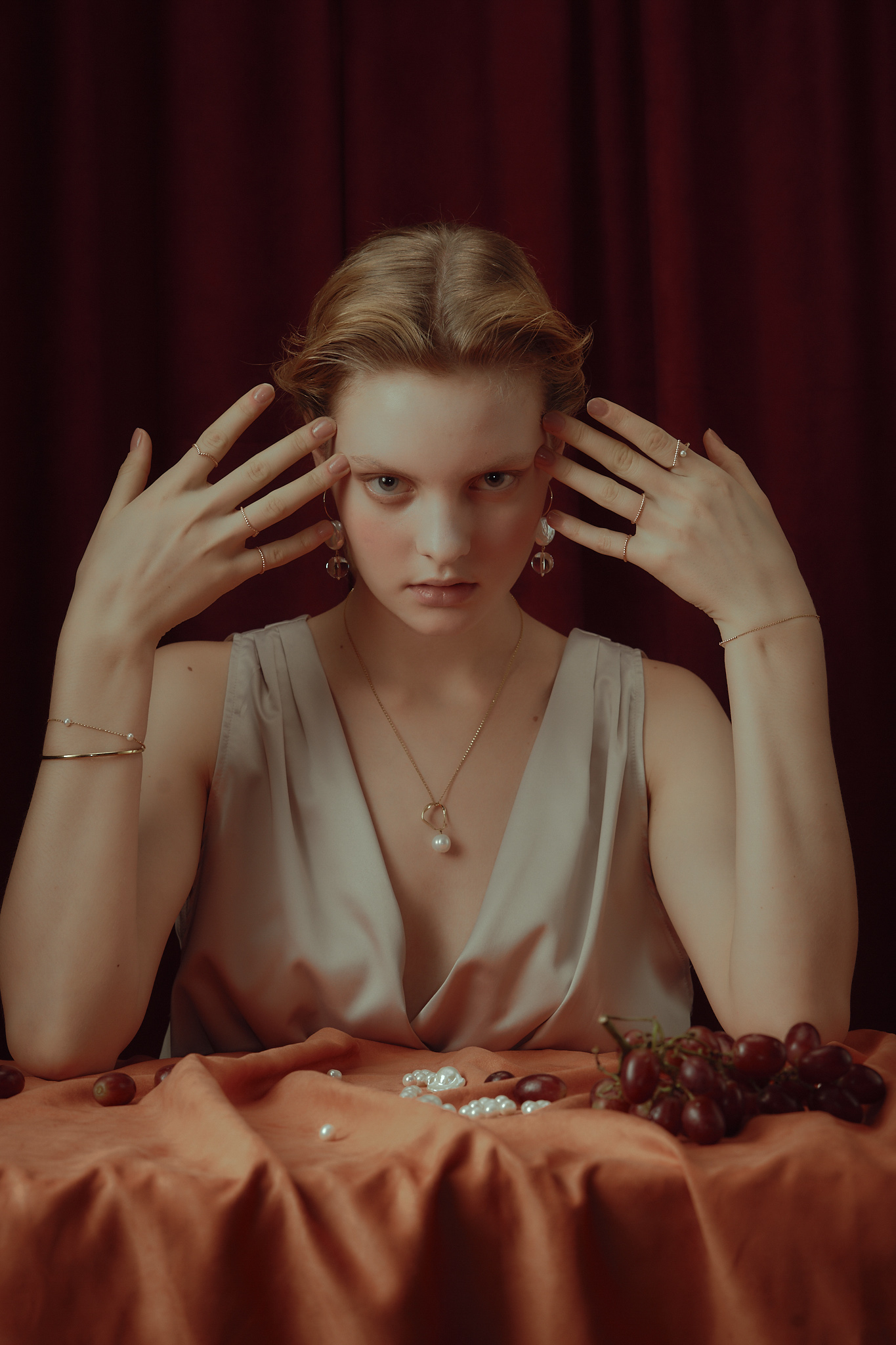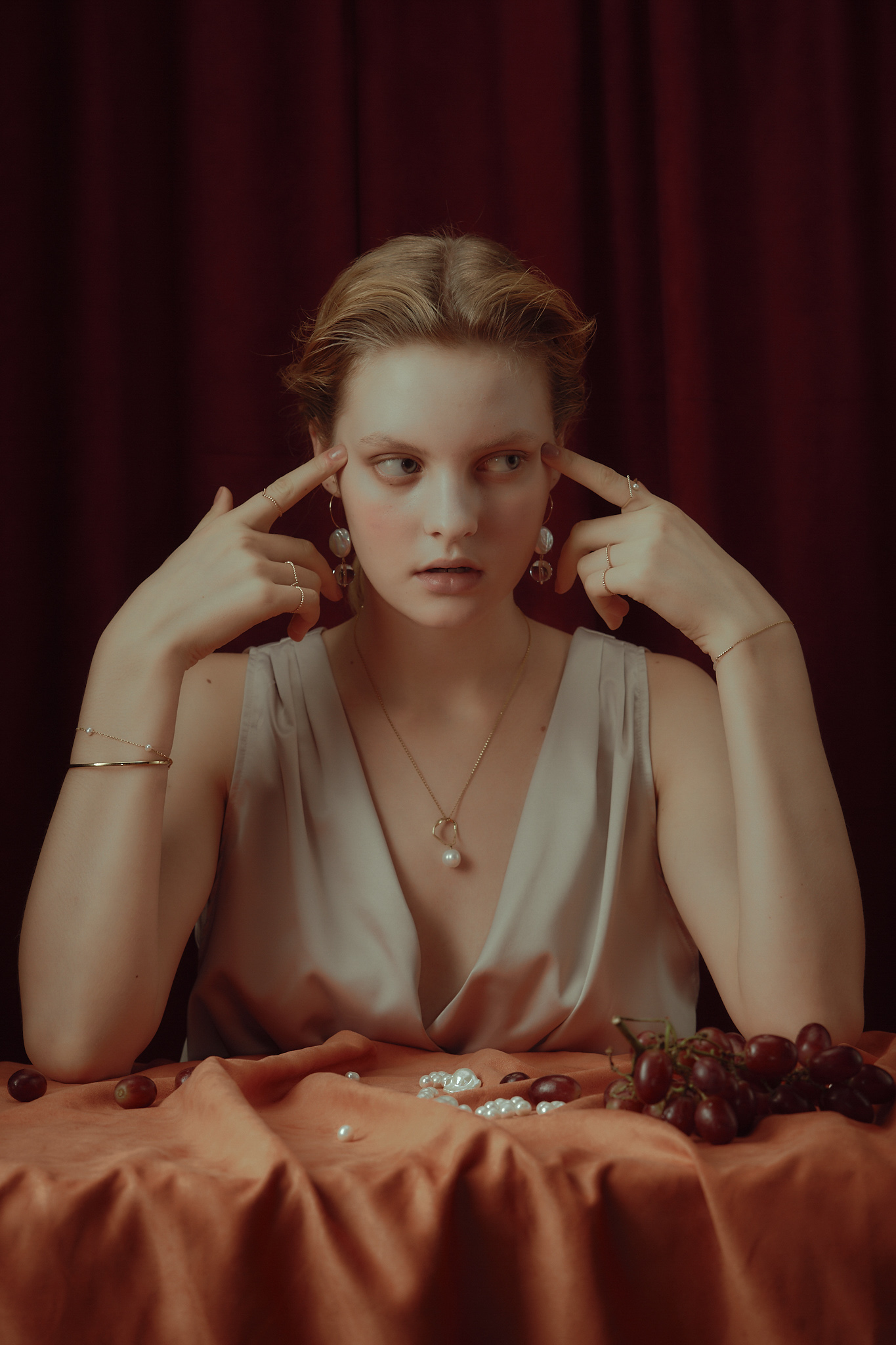 鏤空簡約的 Ripple 不規則緞圈,搭配渾圓淡水珍珠的比例,典雅大方,使線條更修長。