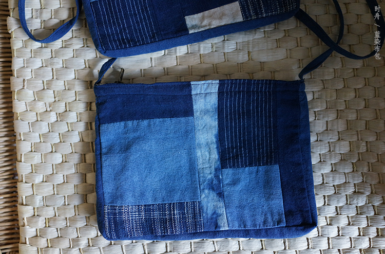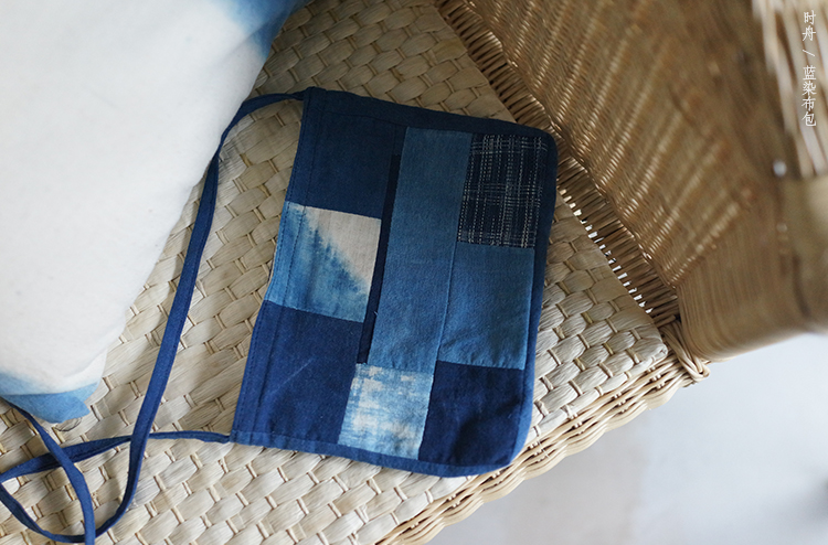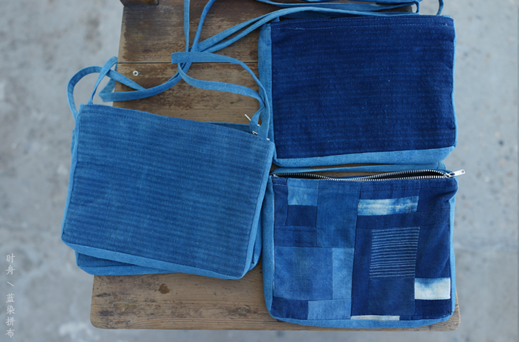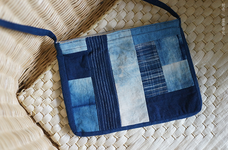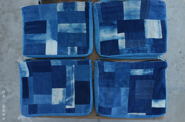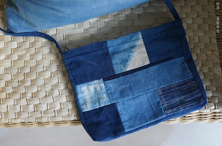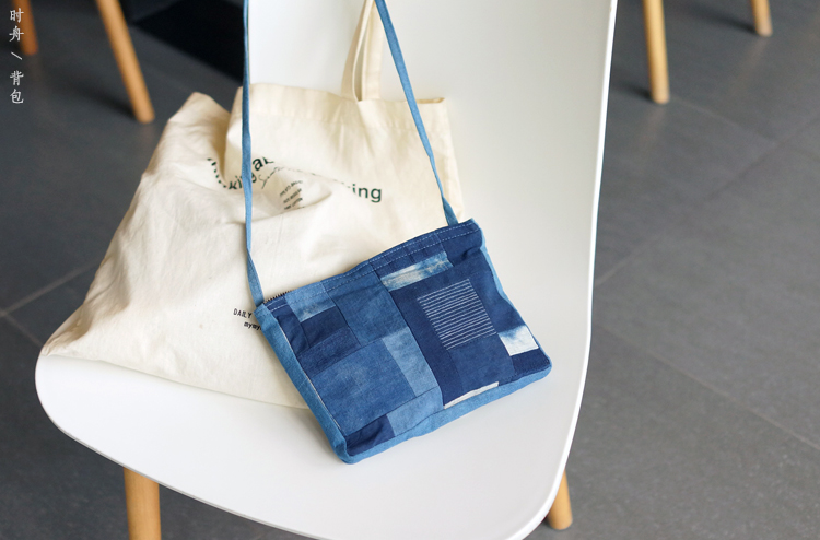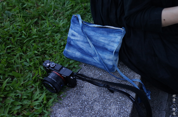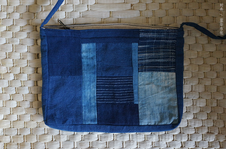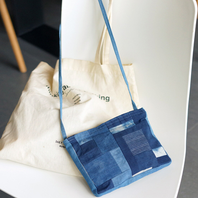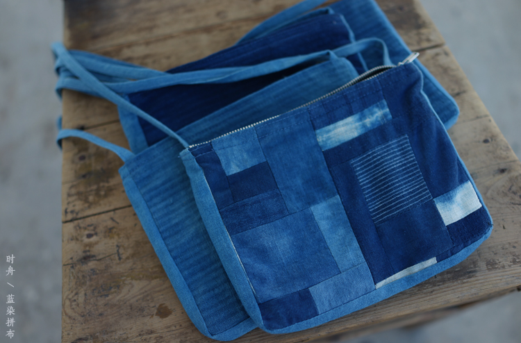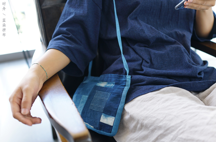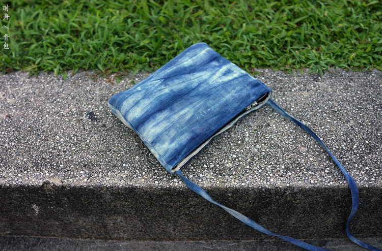 深淺藍染 Indigo手作植物染拼布拉鏈款 夏日斜背包零錢包