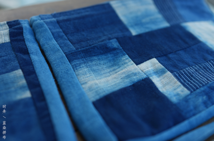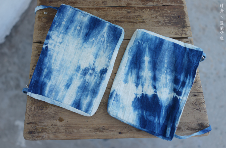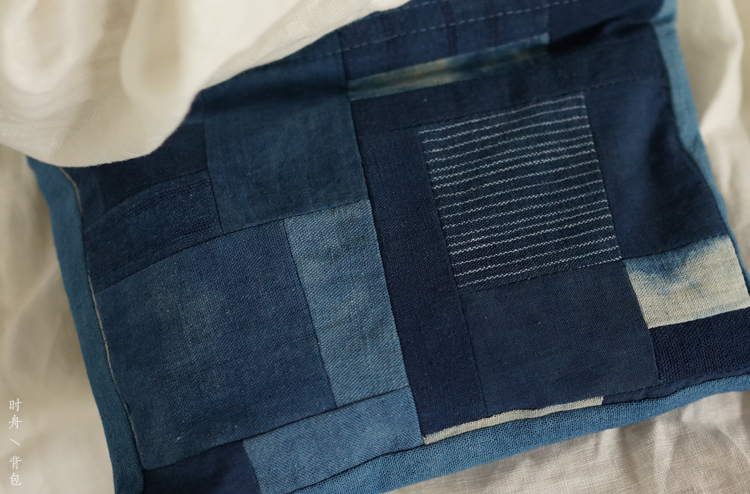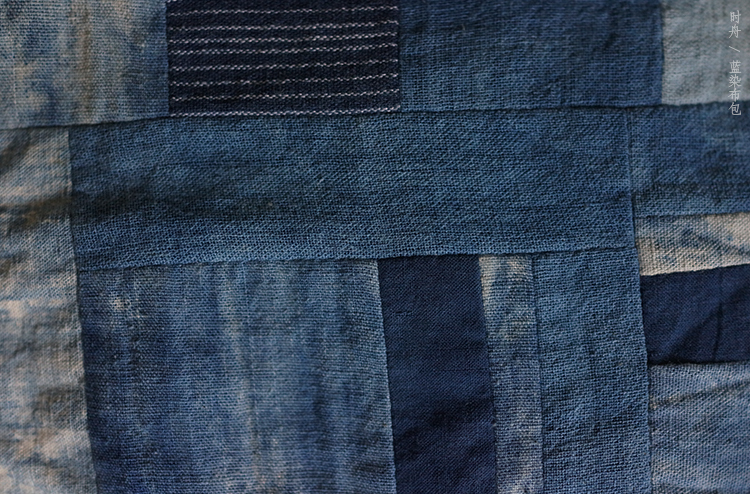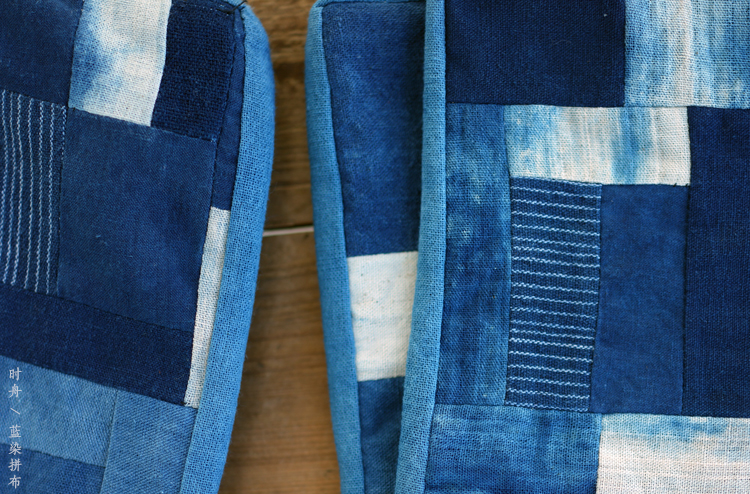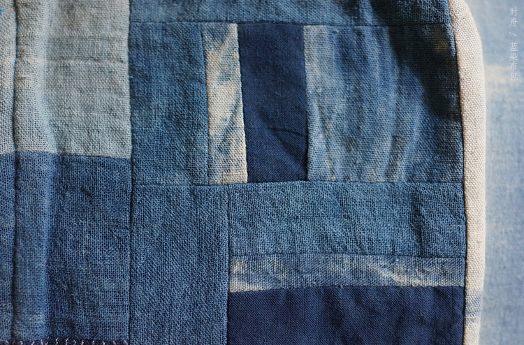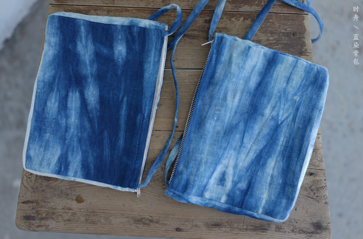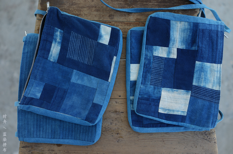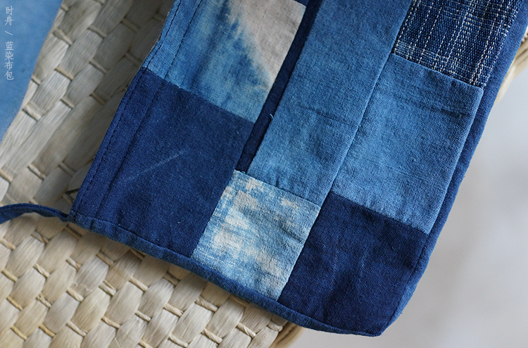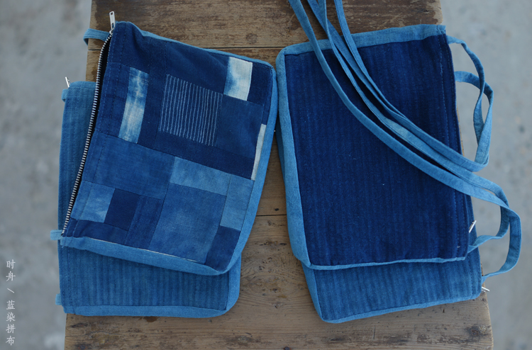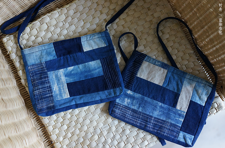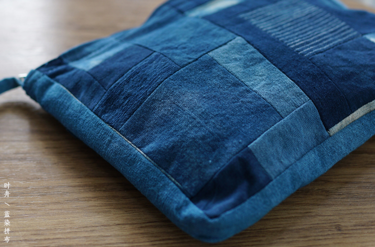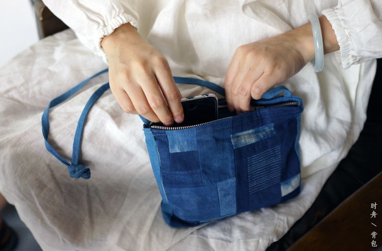 深淺藍染 Indigo手作植物染拼布拉鏈款 夏日斜背包零錢包