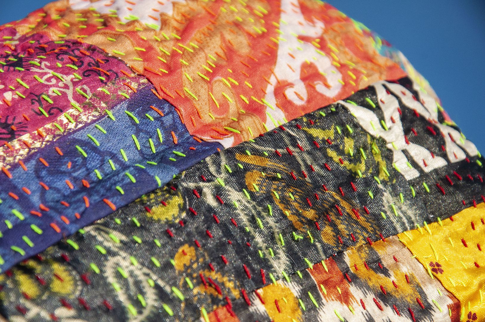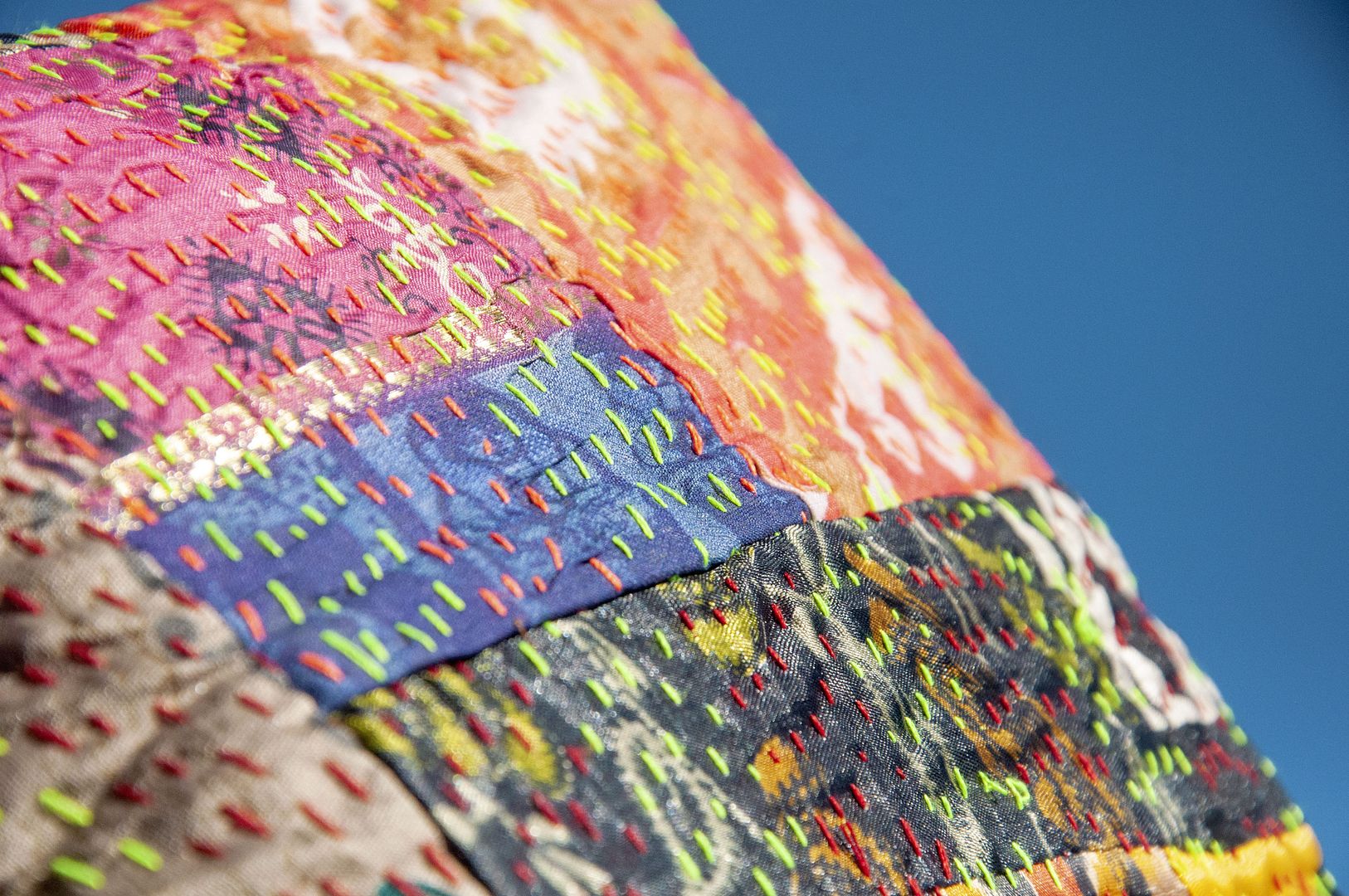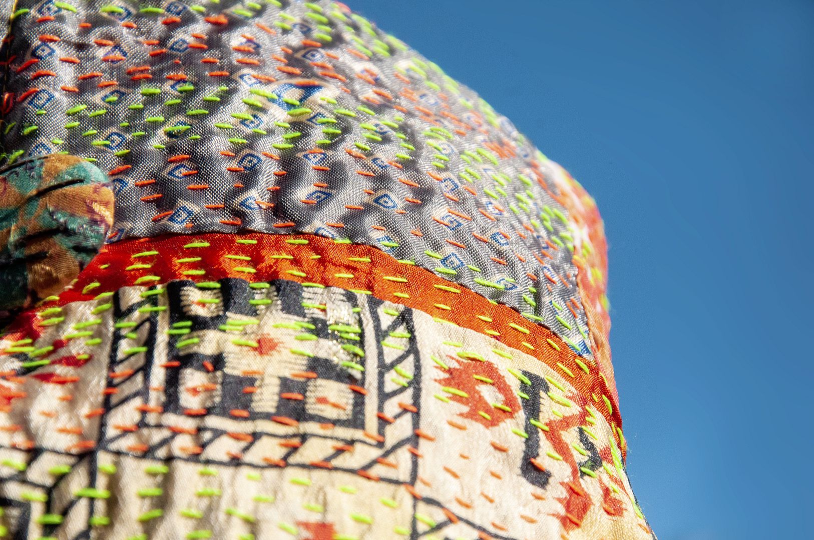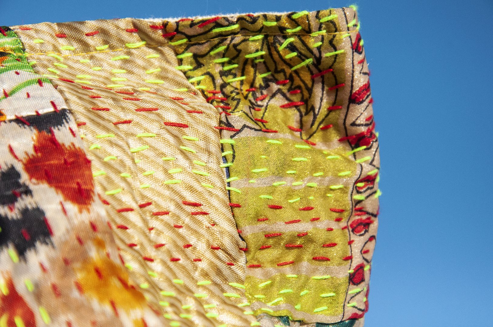 ▲來自印度沙漠地區的gudri刺繡工法,嚴選印度絲質紗麗布+棉線刺繡