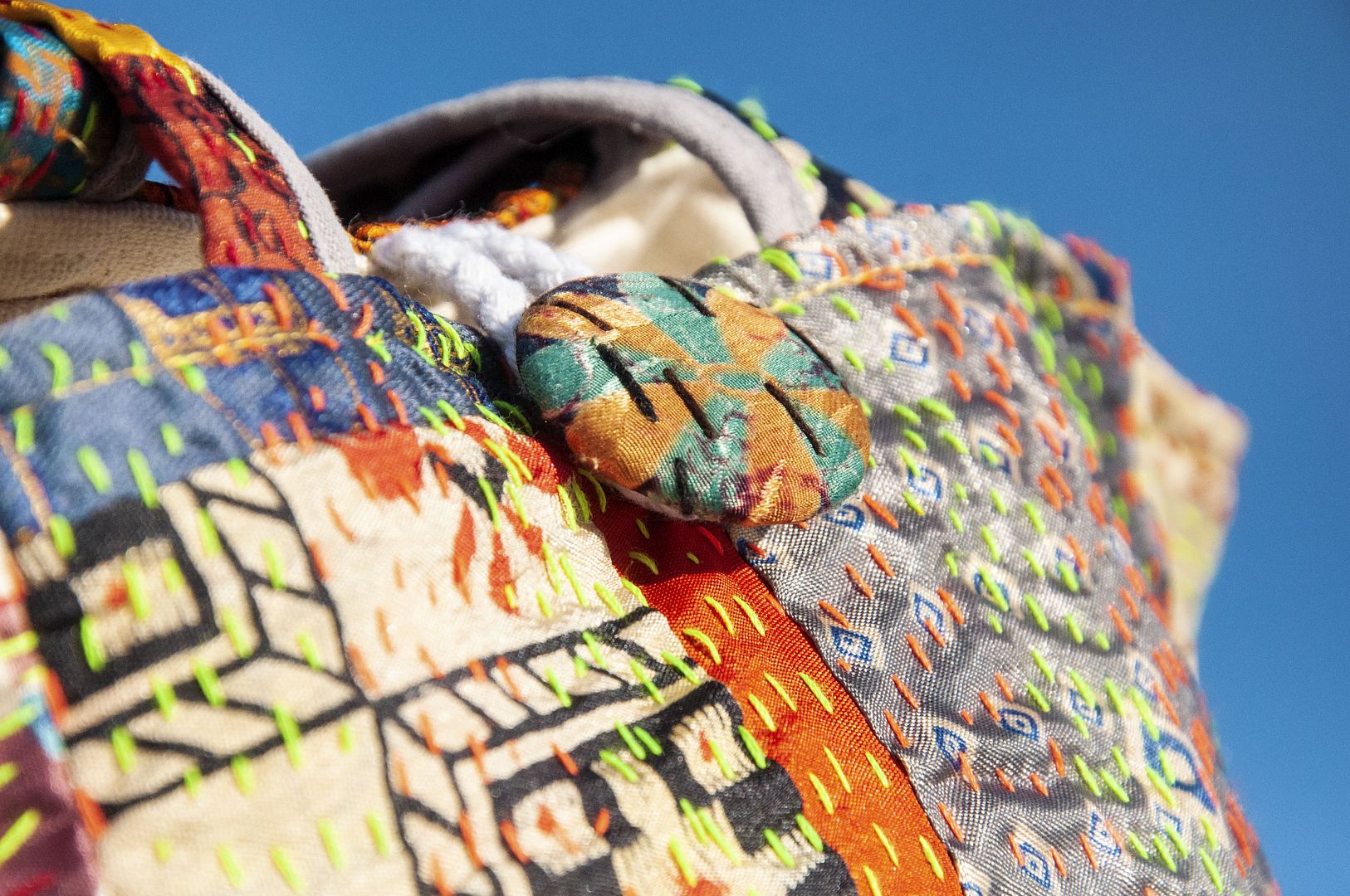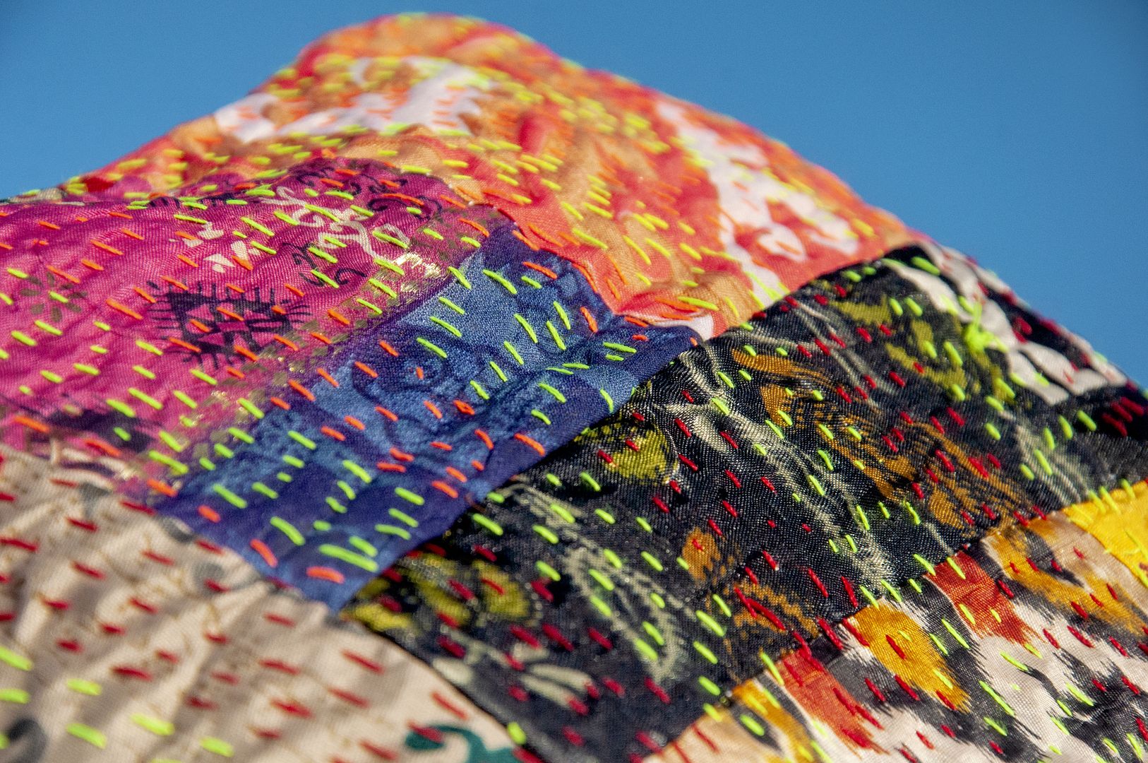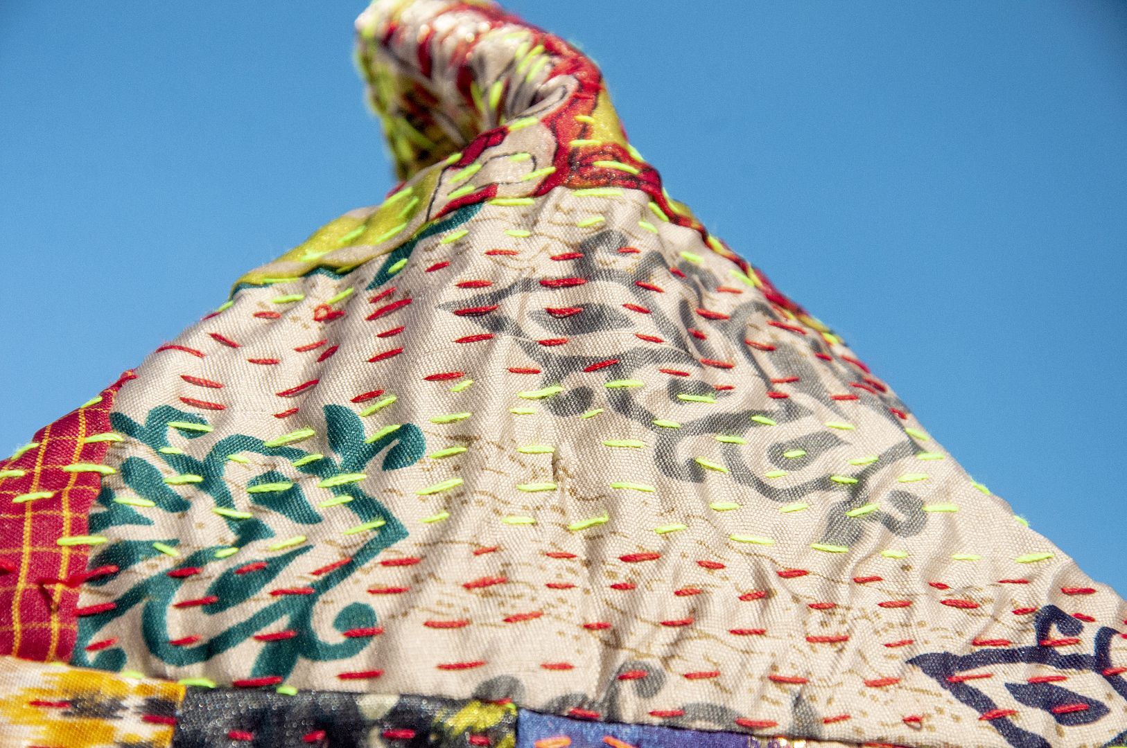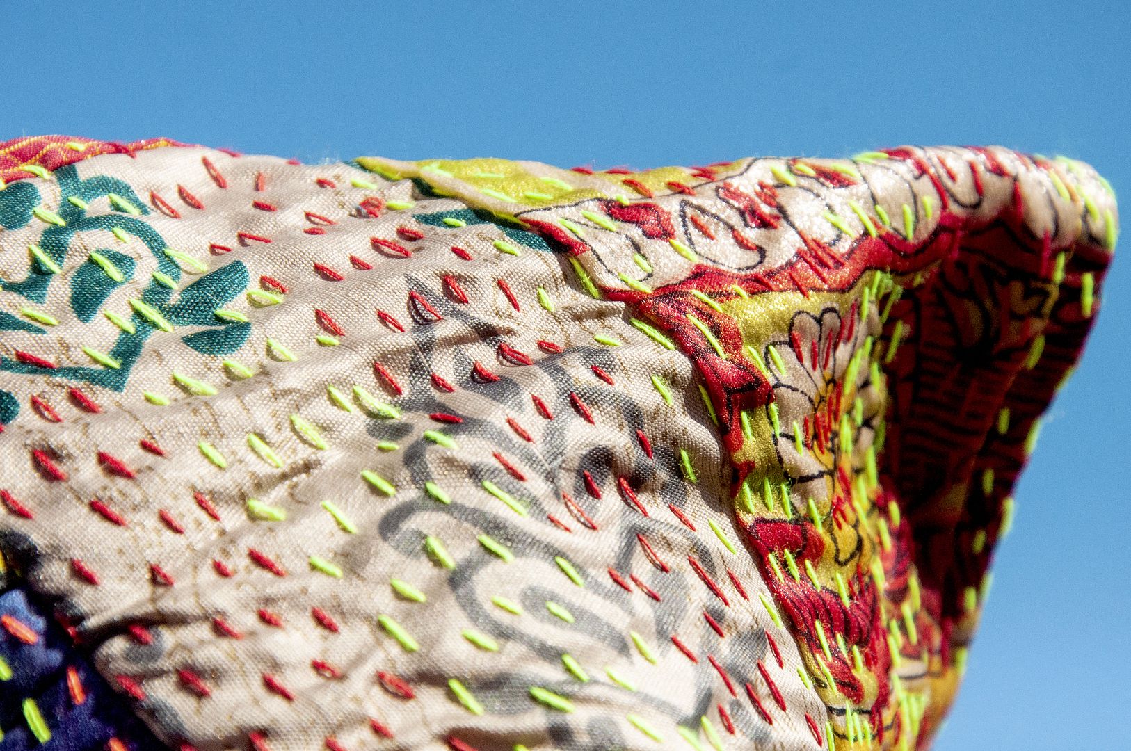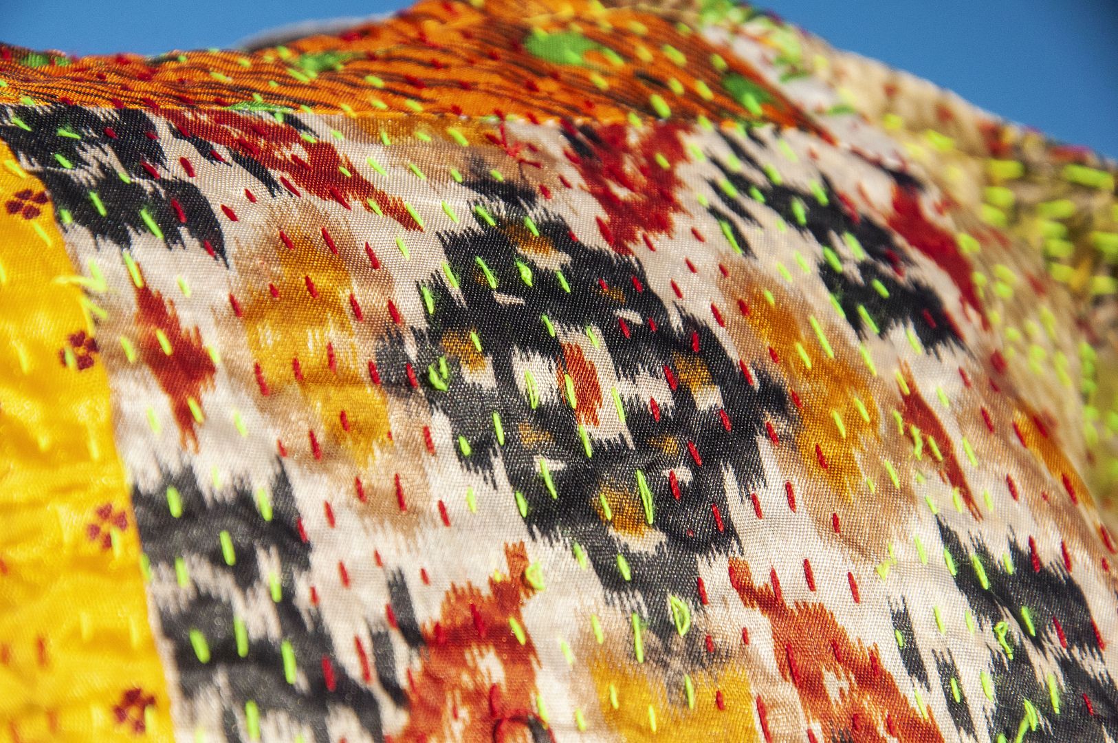 ▲來自印度沙漠地區的gudri刺繡工法,嚴選印度絲質紗麗布+棉線刺繡
