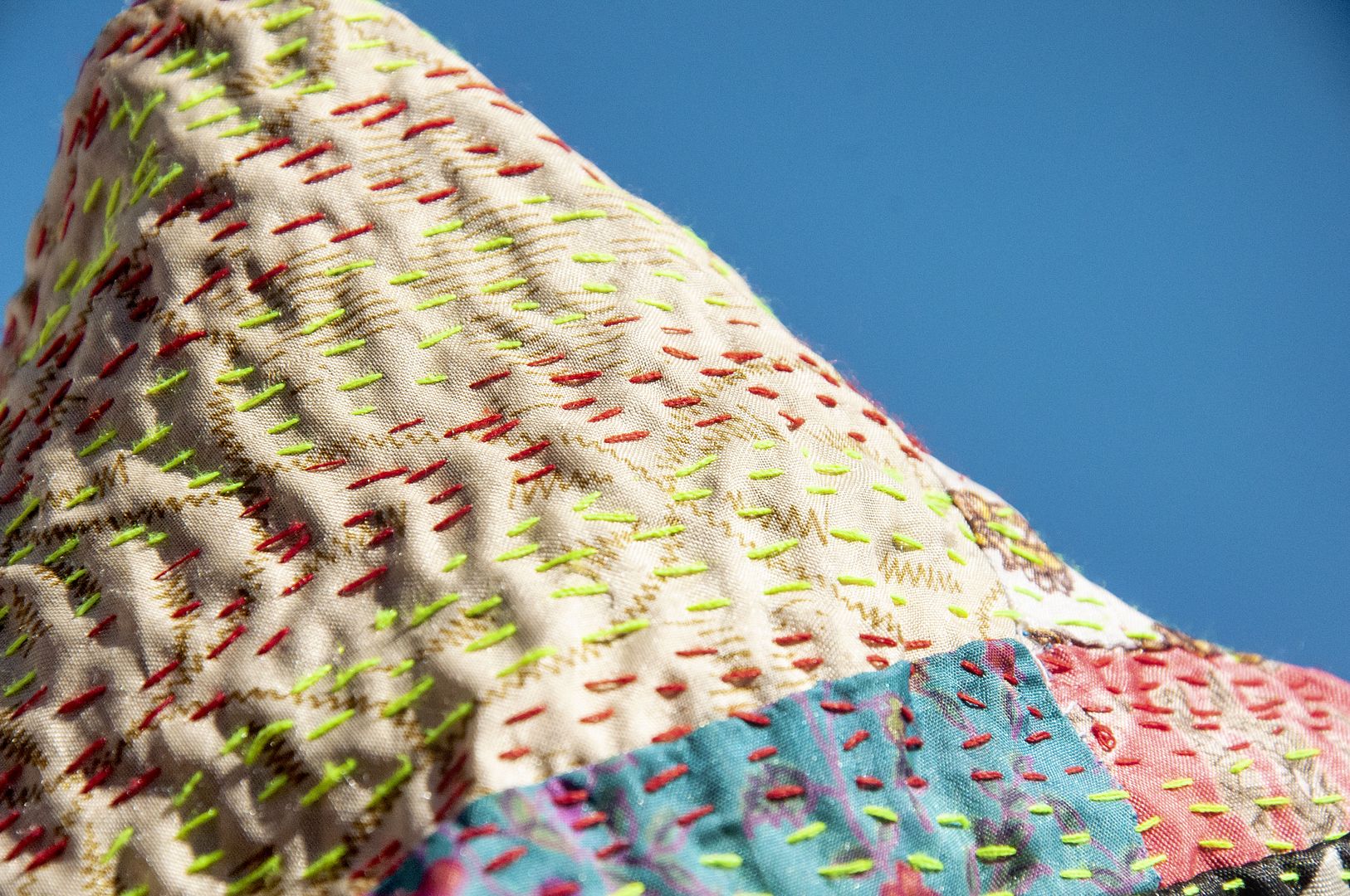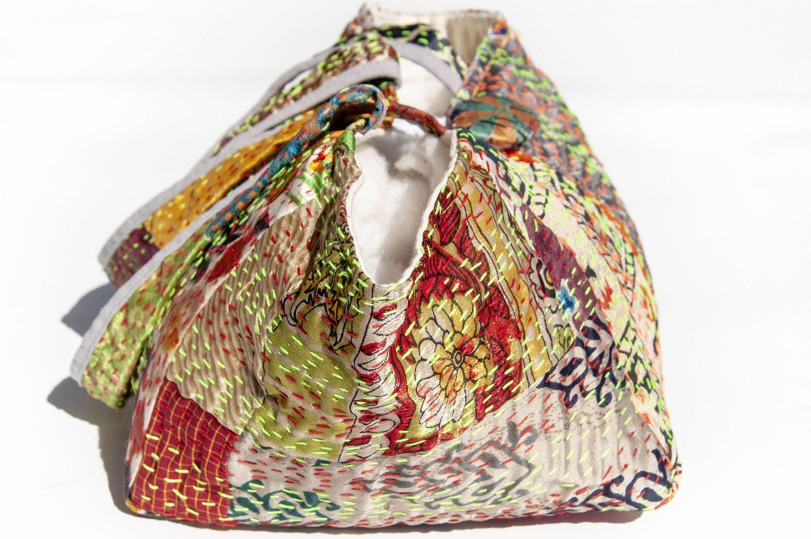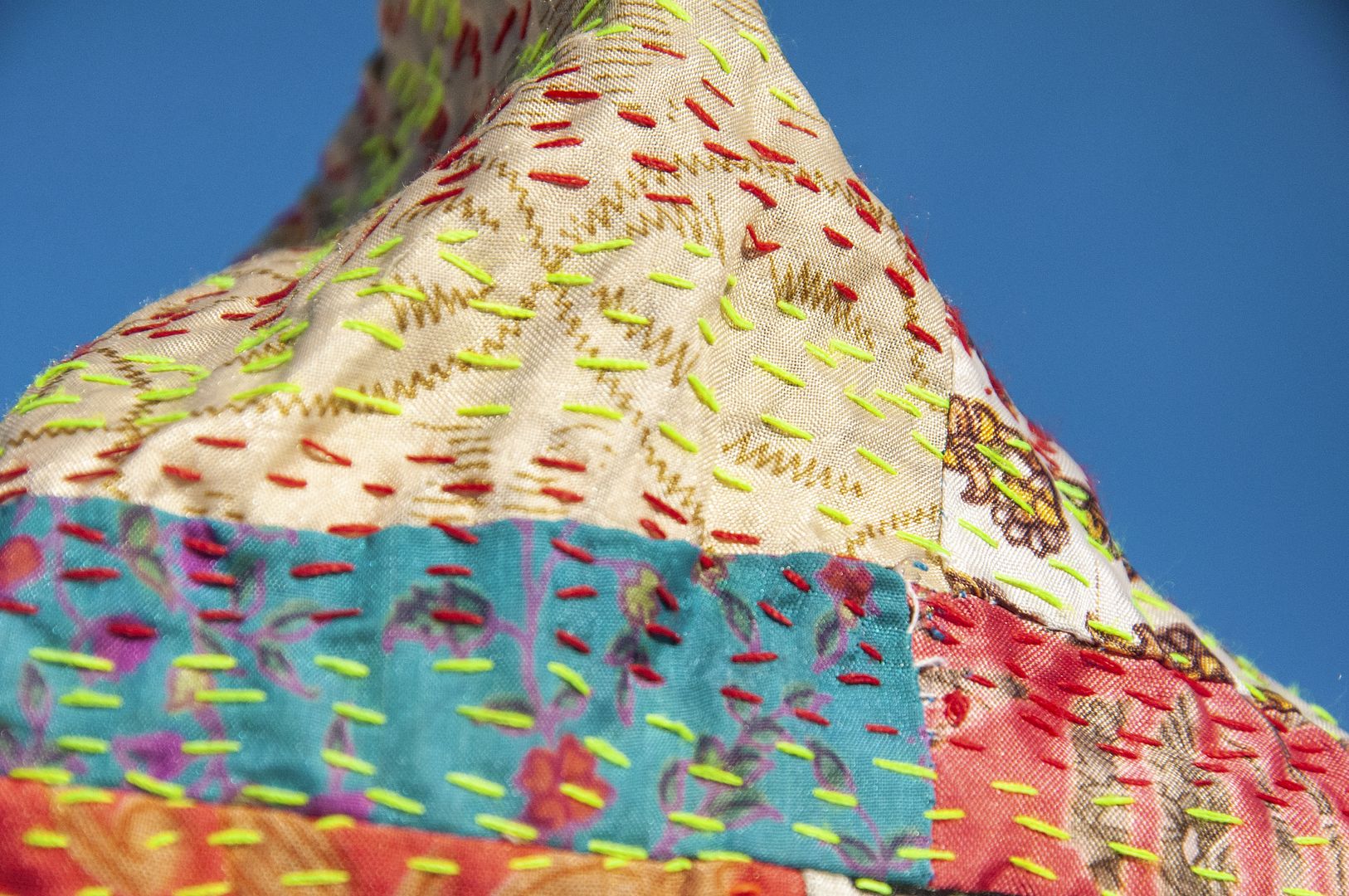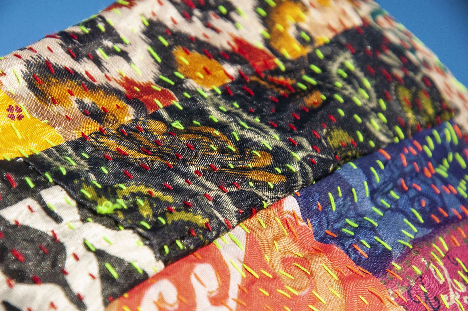 ▲來自印度沙漠地區的gudri刺繡工法,嚴選印度絲質紗麗布+棉線刺繡