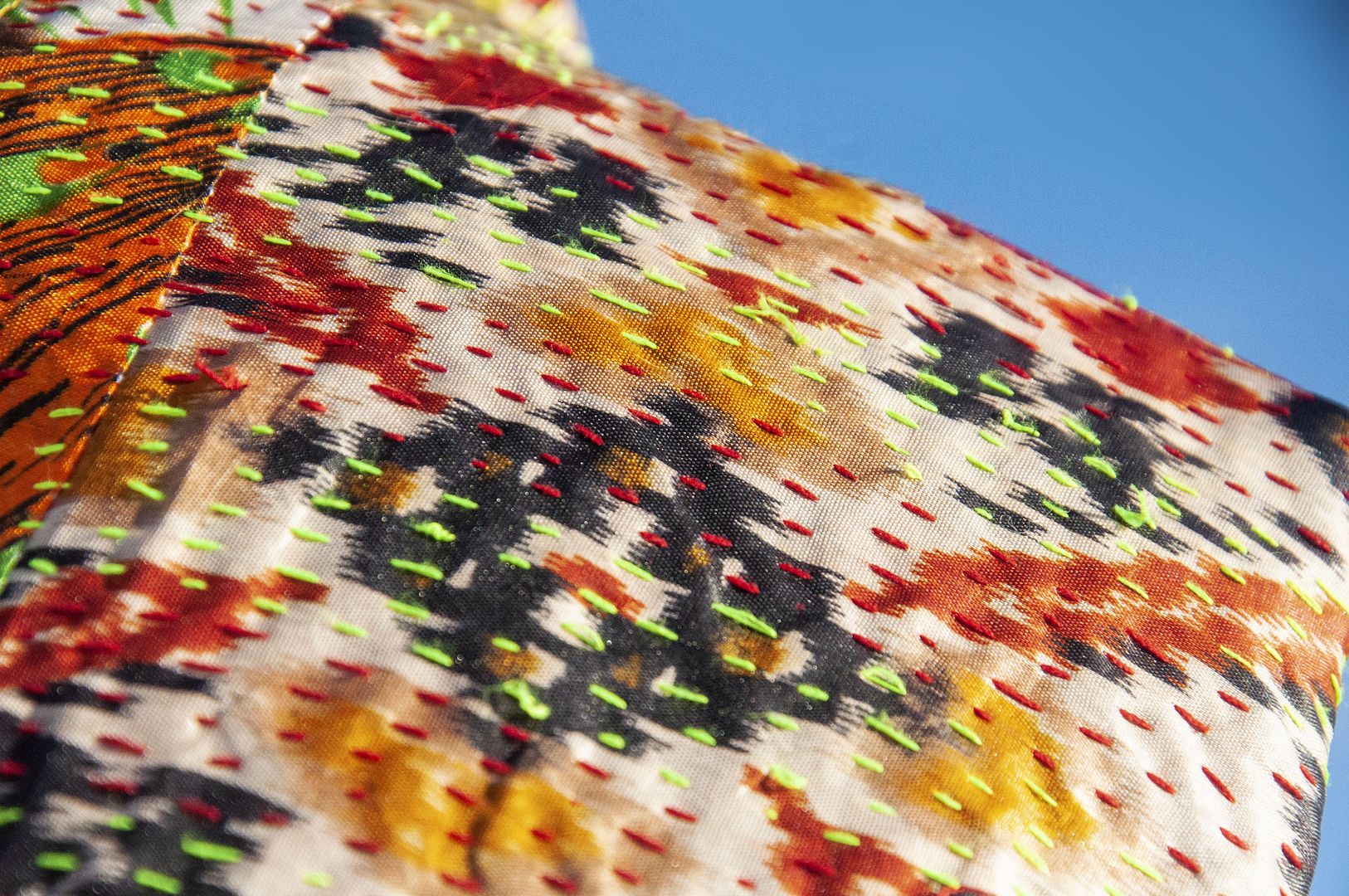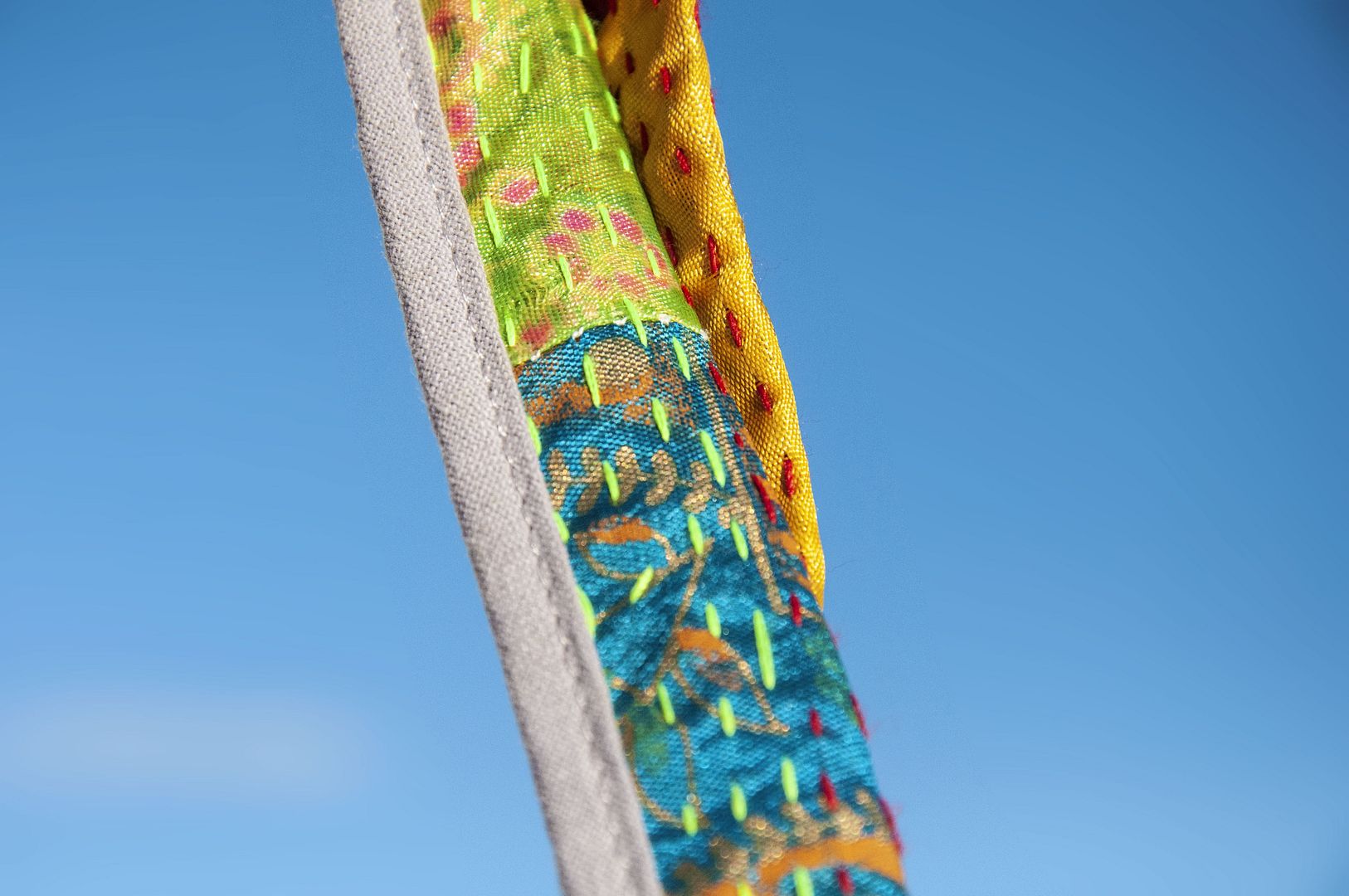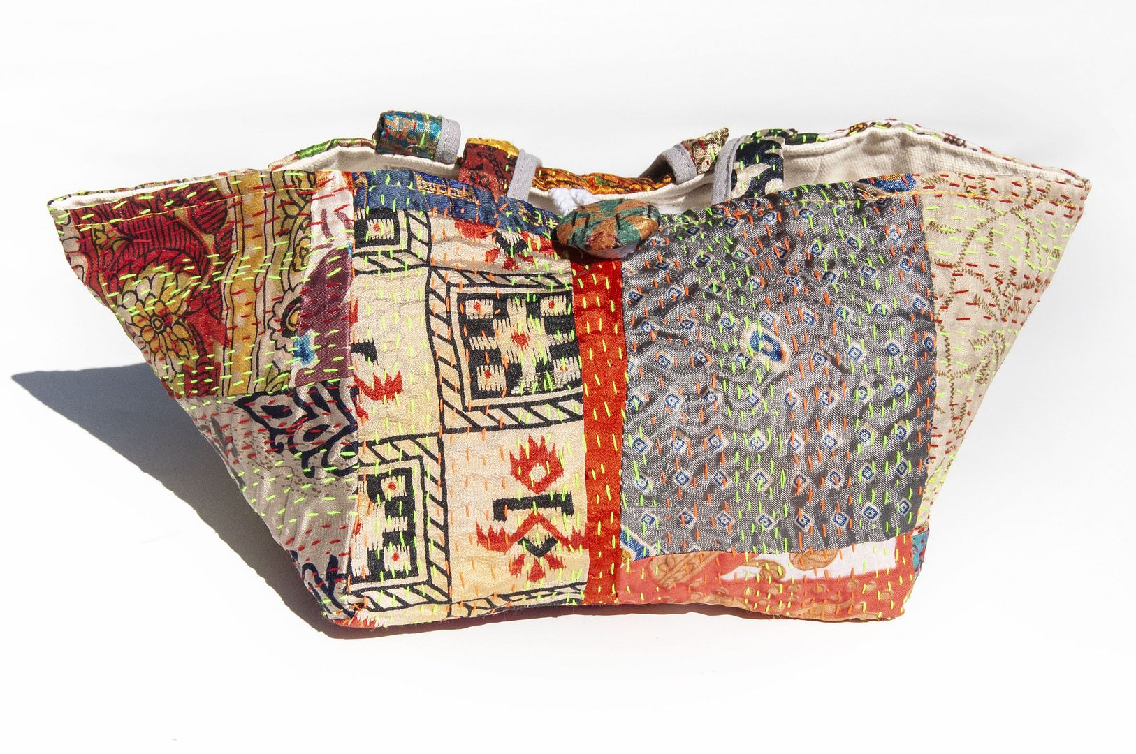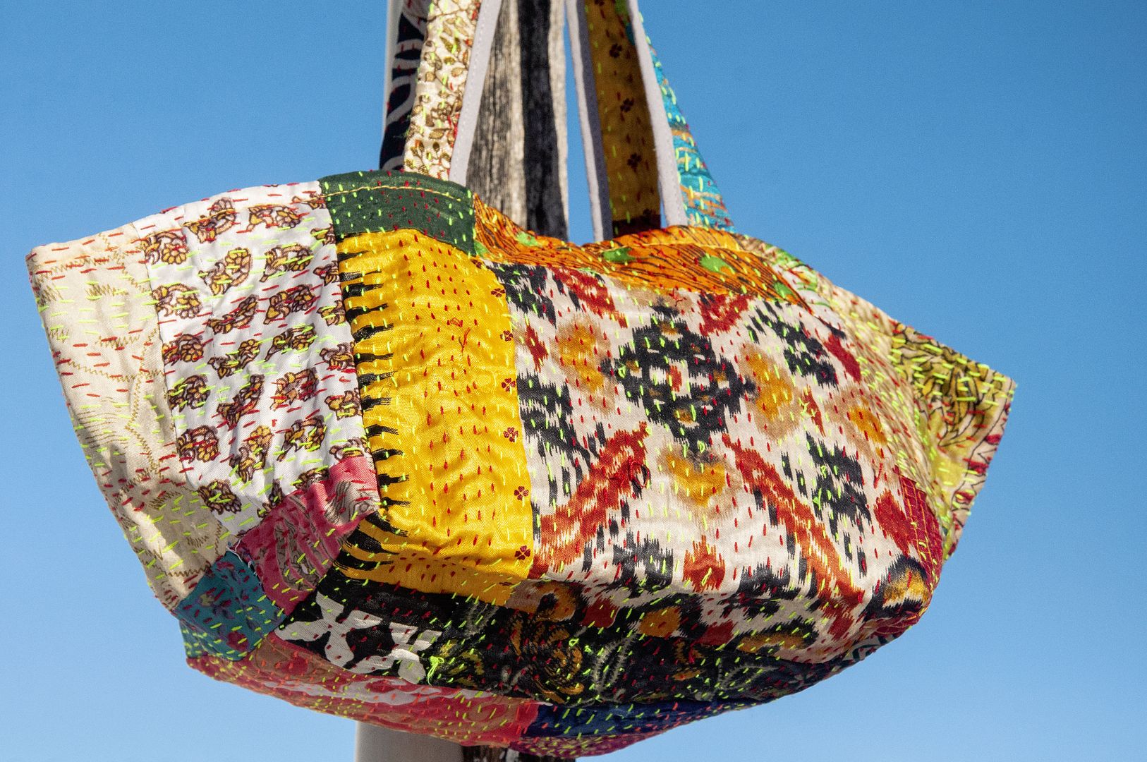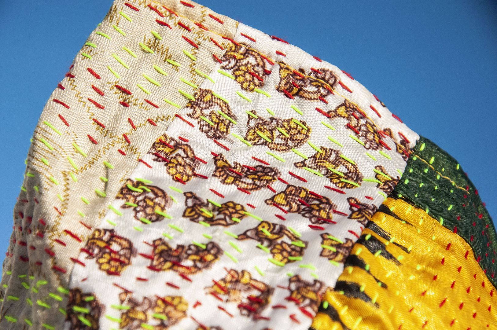 ▲來自印度沙漠地區的gudri刺繡工法,嚴選印度絲質紗麗布+棉線刺繡