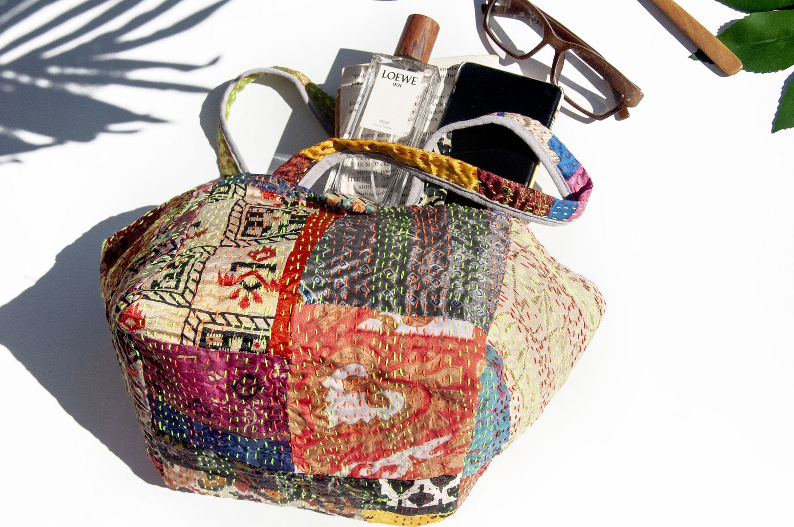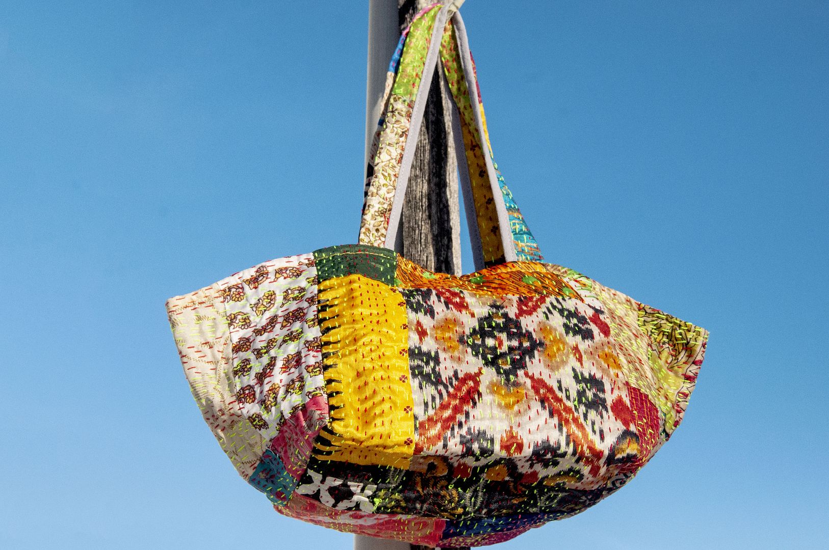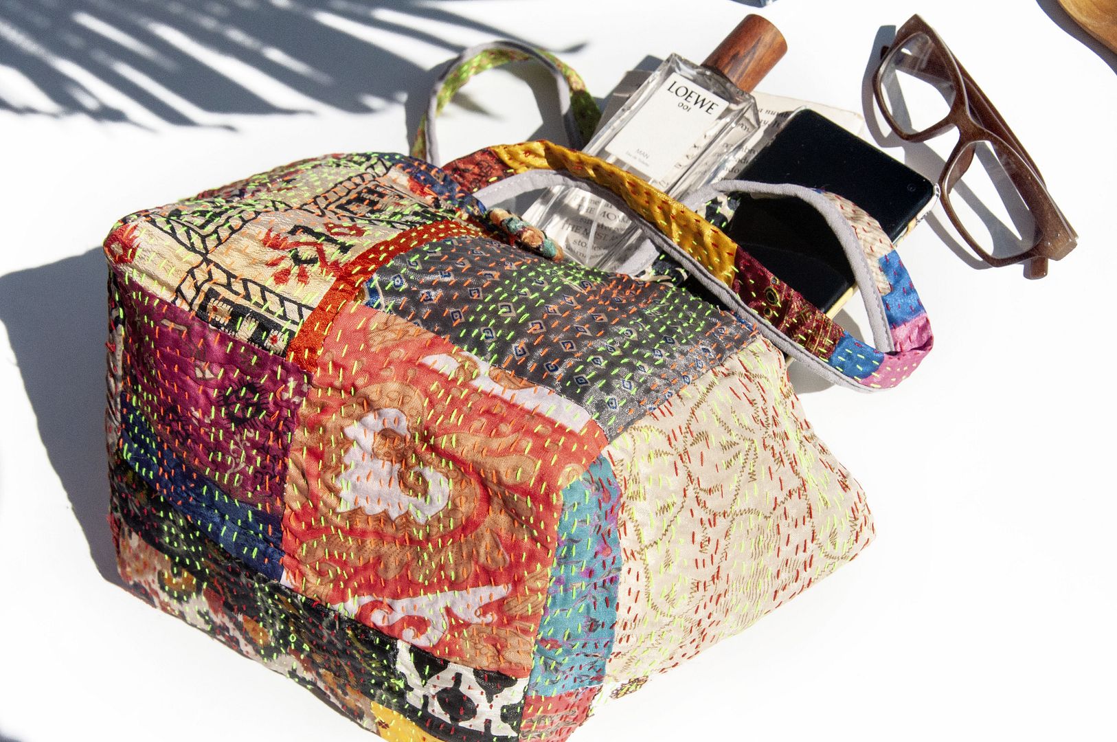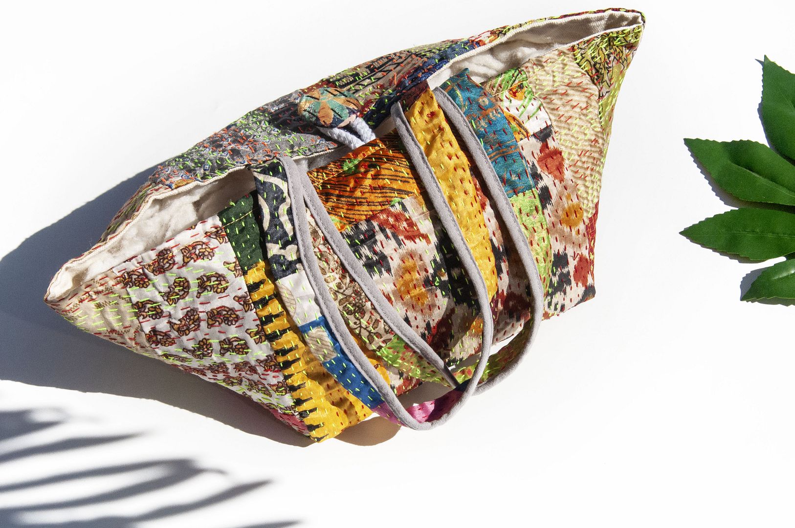▲來自印度沙漠地區的gudri刺繡工法,嚴選印度絲質紗麗布+棉線刺繡