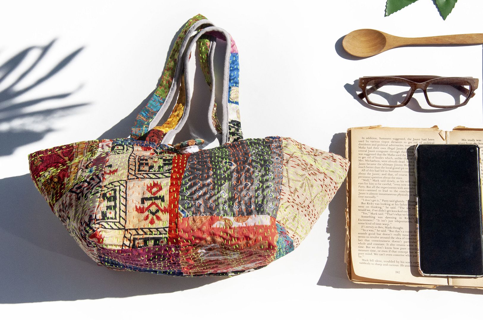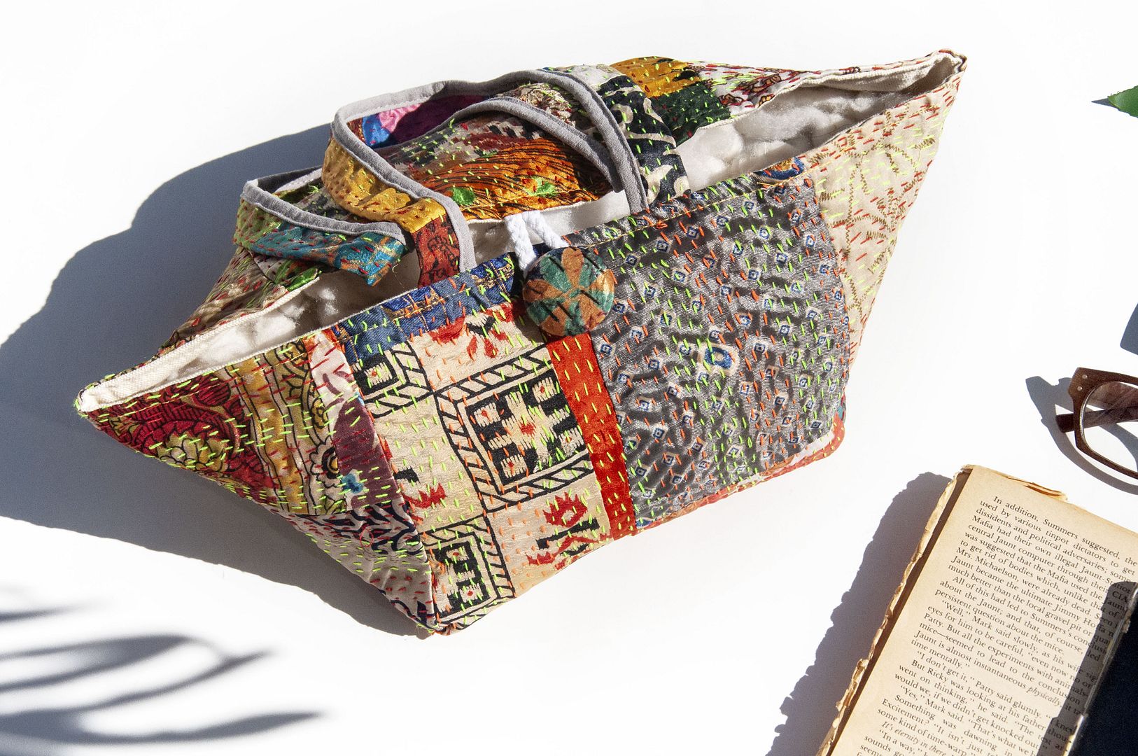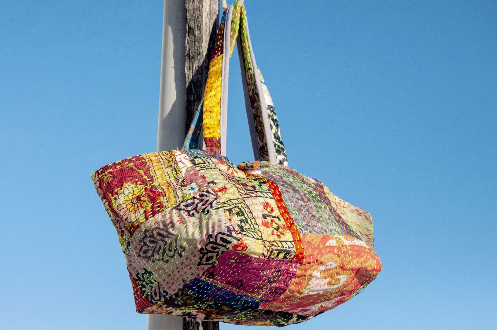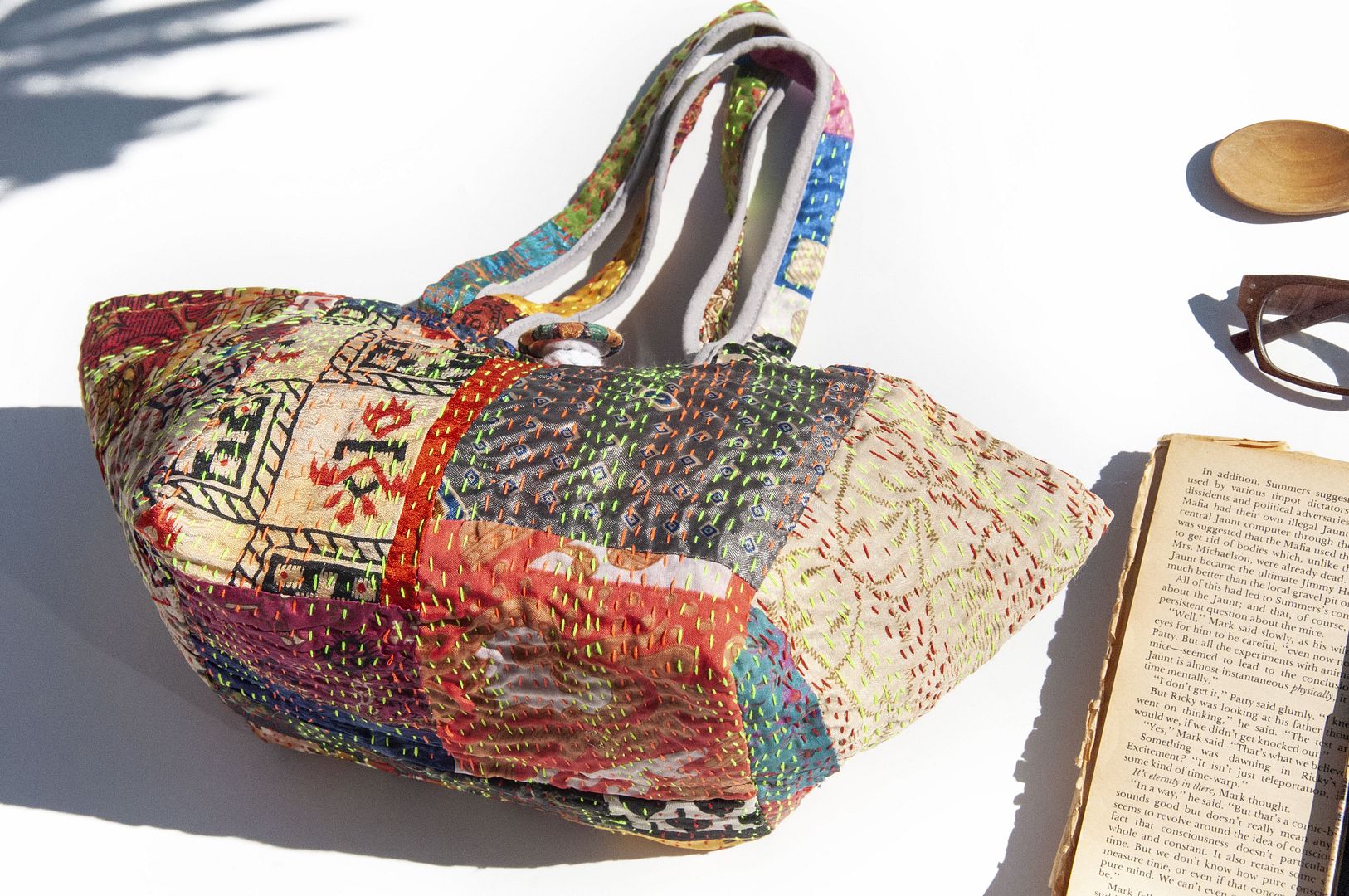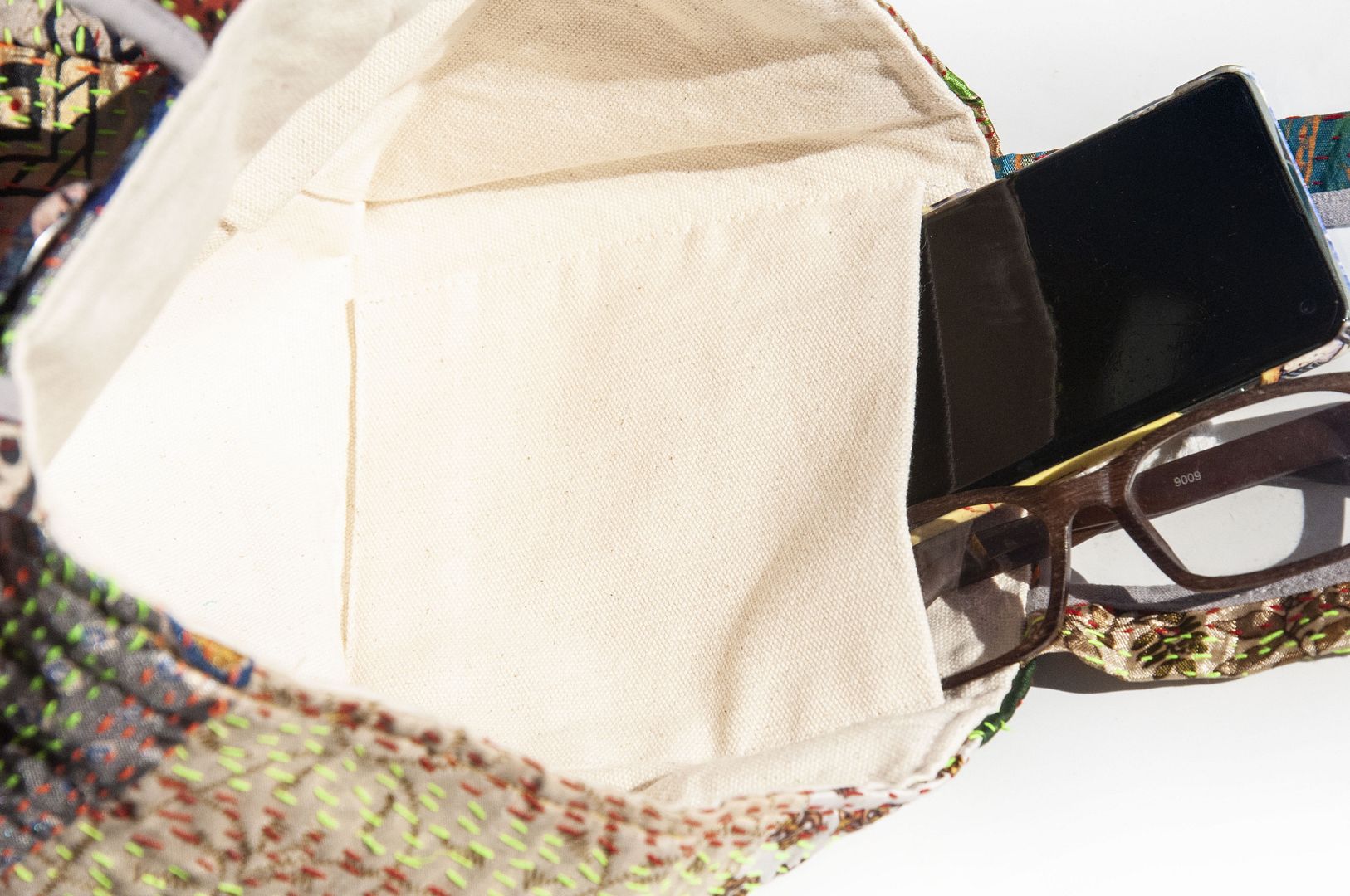 ▲來自印度沙漠地區的gudri刺繡工法,嚴選印度絲質紗麗布+棉線刺繡