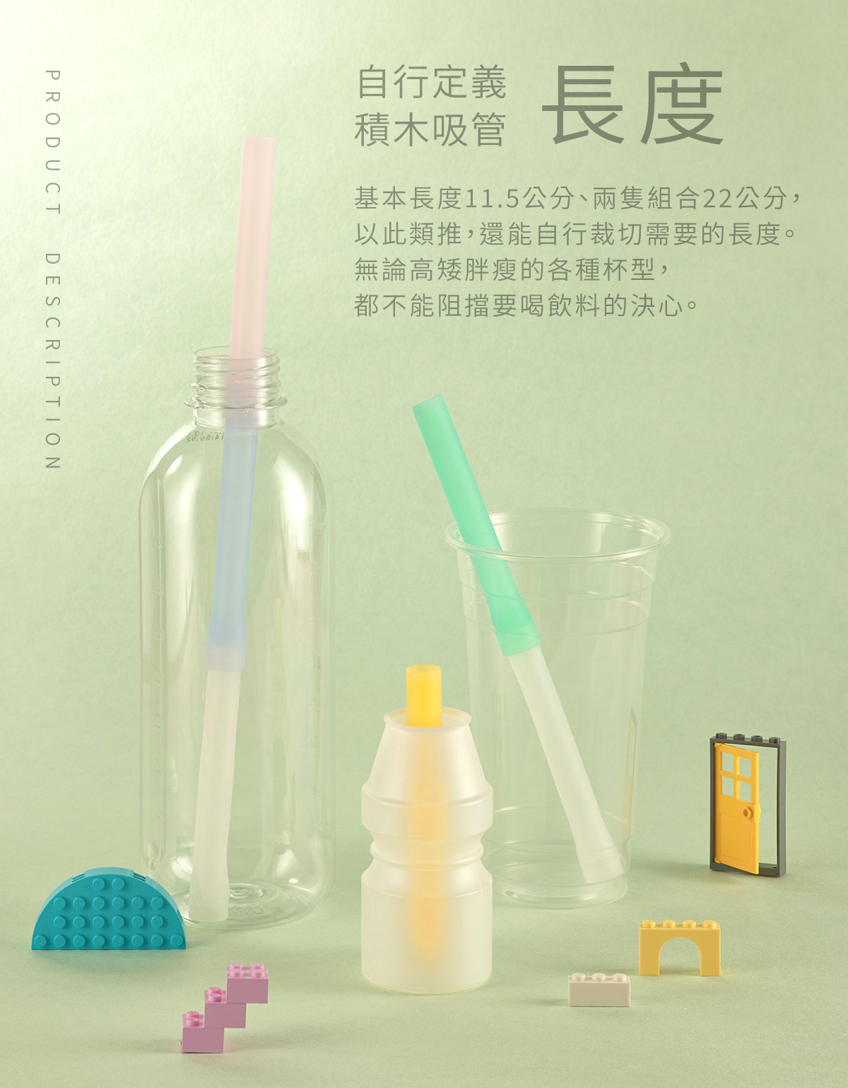 YCCT積木矽膠吸管 - 檸檬黃 - 百搭飲料杯各種高度